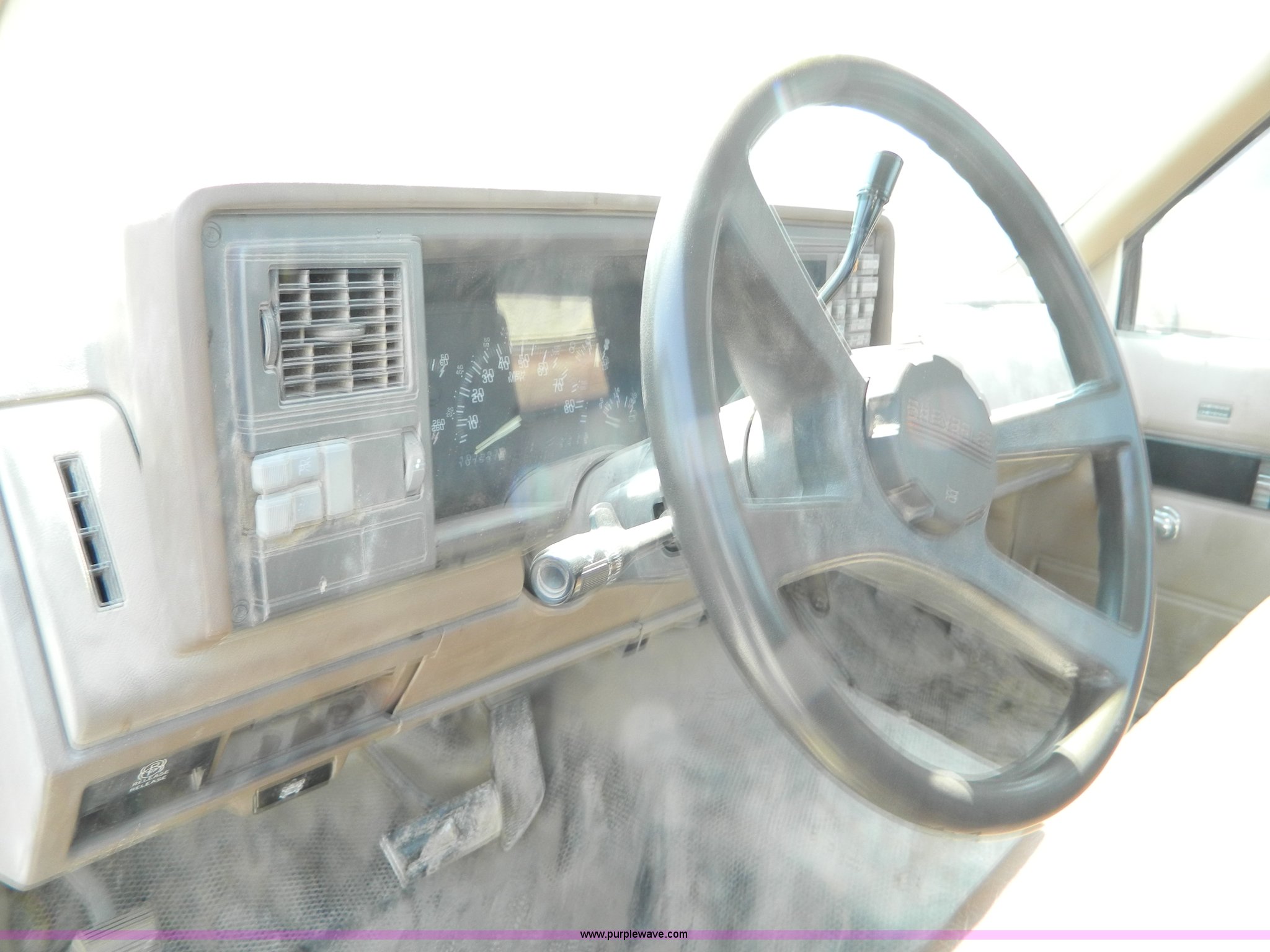 Purple Wave is selling a used Passenger Vehicle in Kansas. This item is a 1992 Chevrolet 2500 utility truck with the following: 107,537 miles on odometer, 5.7L V8 OHV 16V gas engine, Automatic transmission, AC and heat, Manual windows and locks, Stahl utility bed, LT235/85R16 tires, Interior/exterior cosmetic damage, Dents, Rust, Headliner loose, Cracked dashboard