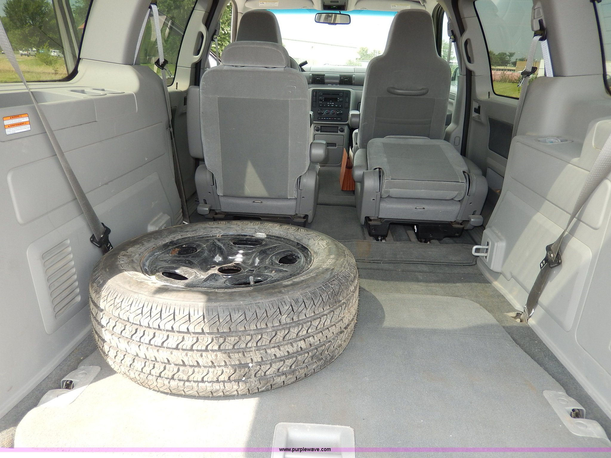 Purple Wave is selling a used Passenger Vehicle in Kansas. This item is a 2007 Ford Freestar SE van with the following: 95,849 actual miles, 3.9L V6 OHV 12V gas engine, Automatic transmission, AC and heat, Tilt, Cruise, AM/FM/CD, Power windows, locks, mirrors, and seats, Cloth interior, Navigation system, Dual temperature controls, Rear window defrost, 235/60R16 tires, Missing third row seats, Paint chipping, Power steering fluid leak, Full size spare tire, Unit# 11997