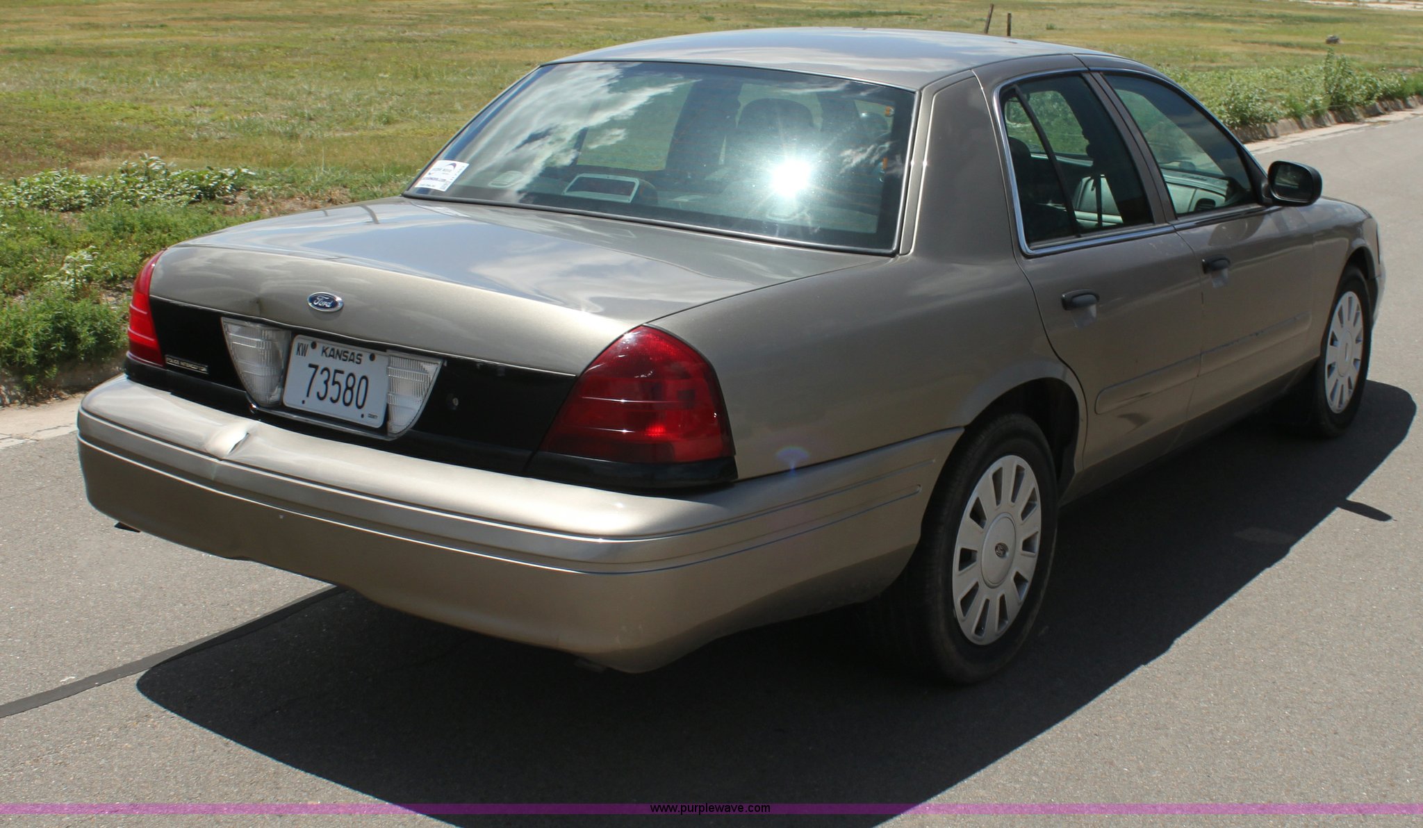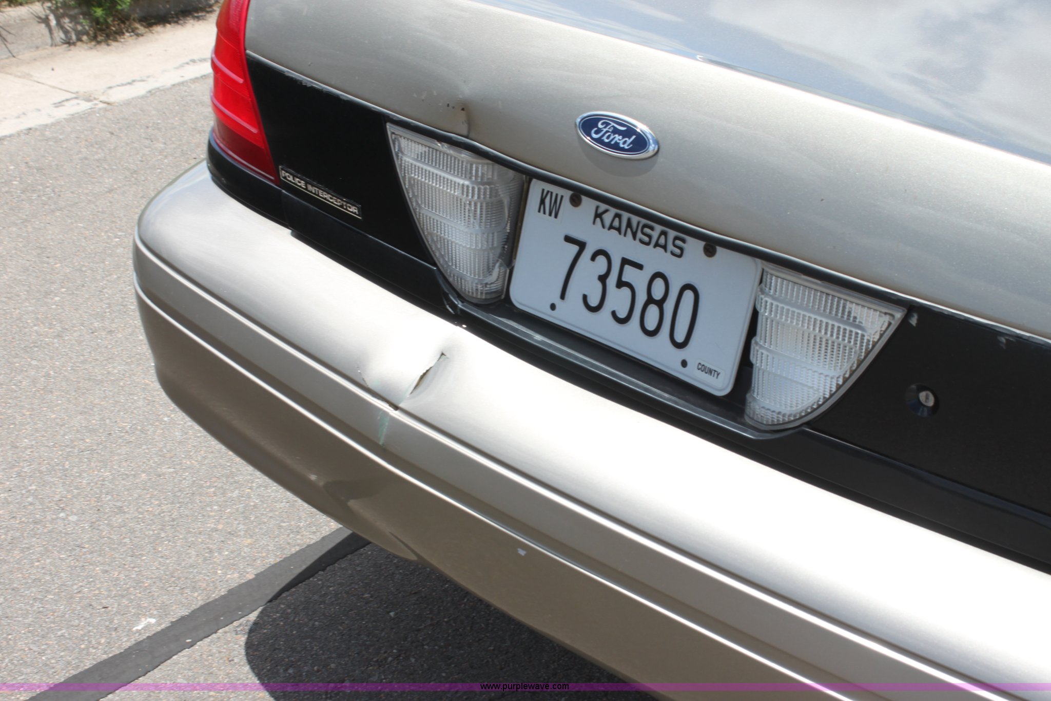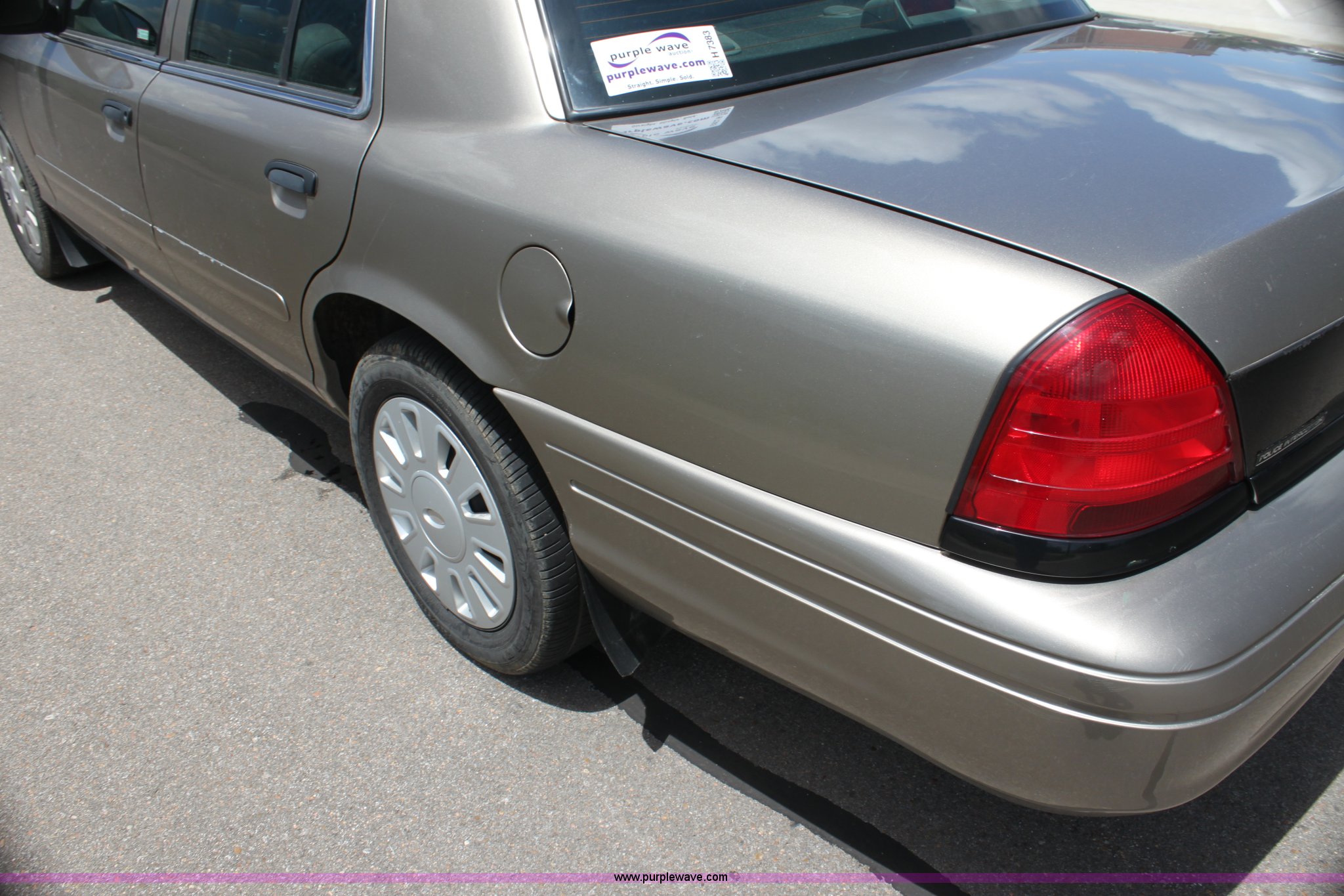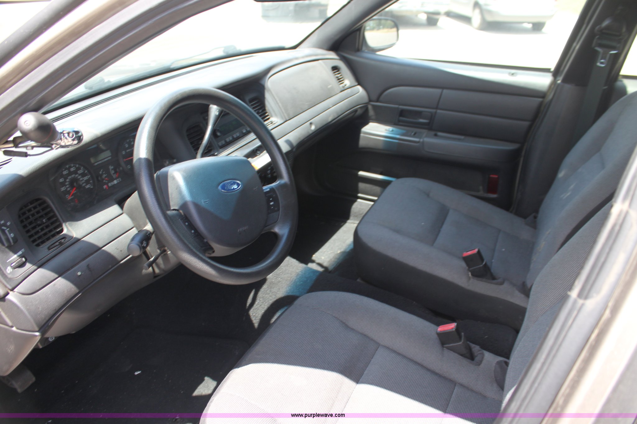 Purple Wave is selling a used Passenger Vehicle in Kansas. This item is a 2007 Ford Crown Victoria Police Interceptor with the following: 118,616 miles on odometer, 4.6L V8 SOHC 16V gas engine, Automatic transmission, AC and heat, Tilt, Cruise, AM/FM/CD, Power windows, locks, mirrors, and seats, 235/55R17 tires, Windshield cracked, Interior/exterior cosmetic damage