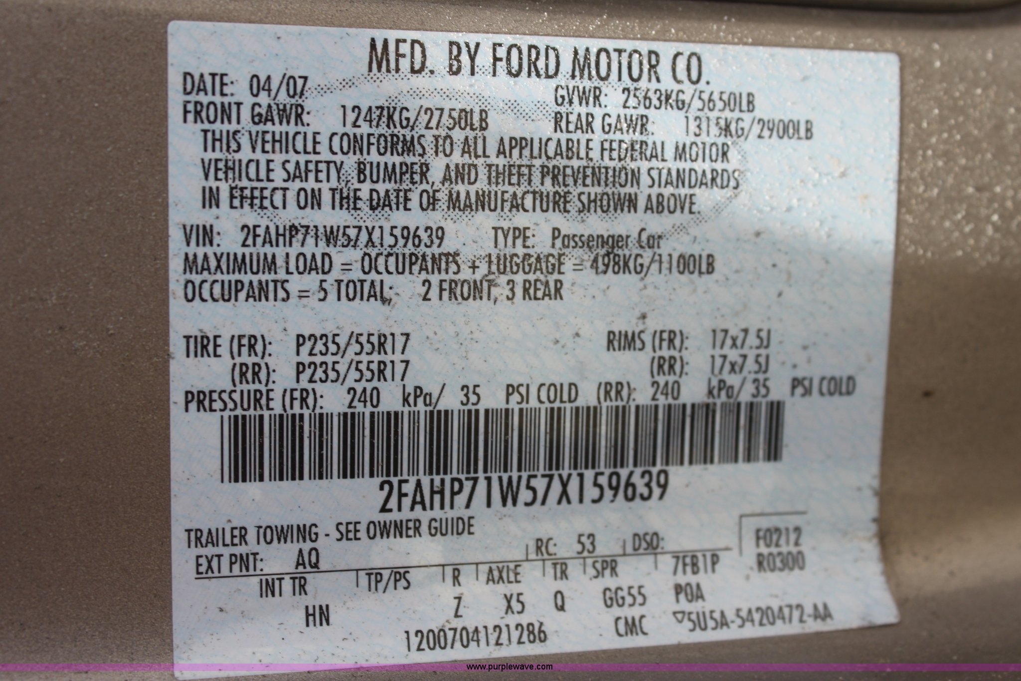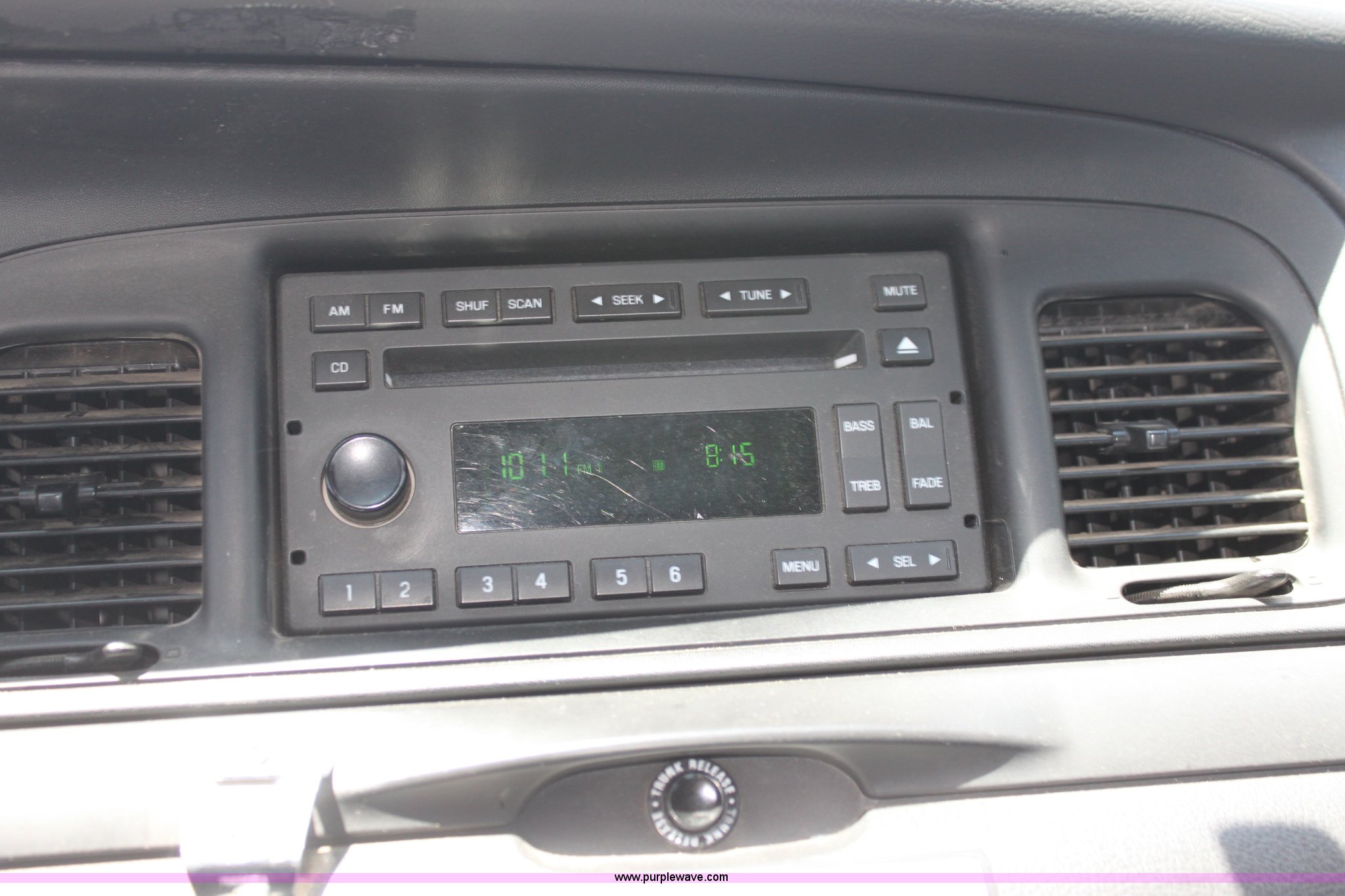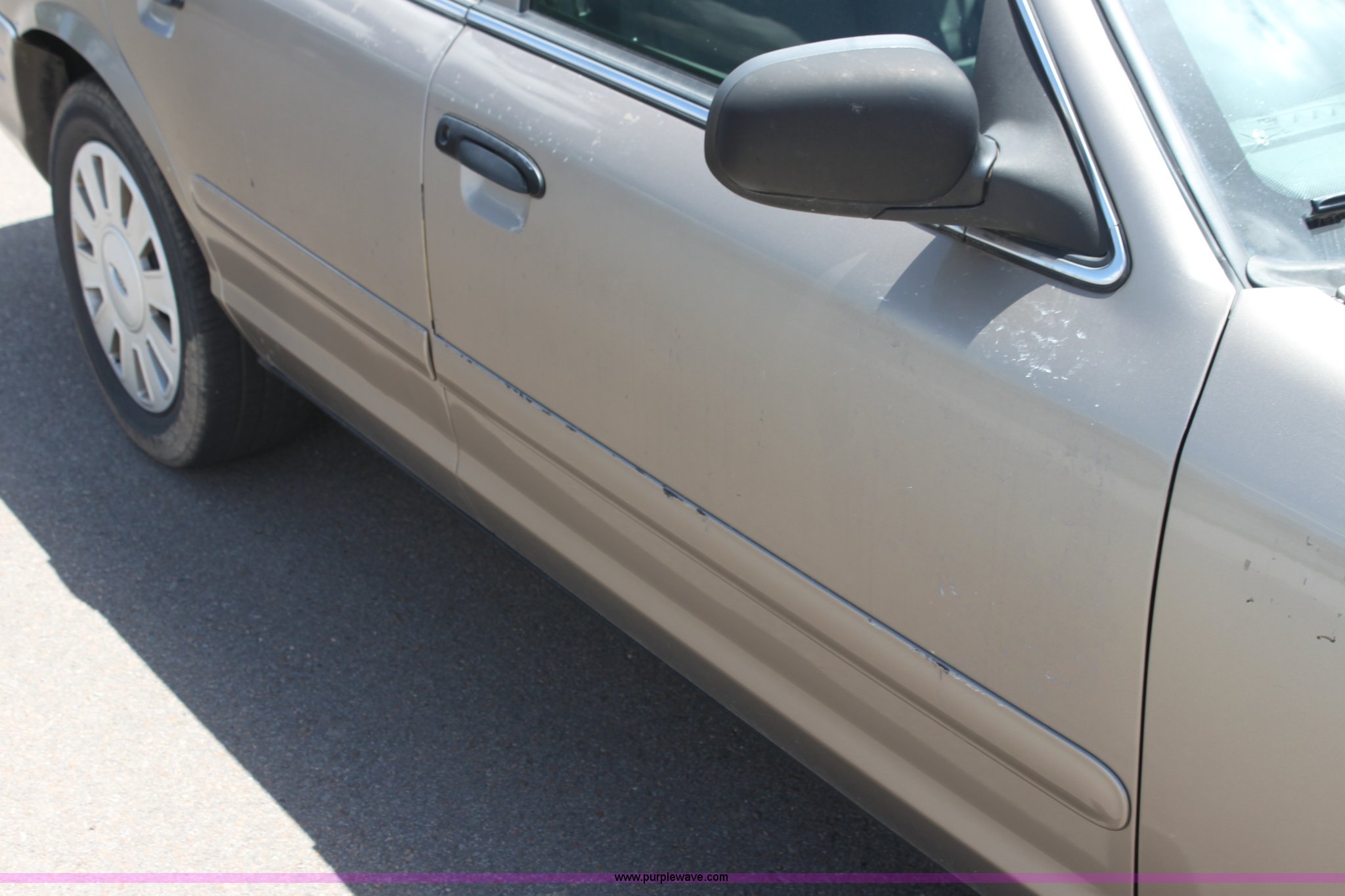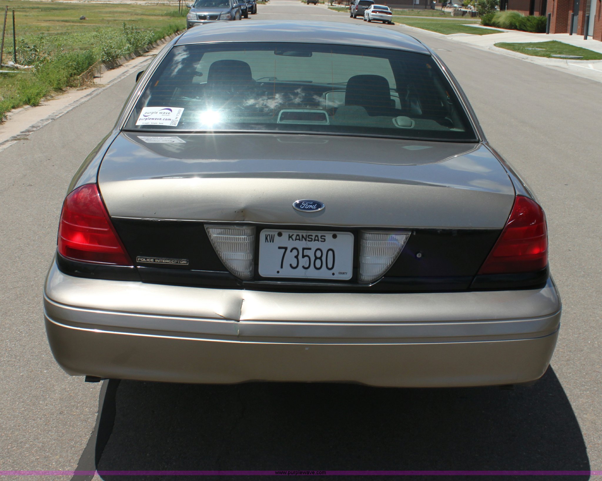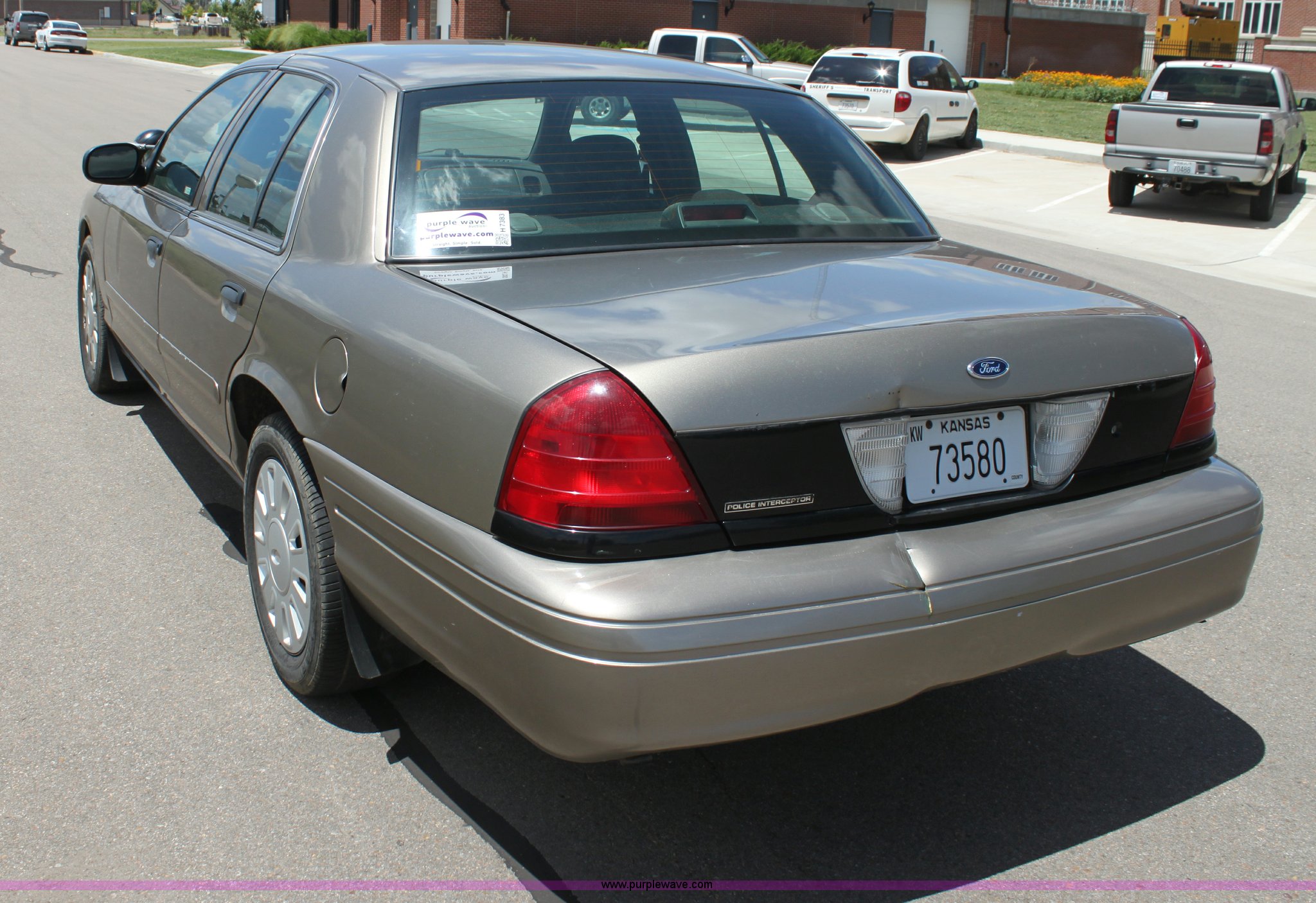 Purple Wave is selling a used Passenger Vehicle in Kansas. This item is a 2007 Ford Crown Victoria Police Interceptor with the following: 118,616 miles on odometer, 4.6L V8 SOHC 16V gas engine, Automatic transmission, AC and heat, Tilt, Cruise, AM/FM/CD, Power windows, locks, mirrors, and seats, 235/55R17 tires, Windshield cracked, Interior/exterior cosmetic damage