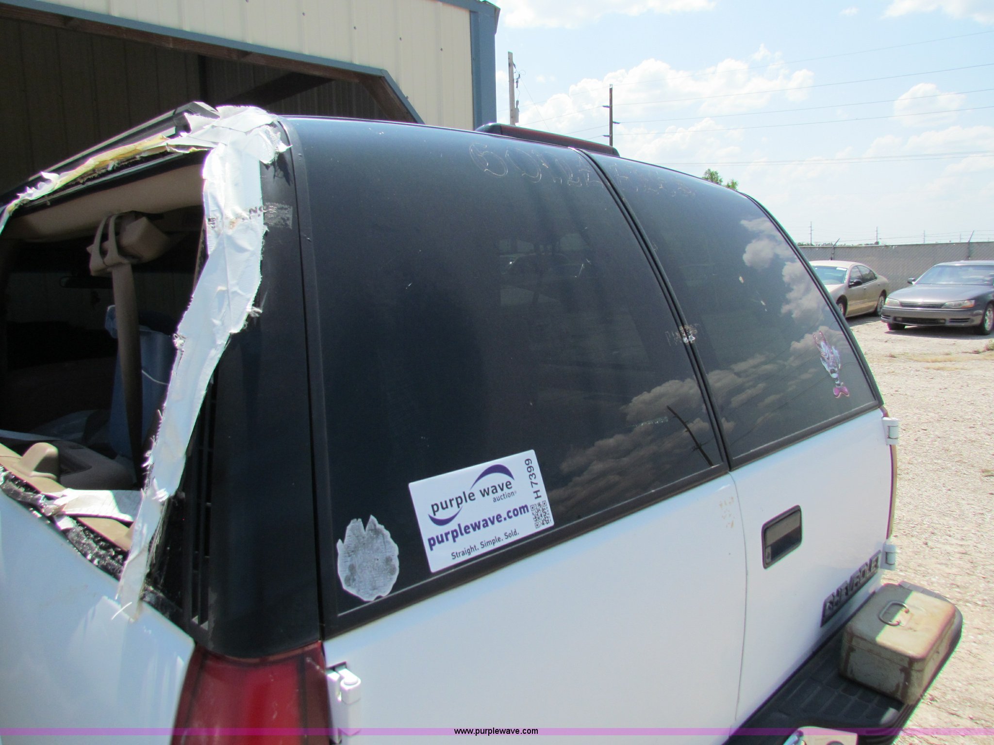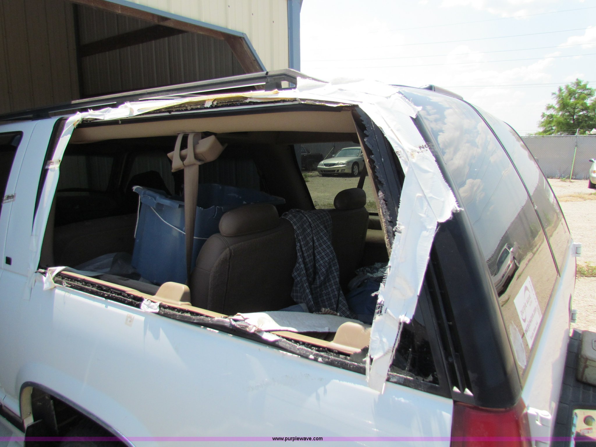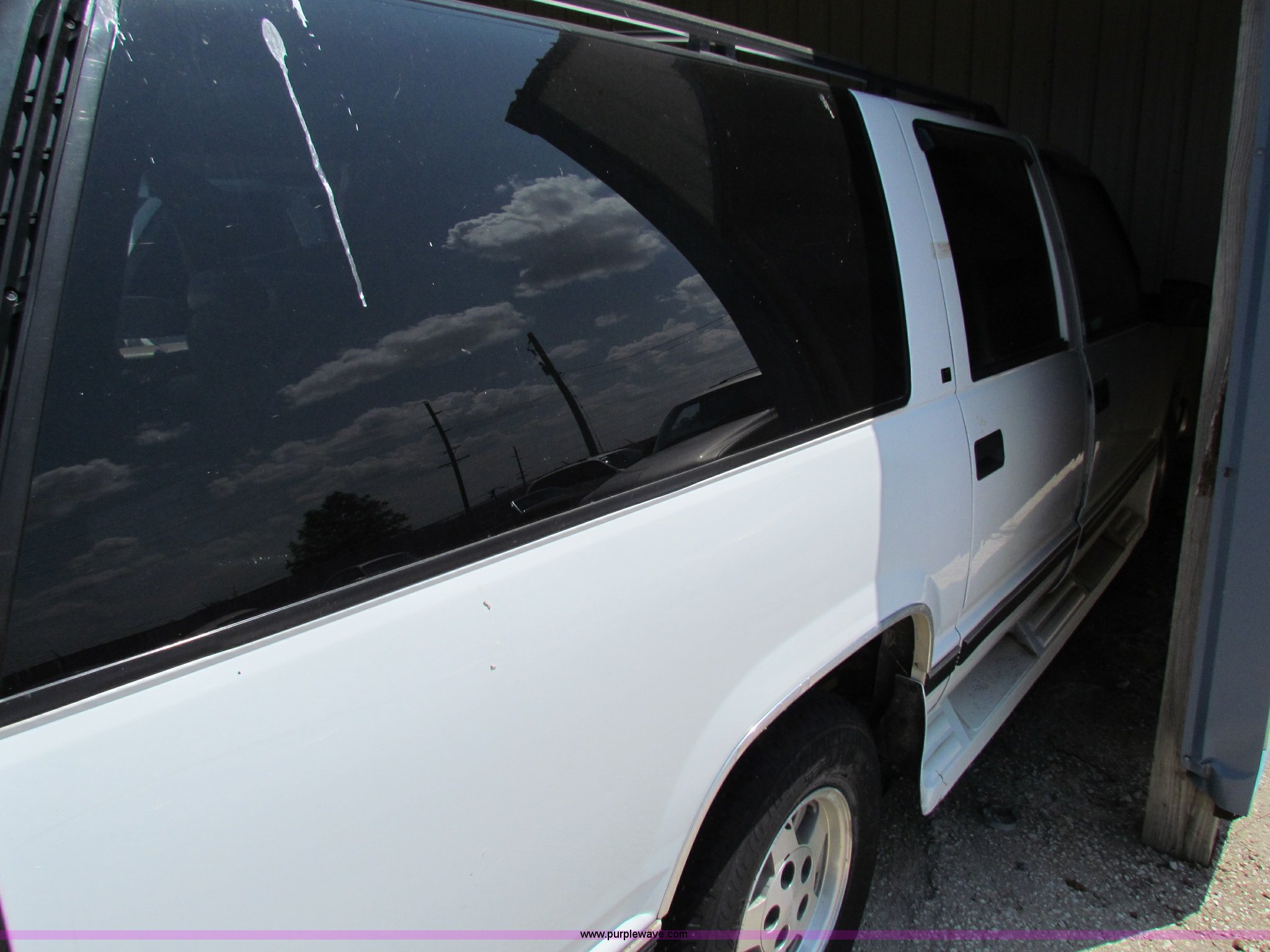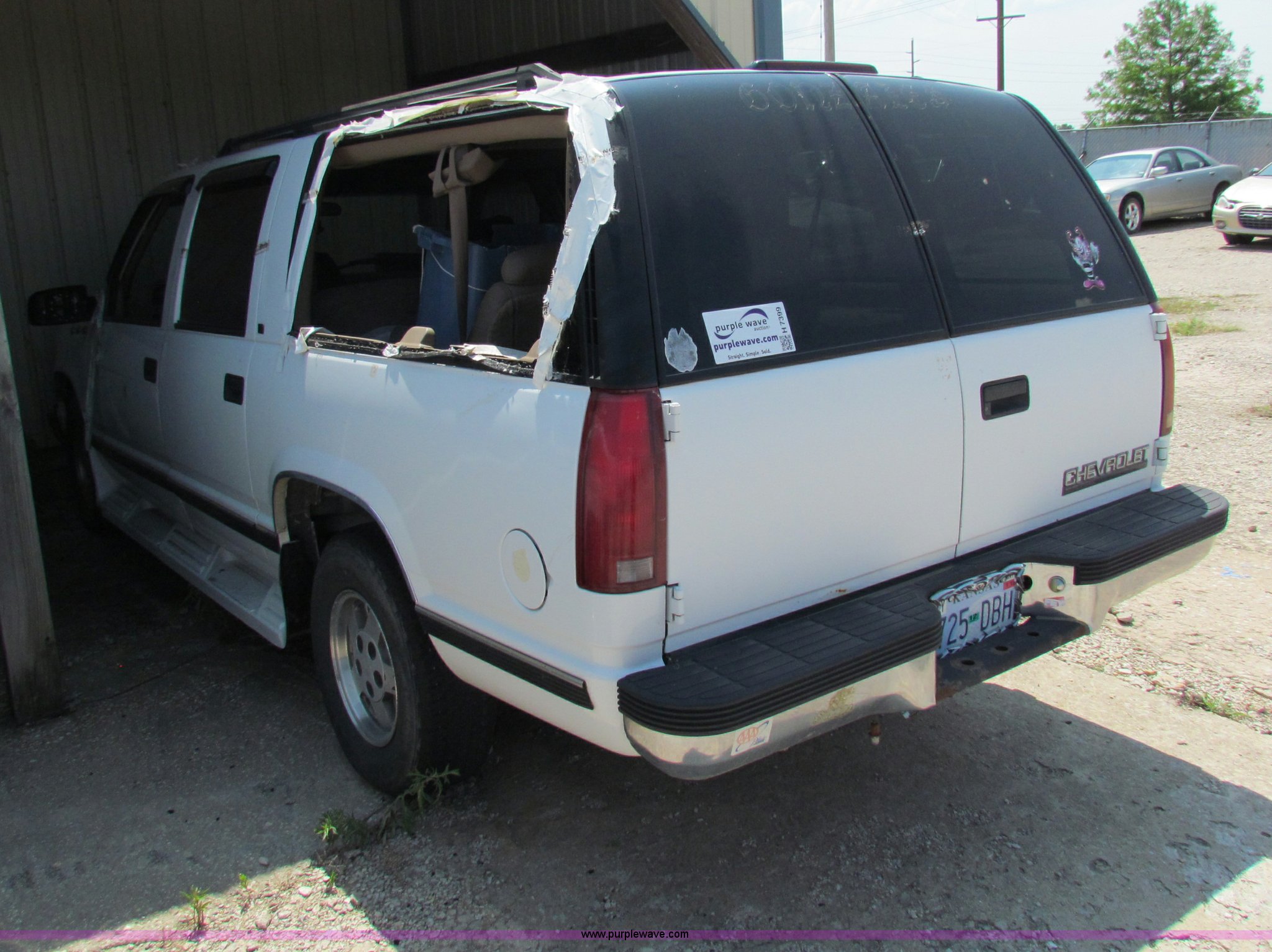 Purple Wave is selling a used Passenger Vehicle in Kansas. This item is a 1995 Chevrolet Suburban C1500 SUV with the following: 142,105 miles on odometer, 5.7L V8 OHV 16V gas engine, Automatic transmission, AC and heat, Tilt, Cruise, AM/FM/CD, Power windows, locks, and mirrors, 235/75R15 tires, Interior/exterior cosmetic damage, No keys, Unknown running condition, Some broken glass