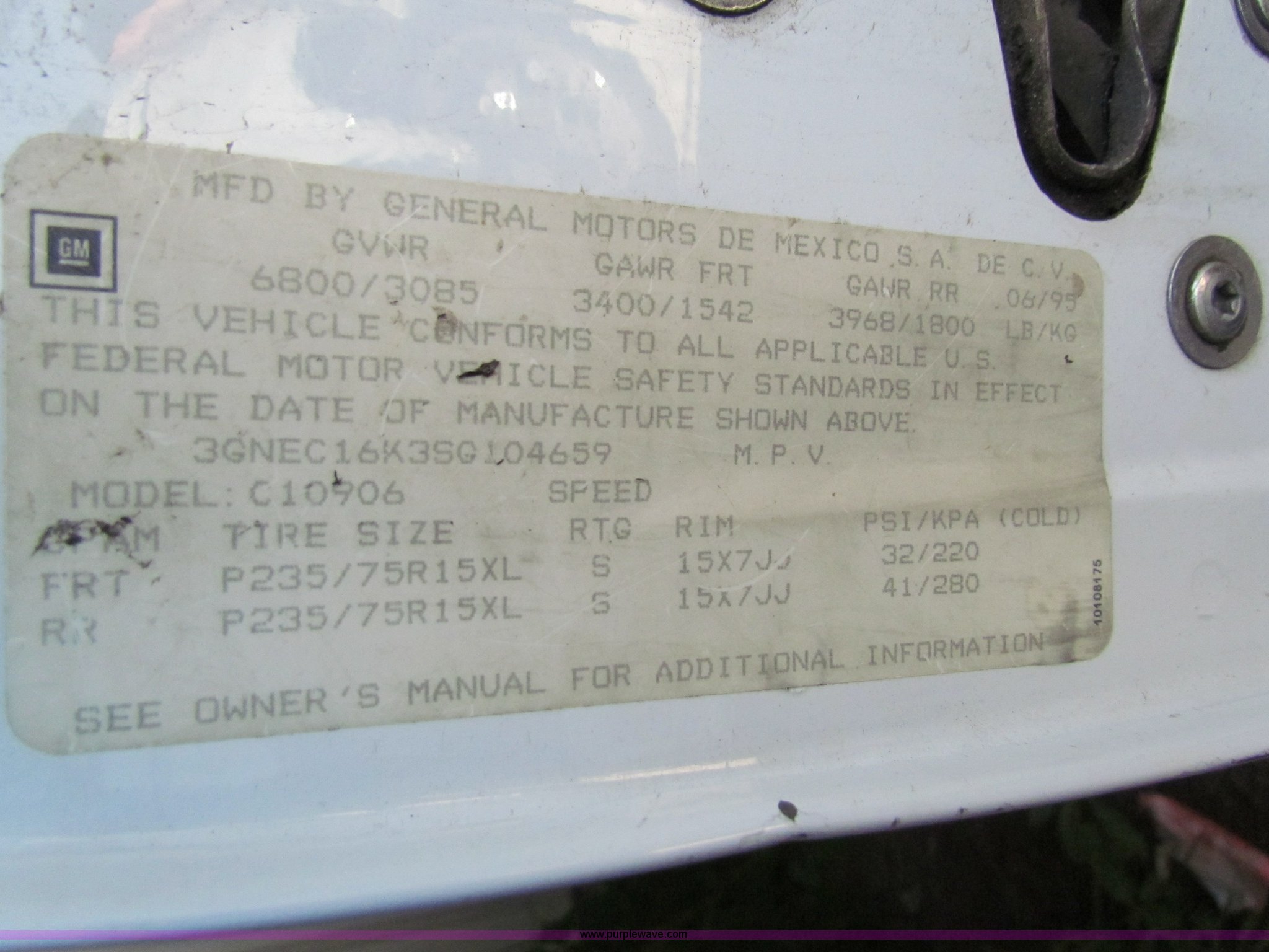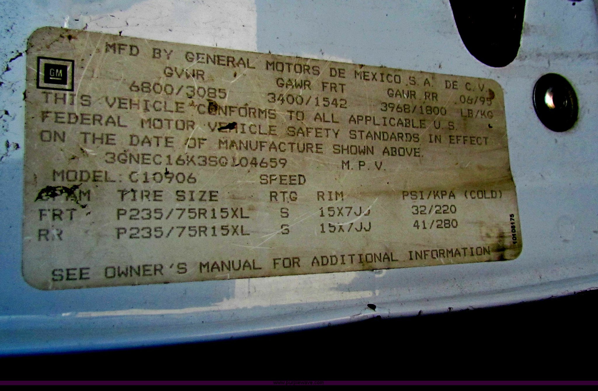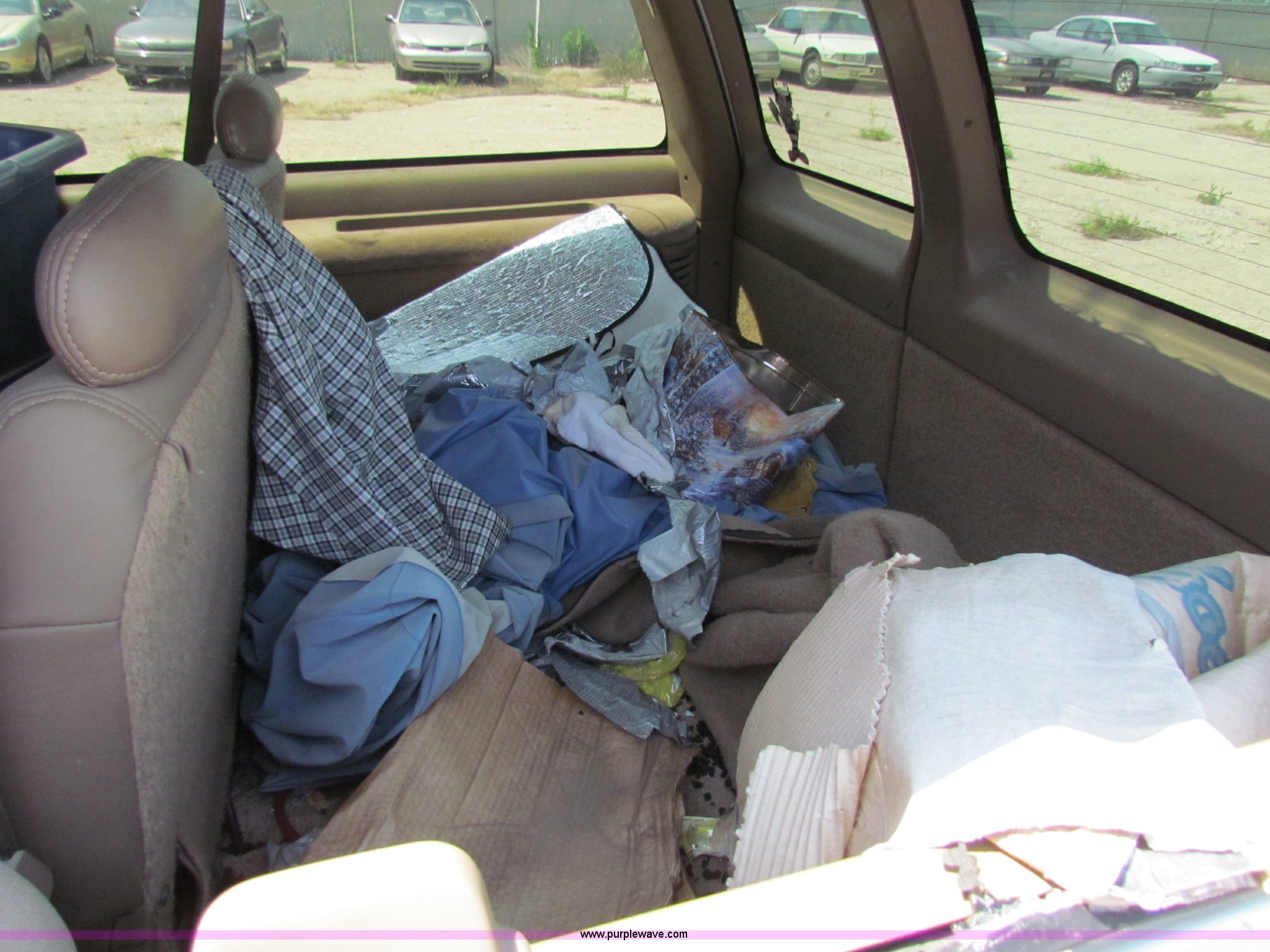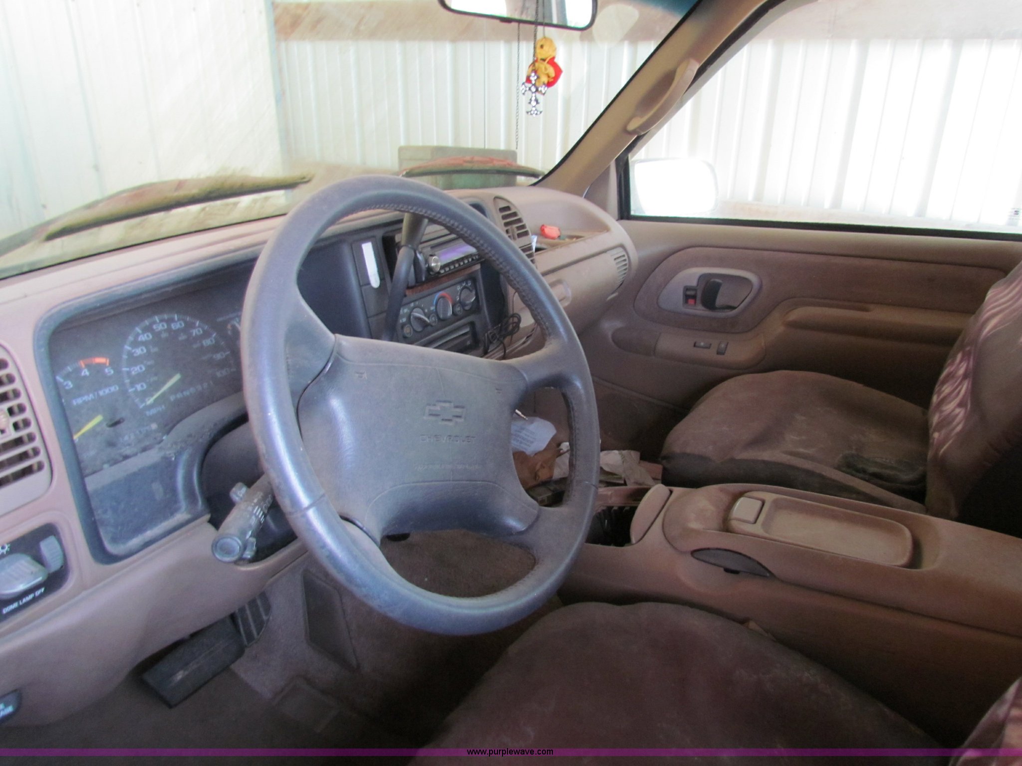 Purple Wave is selling a used Passenger Vehicle in Kansas. This item is a 1995 Chevrolet Suburban C1500 SUV with the following: 142,105 miles on odometer, 5.7L V8 OHV 16V gas engine, Automatic transmission, AC and heat, Tilt, Cruise, AM/FM/CD, Power windows, locks, and mirrors, 235/75R15 tires, Interior/exterior cosmetic damage, No keys, Unknown running condition, Some broken glass