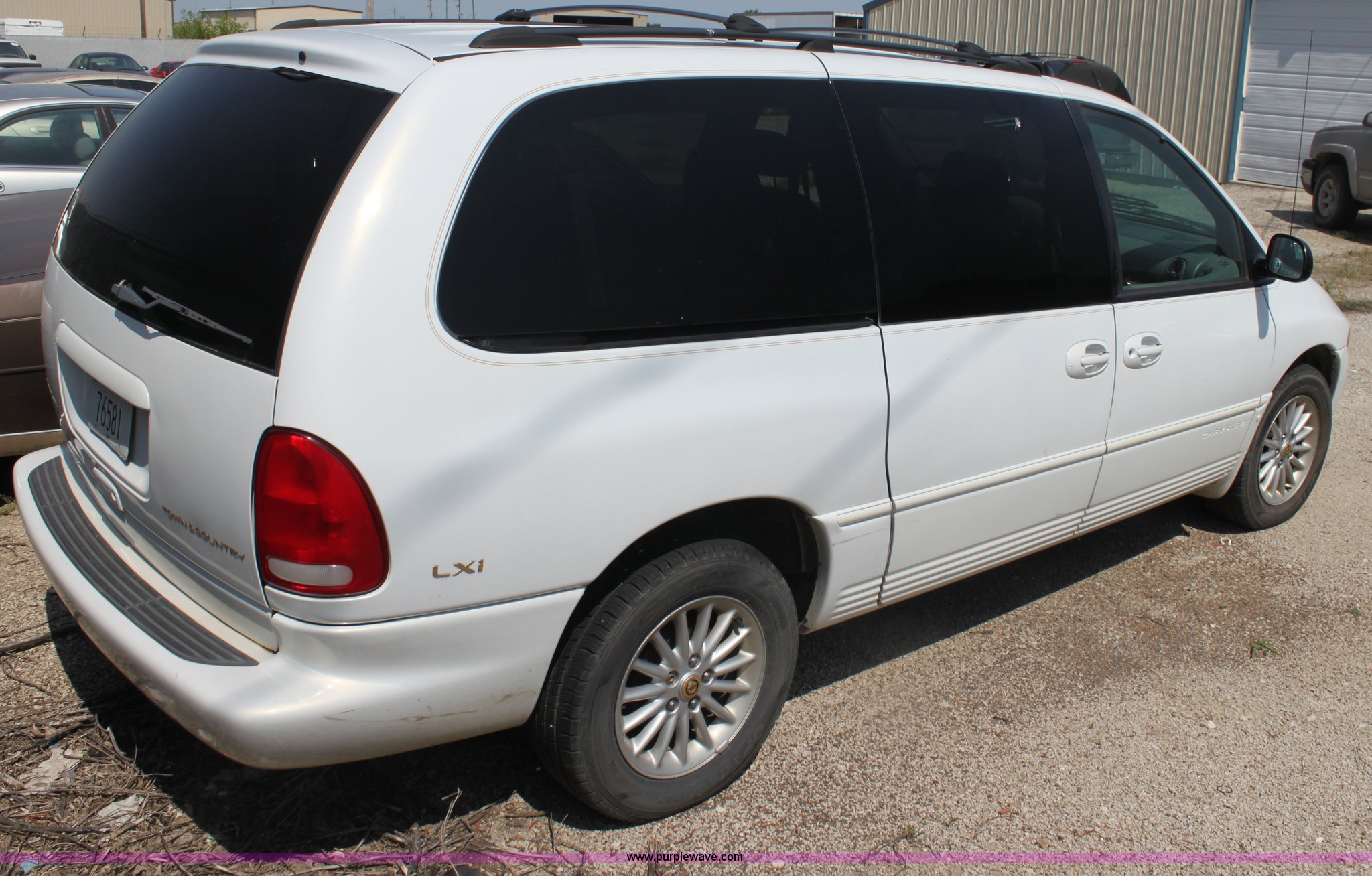 Purple Wave is selling a used Passenger Vehicle in Kansas. This item is a 1999 Chrysler Town & Country LXi minivan with the following: 146,651 miles on odometer, 3.8L V6 OHV 12V gas engine, Automatic transmission, AC and heat, Tilt, Cruise, Power windows, locks, and mirrors, Infinity Acoustic 10 sound, 215/65R16 tires, Interior/exterior cosmetic damage, Dead battery, Contents not included