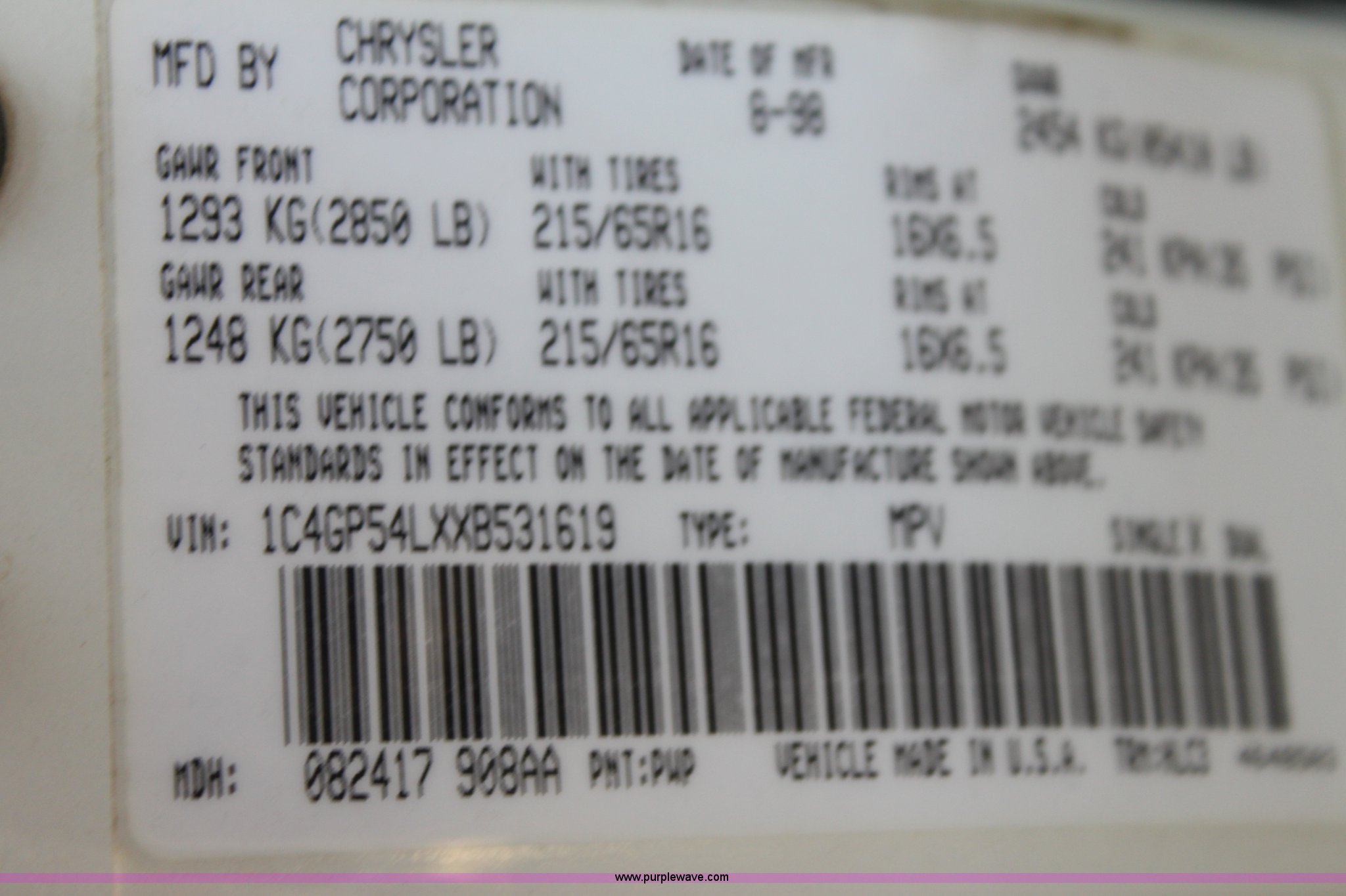 1999 Chrysler Town & Country LXi minivan. 146,651 miles on odometer, 3.8L V6 OHV 12V gas engine, Automatic transmission, AC and heat, Tilt, Cruise, Power windows, locks, and mirrors, Infinity Acoustic 10 sound, 215/65R16 tires, Interior/exterior cosmetic damage, Dead battery, Contents not included. 1C4GP54LXXB531619. Shipping quotes available. Emporia Police Department. Emporia, KS 66801