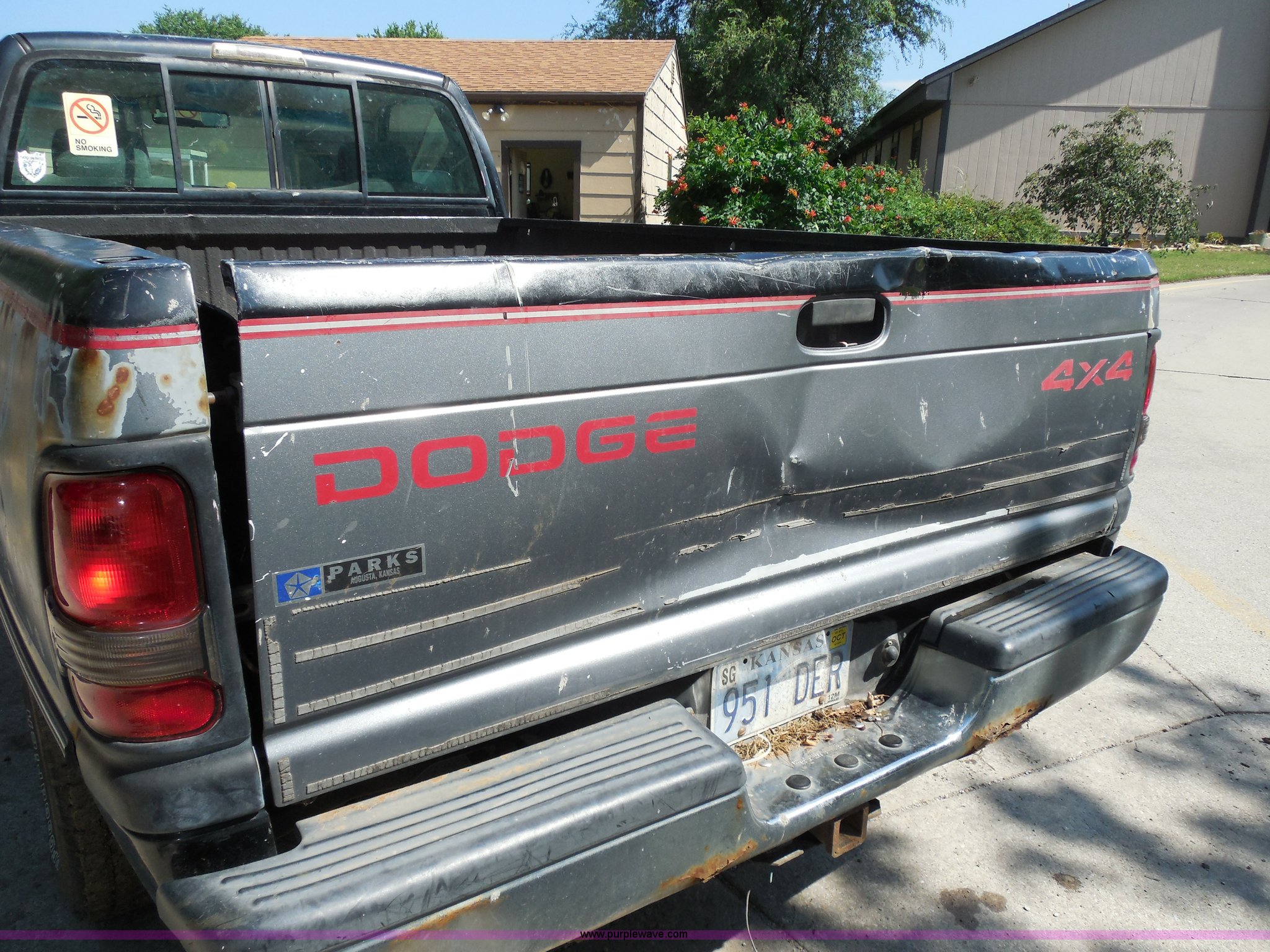 Purple Wave is selling a used Passenger Vehicle in Kansas. This item is a 1994 Dodge Ram 1500 pickup truck with the following: 171,234 miles on odometer, 5.9L V8 OHV 16V gas engine, Automatic transmission, Four wheel drive, AC and heat, Tilt, Cruise, AM/FM/cassette, Power windows and locks, Cloth interior, Rhino Liner bed liner, Receiver hitch, P245/75R16 tires, Interior/exterior cosmetic damage, Hole in dash, Paint faded, Rust