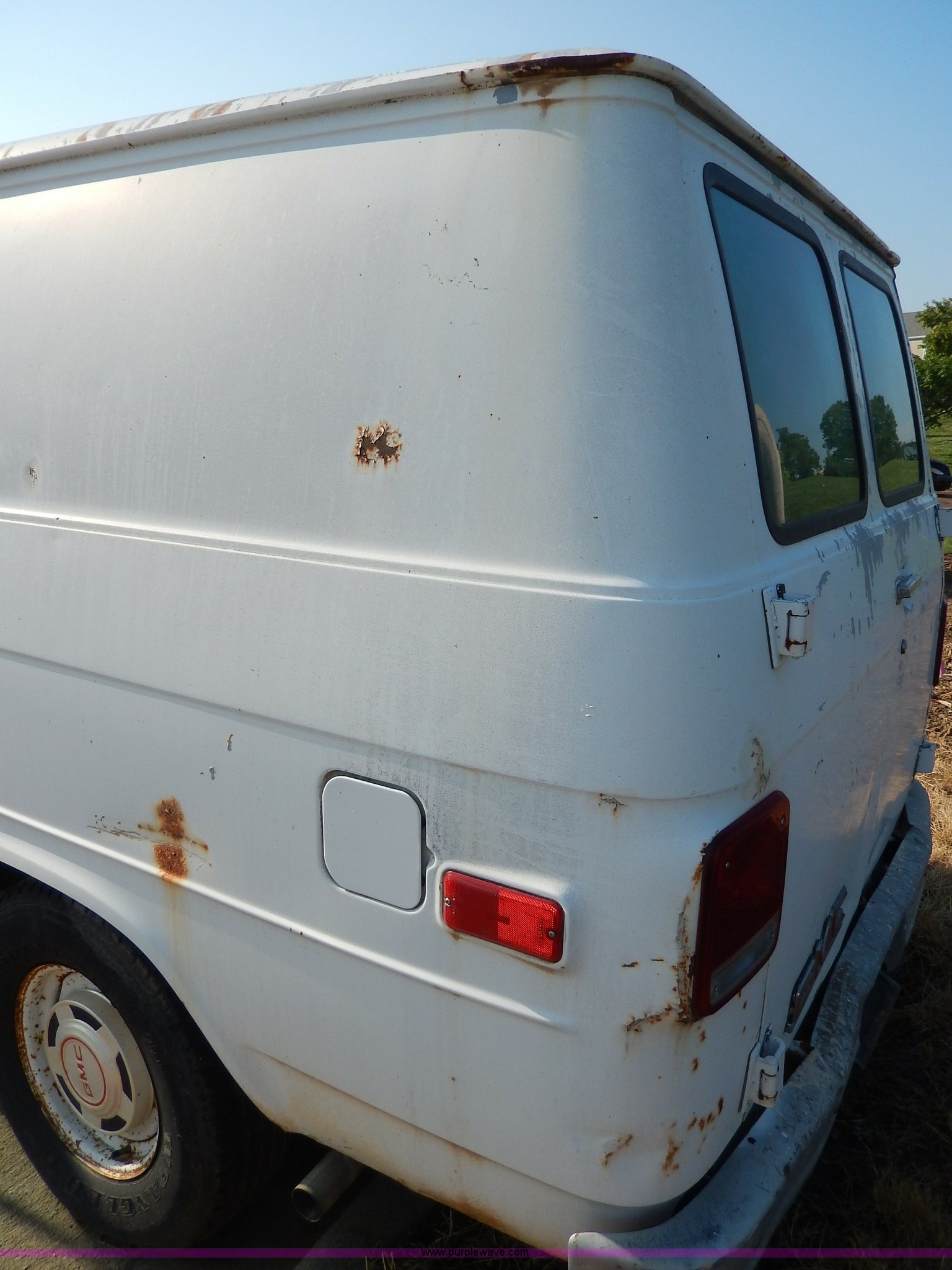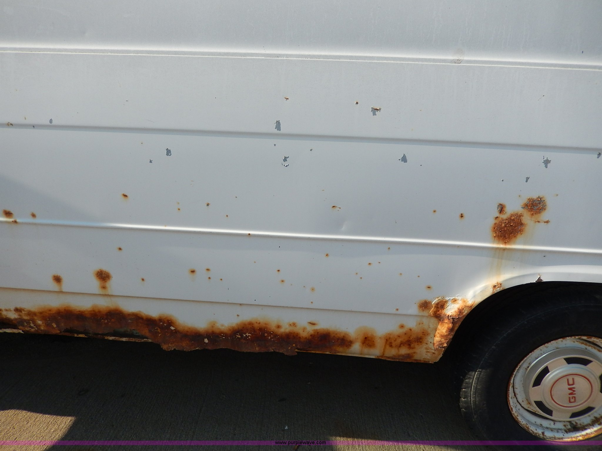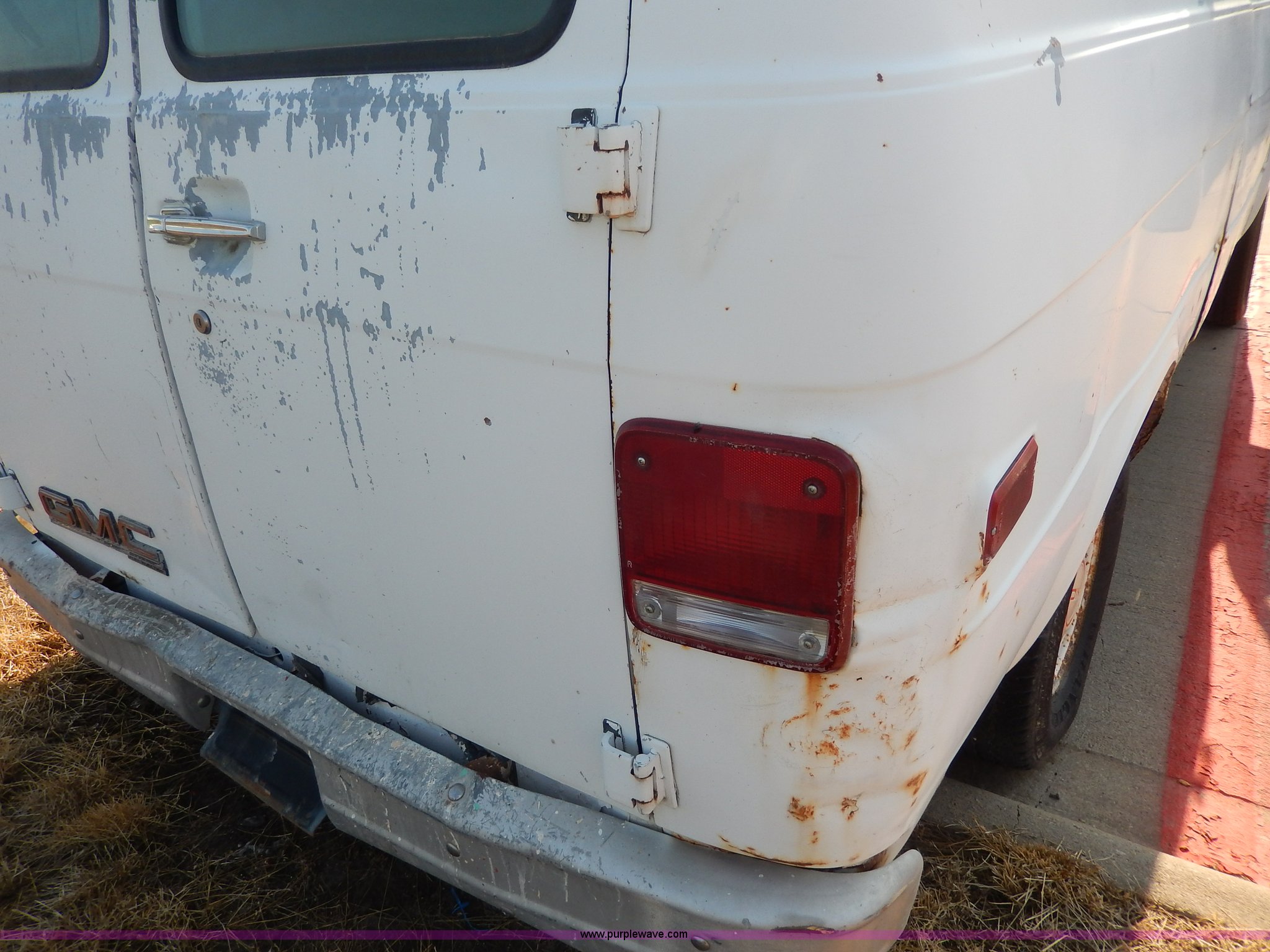 Purple Wave is selling a used Passenger Vehicle in Kansas. This item is a 1988 GMC Vandura G1500 van with the following: 51,769 actual miles, 4.3L V6 OHV 12V gas engine, Automatic transmission, Heat, AM/FM, Manual windows and locks, Vinyl interior, 235/75R15 tires, Intake gasket blown, Vehicle must be towed, Transmission leaks, Battery dead, Interior/exterior cosmetic damage, Rust, Paint peeling, Driver and passenger seats only, Unused spare tire