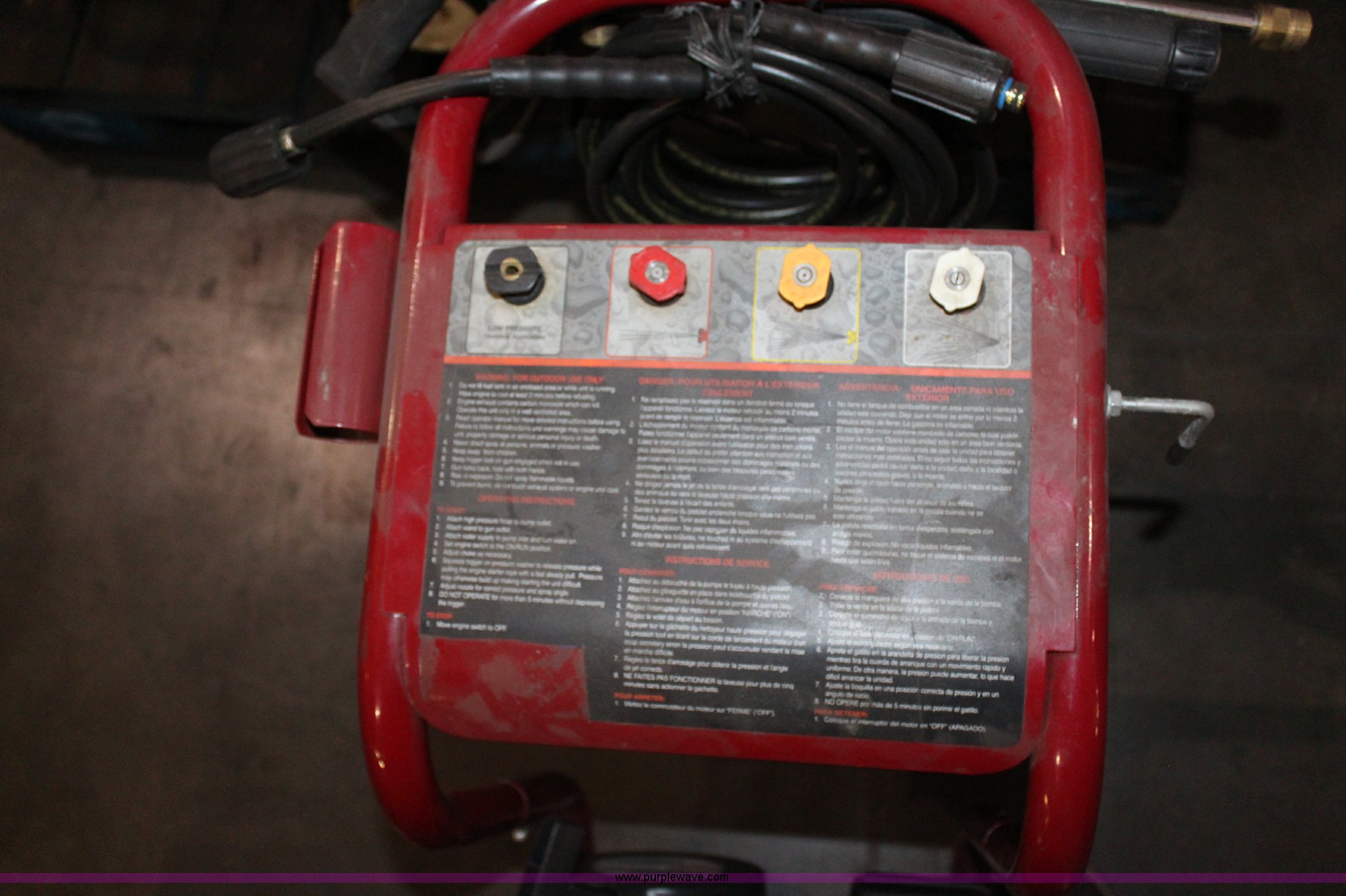 Purple Wave is selling a used Tools in Kansas. This item is a Coleman Powermate pressure washer with the following: Gas engine, 2.3 gpm, 2,400 psi, Wand and hose