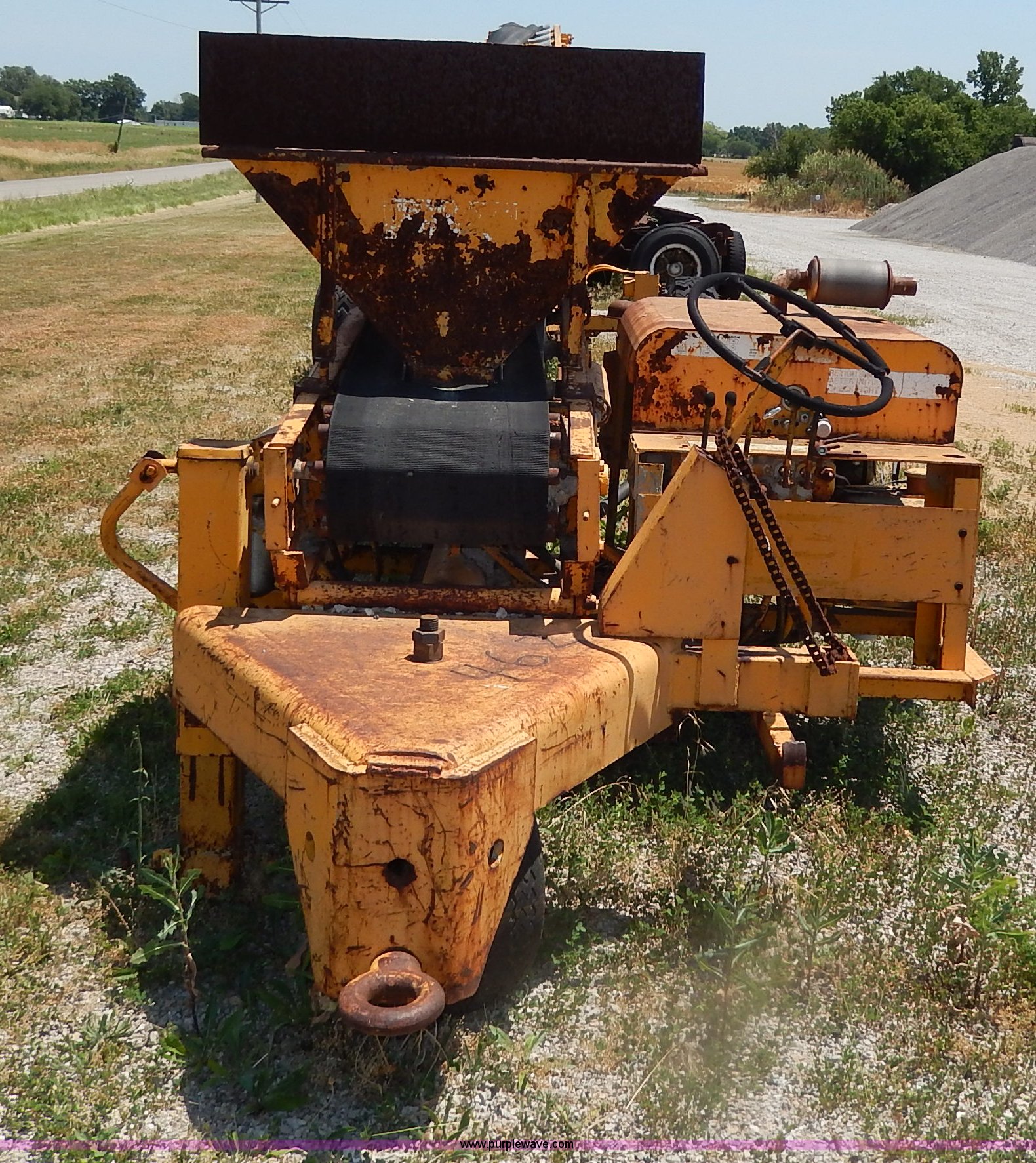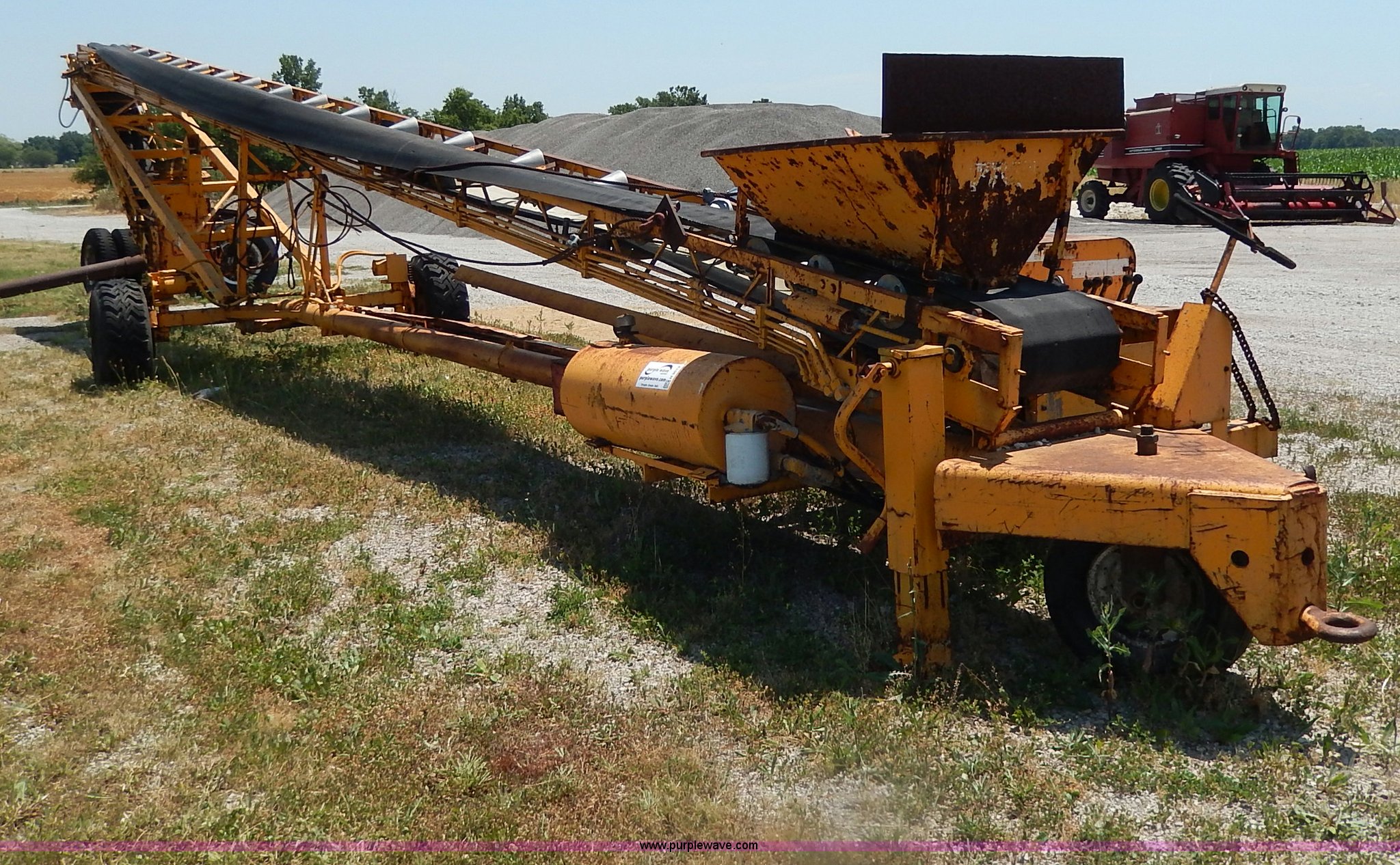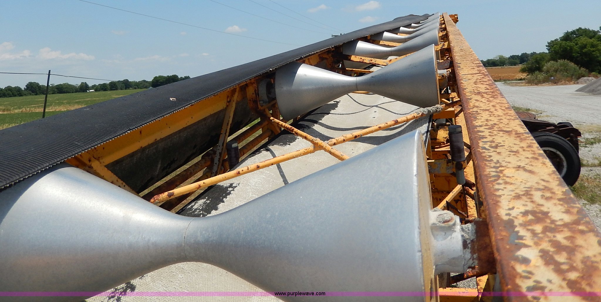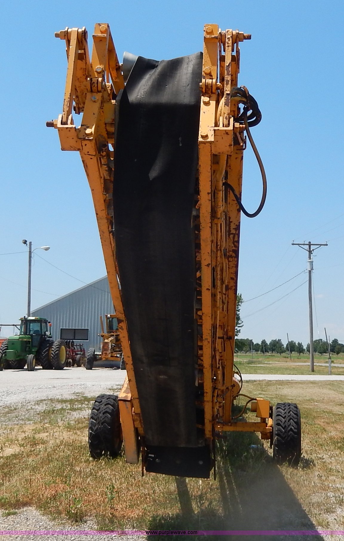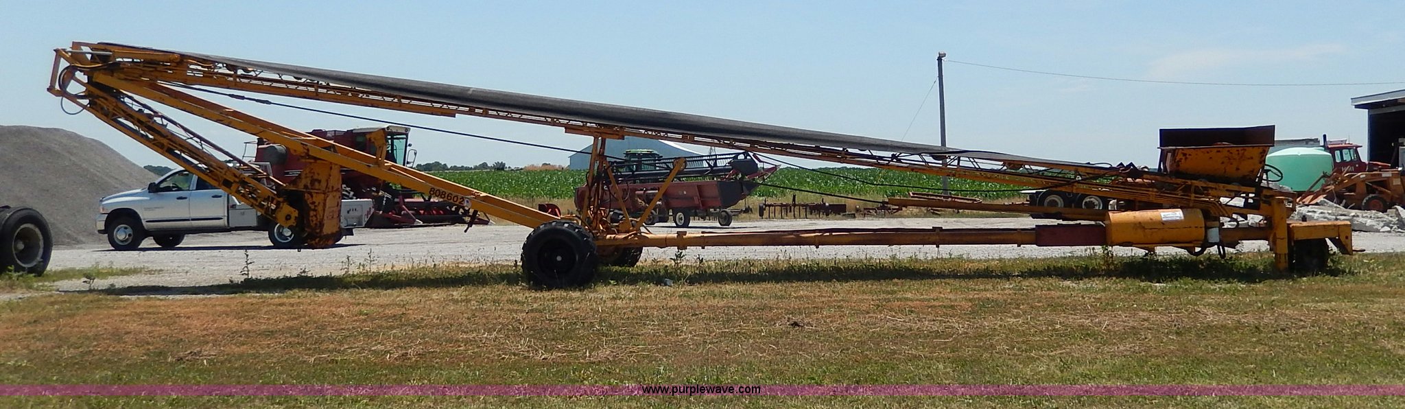 Purple Wave is selling a used Auger or Conveyor in Missouri. This item is a Morgan concrete conveyor with the following: 55'L, 10'L articulating boom, 65' overall length, 16"W belt, Gas engine, Unknown running condition, Pintle hitch, Hydraulics, 12-16.5 tires, Spare tire