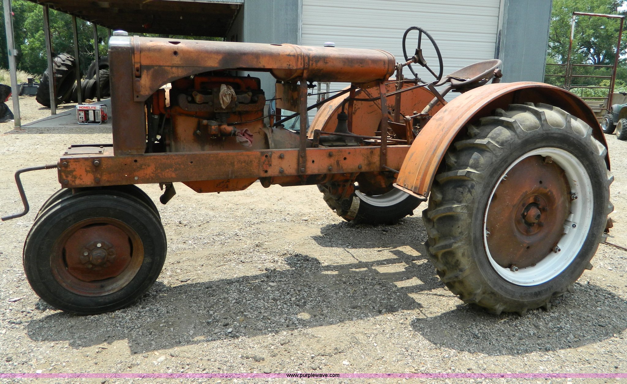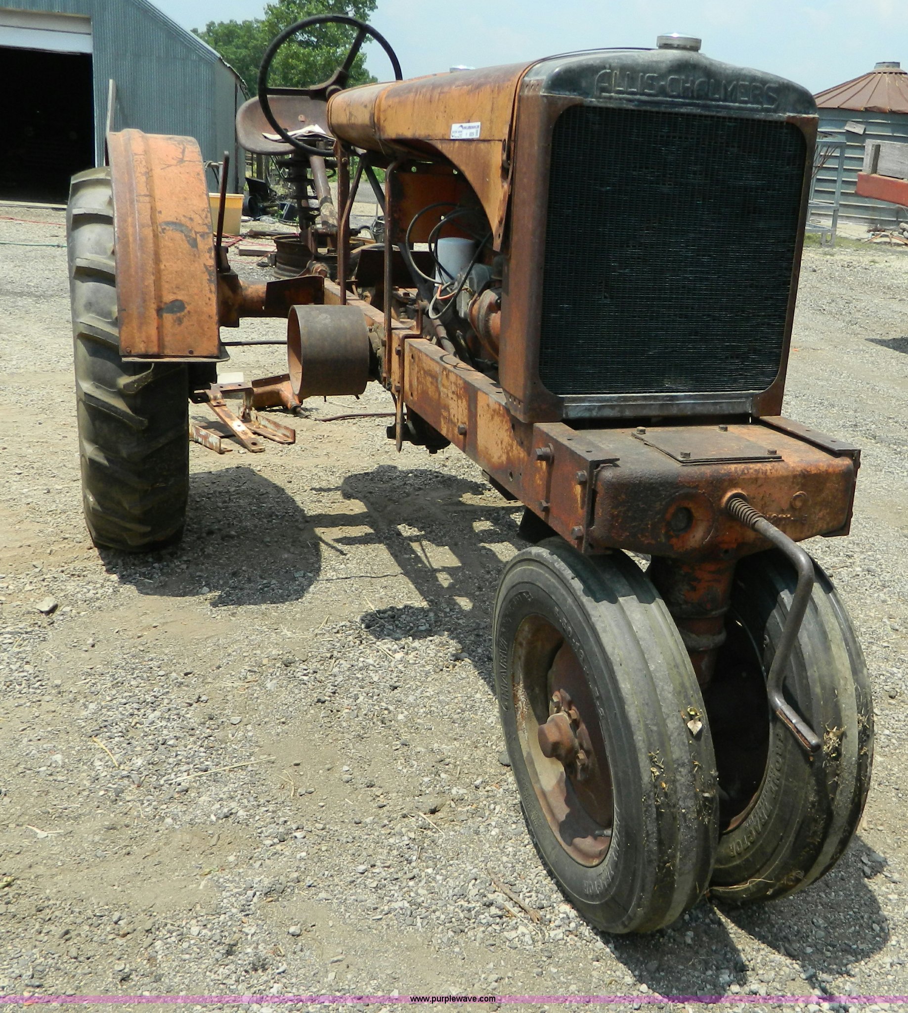 Purple Wave is selling a used Tractor in Kansas. This item is a 1934 Allis Chalmers WC tractor with the following: Four cylinder gas engine, Four speed manual transmission, 5.50-16 front tires, 11.2-28 rear tires, Operators manual, Non-operational, Serial WC19291