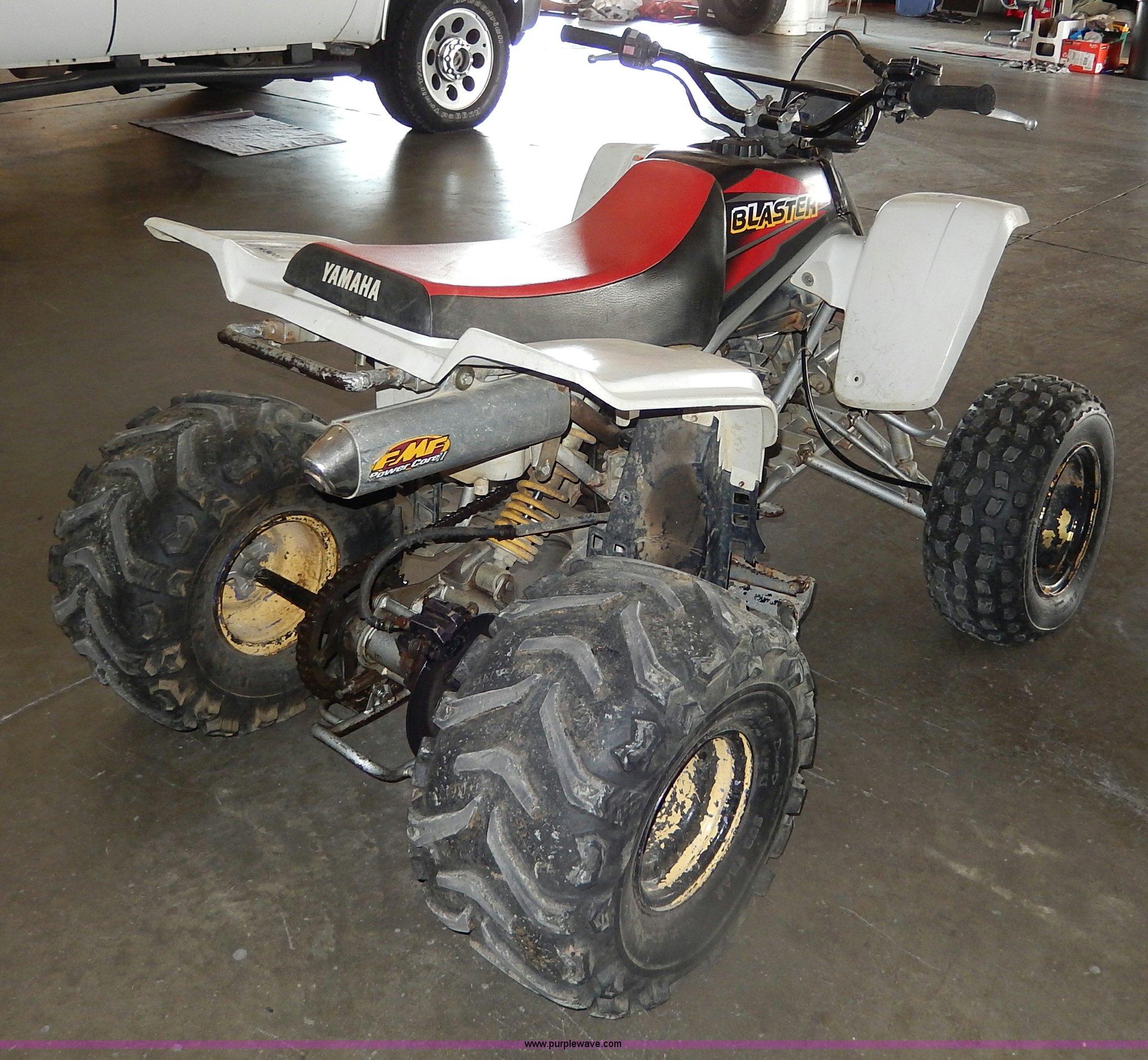 Purple Wave is selling a used ATV in Kansas. This item is a 1994 Yamaha Blaster ATV with the following: Chain drive, FMF Power Core II muffler, 21x7-10 front tires, 22x11.00-8 rear tires, No odometer or hour meter, No keys