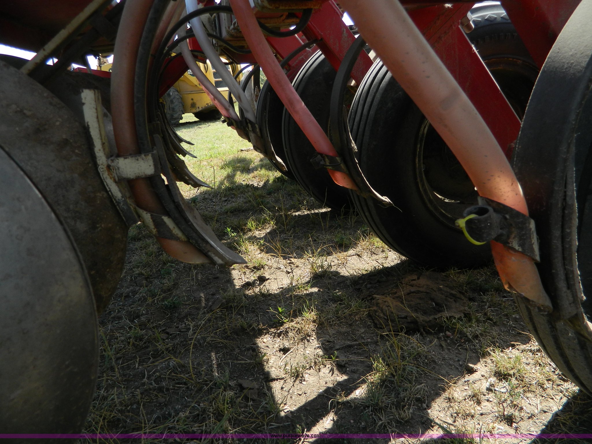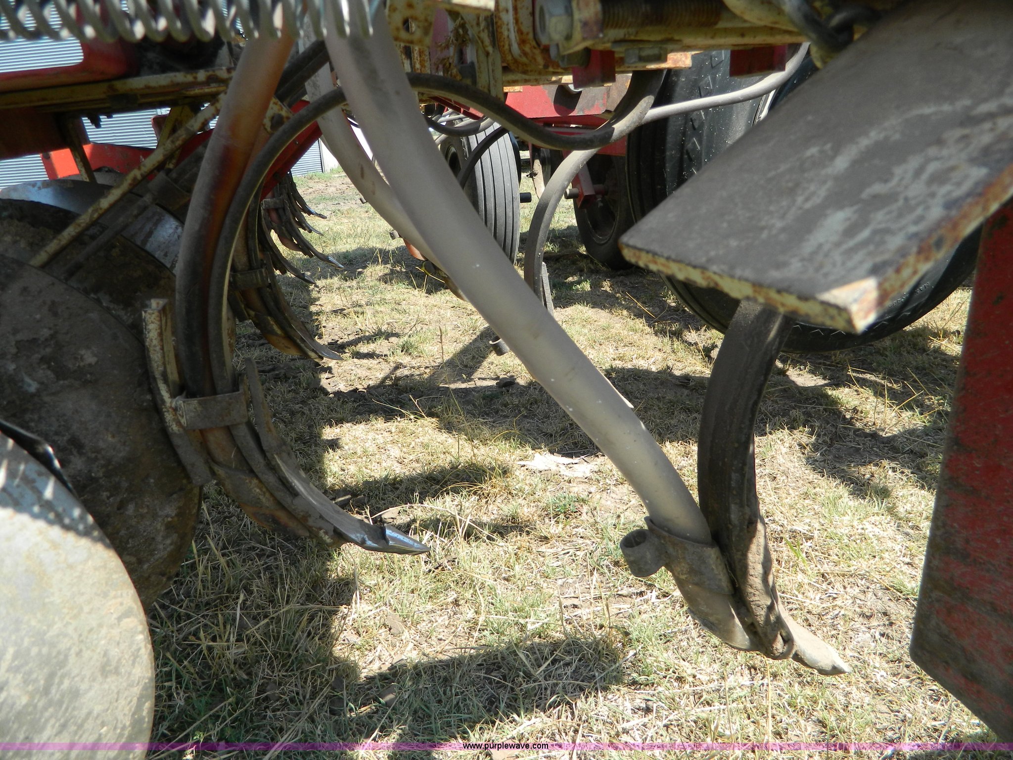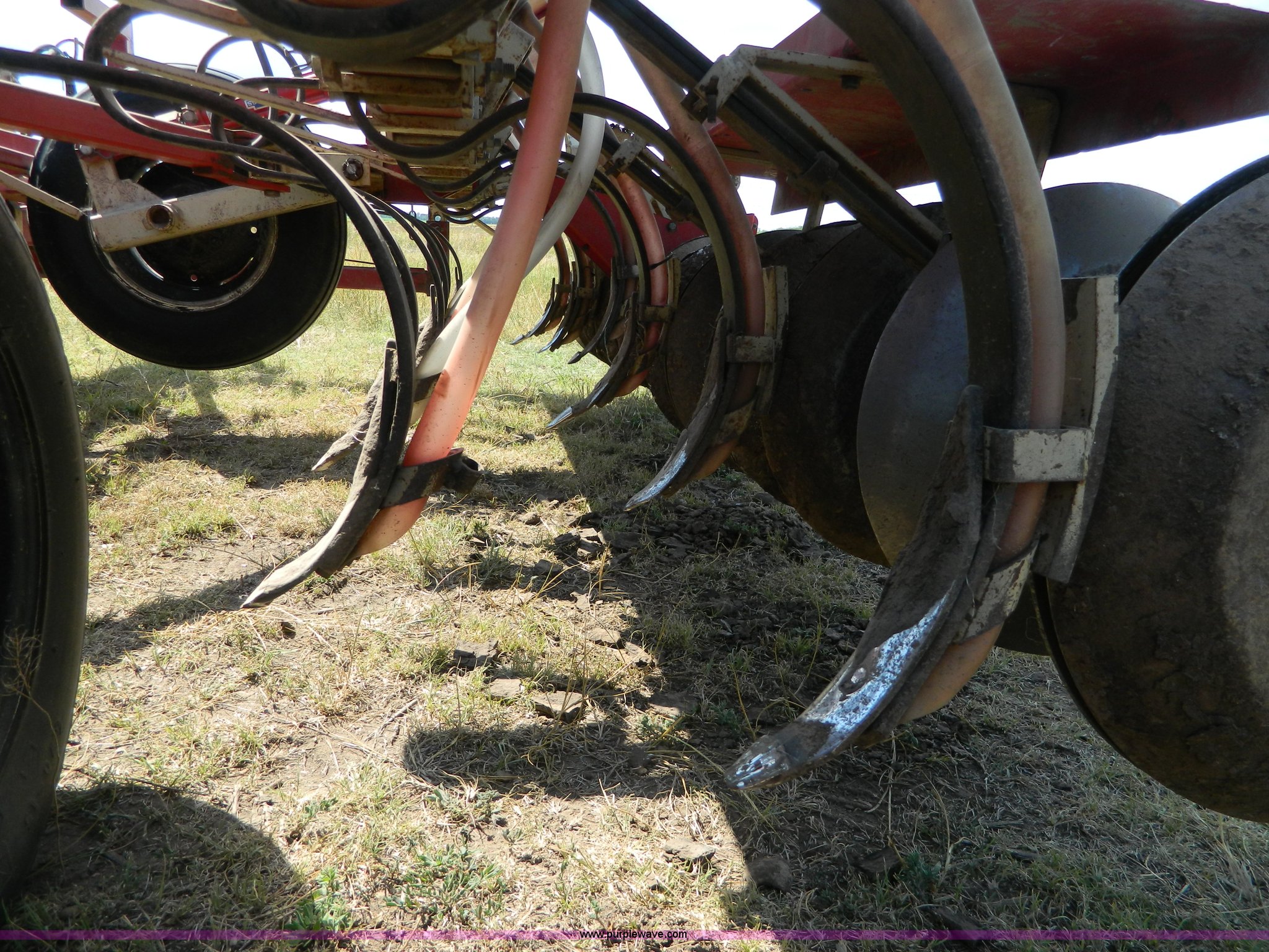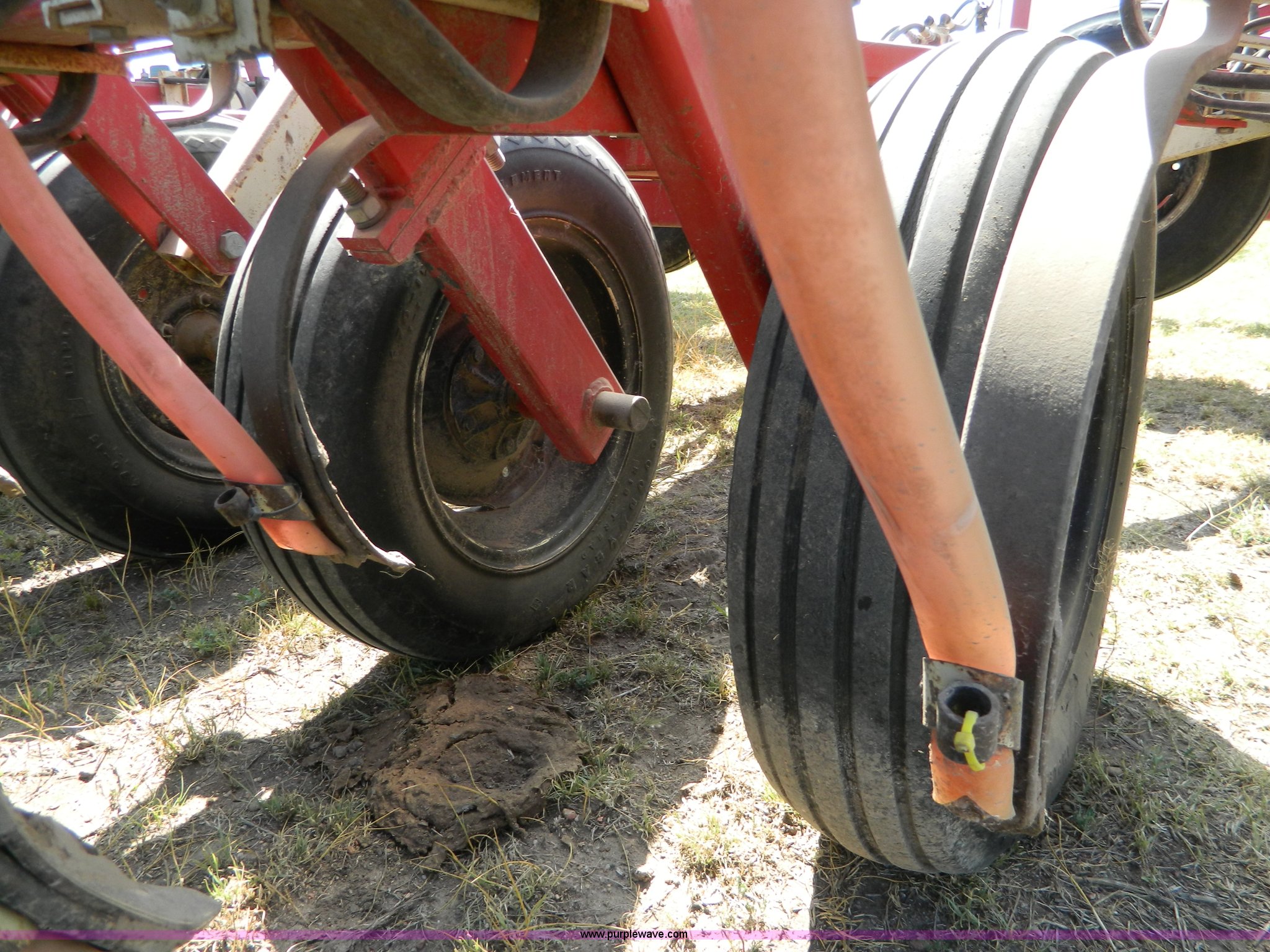 Purple Wave is selling a used Grain Drill or Seeder in Kansas. This item is a CrustBuster grain drill with the following: 10" spacing, Chisel points, Steel press wheels, Rubber delivery tubes, 6.70-15 implement tires, Stored inside