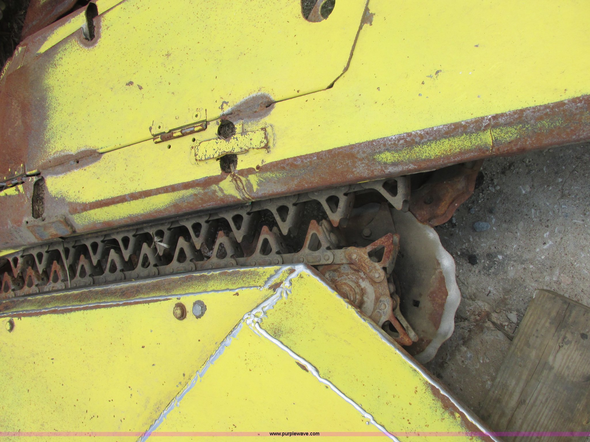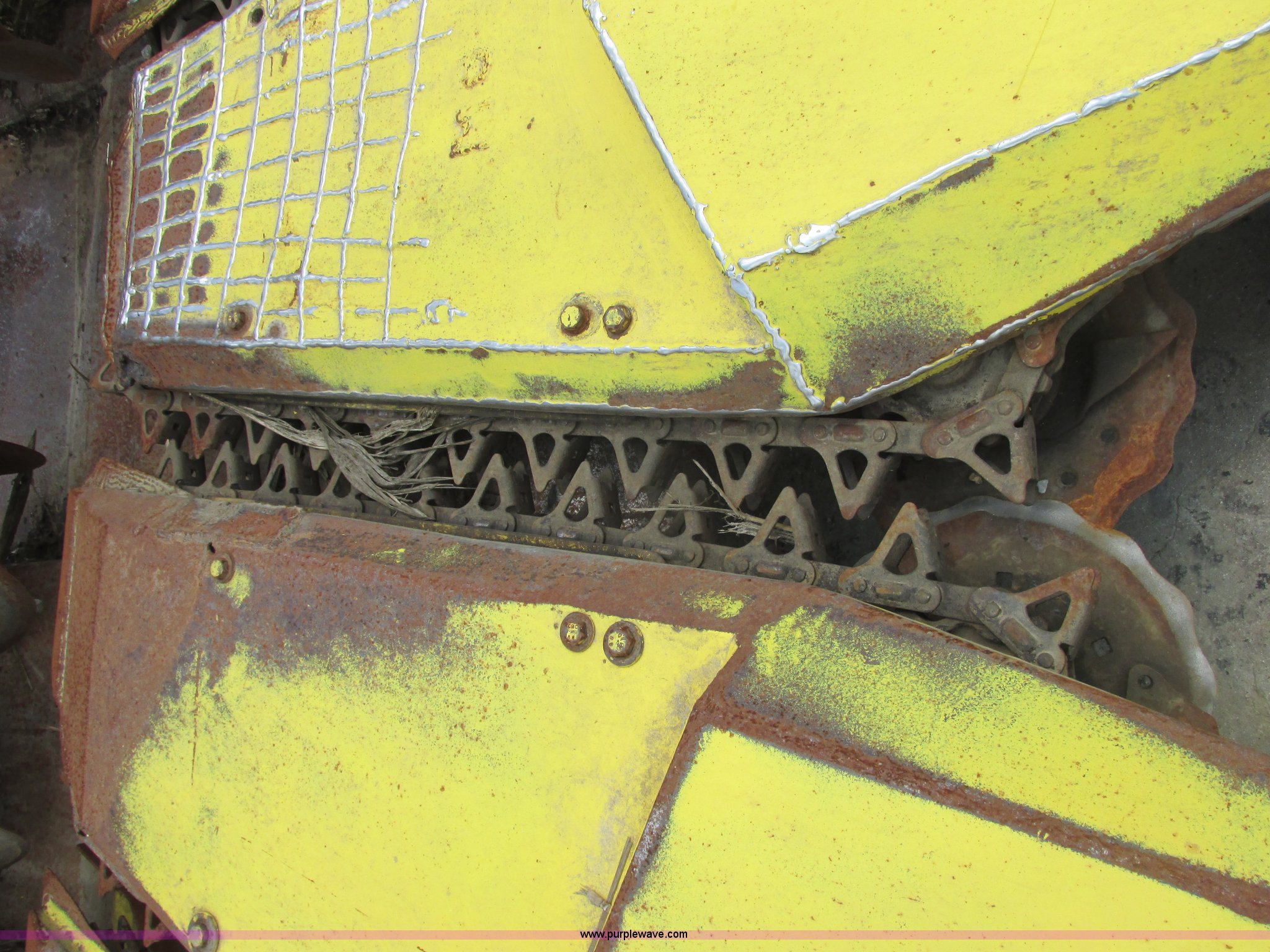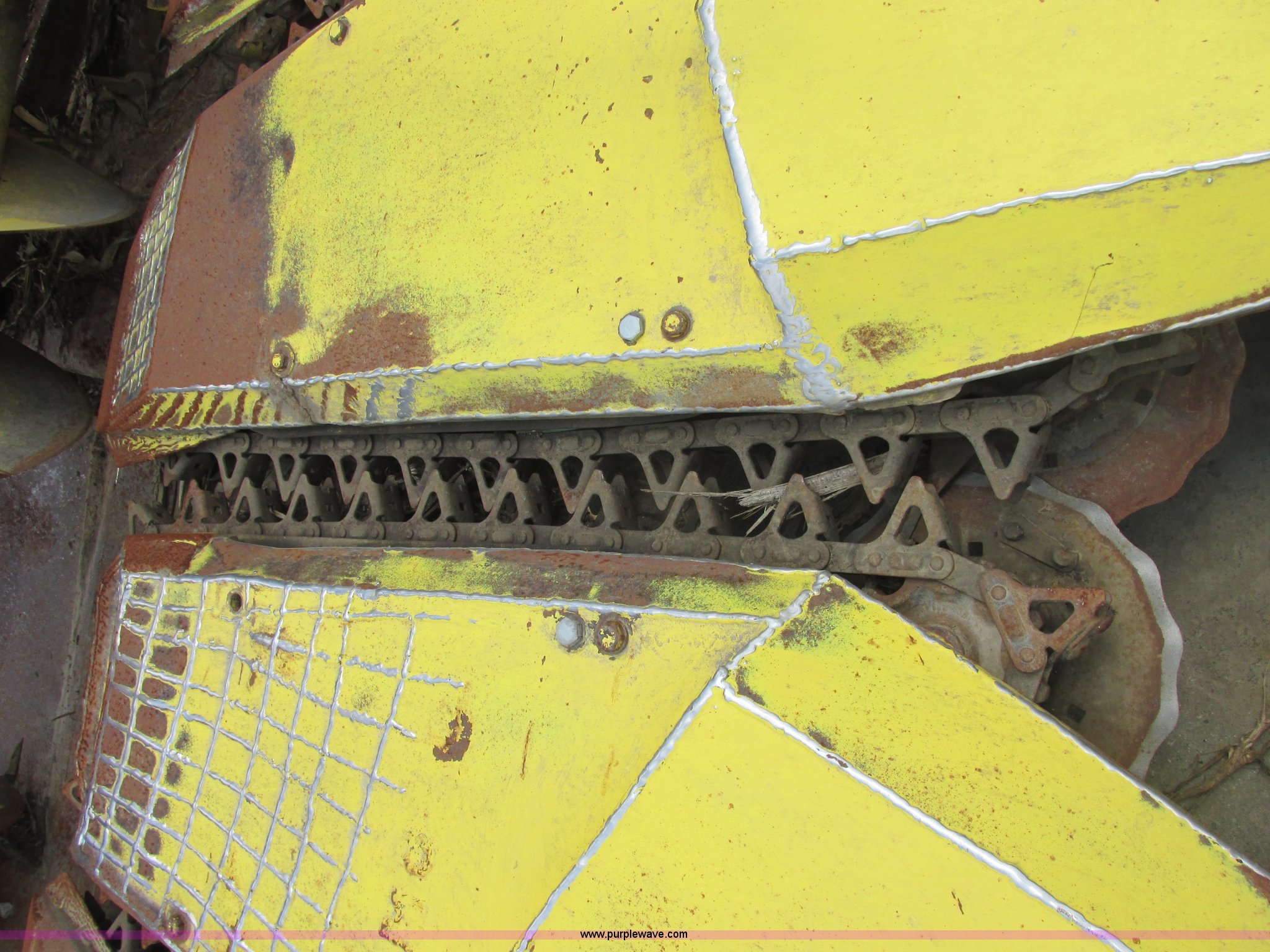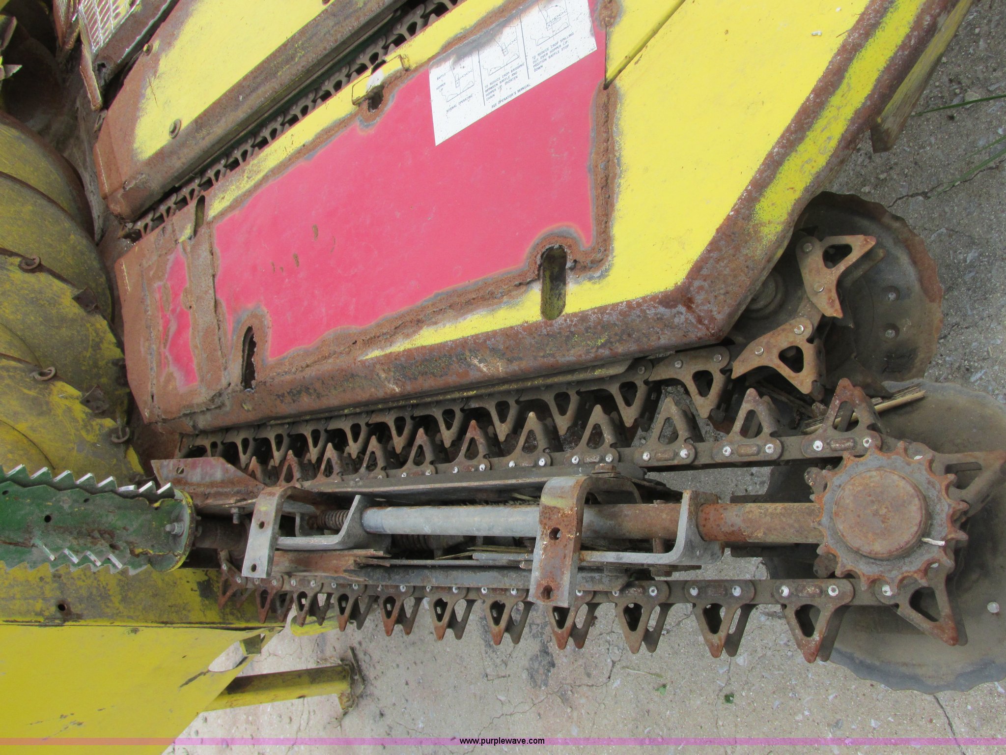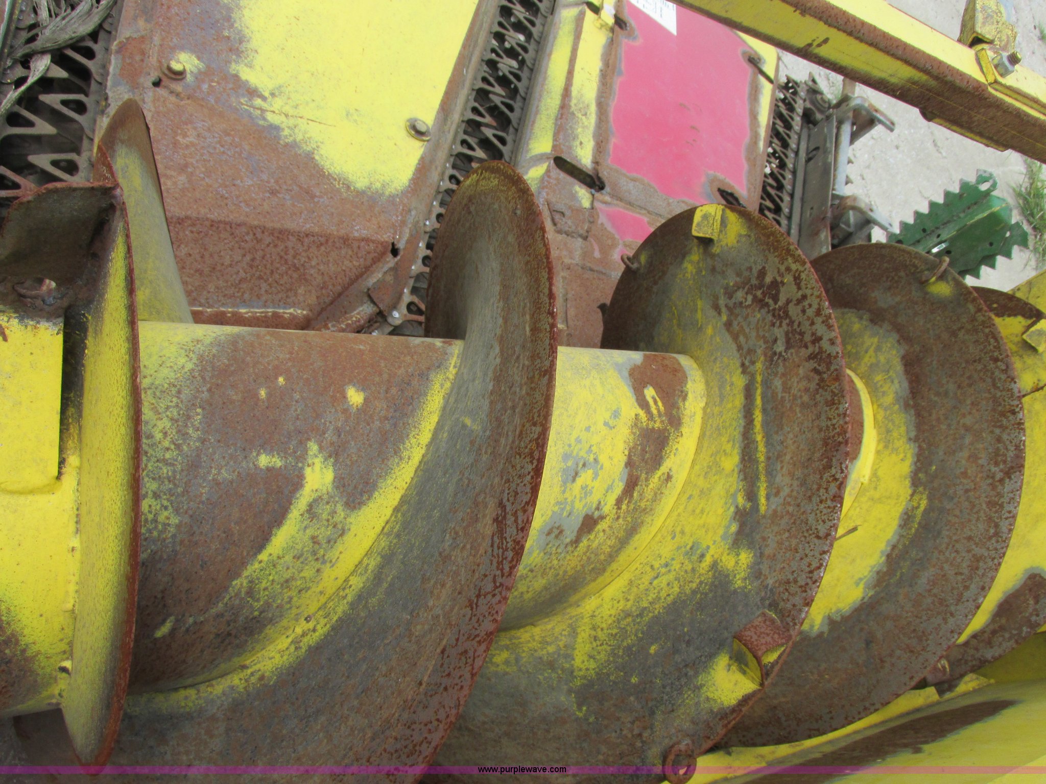 Purple Wave is selling a used Forage Head or Silage Handling in Illinois. This item is a 1990 John Deere 666 forage harvester row crop head with the following: 14' overall width, Six row cut, Self sharpening blades, Detach stands in rear, Missing one shield, Serial 004368