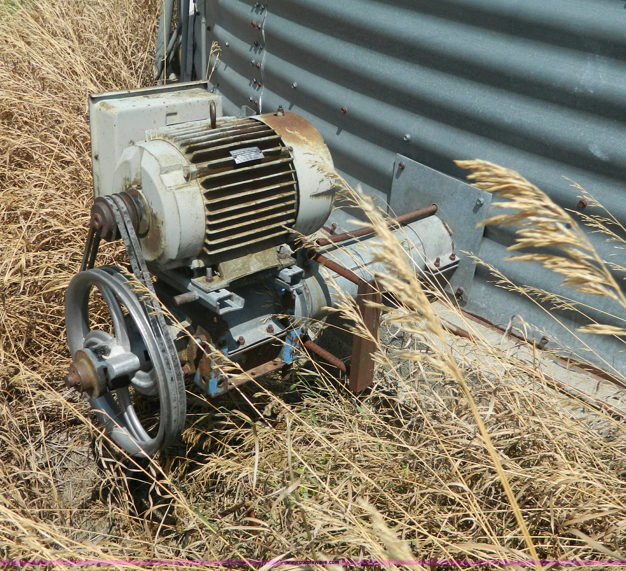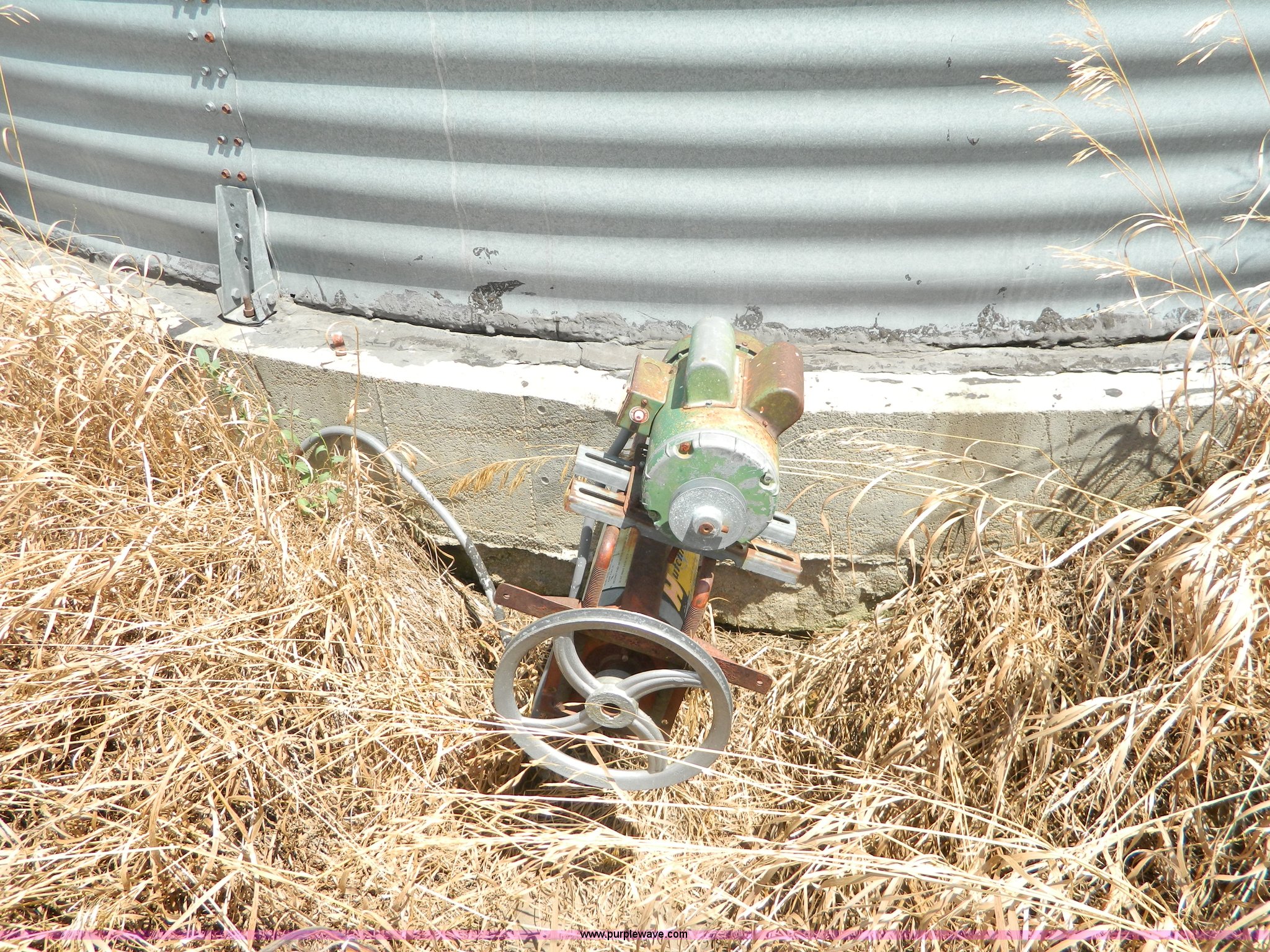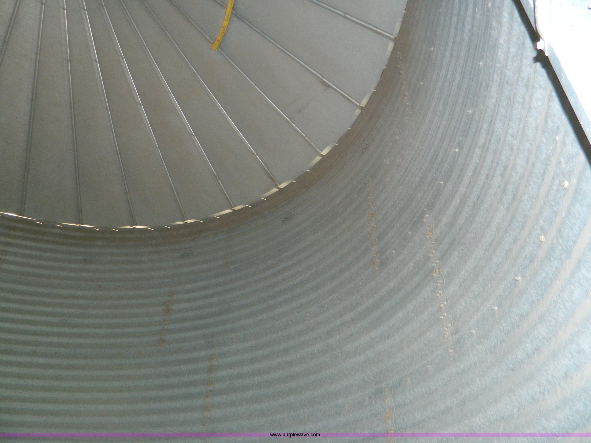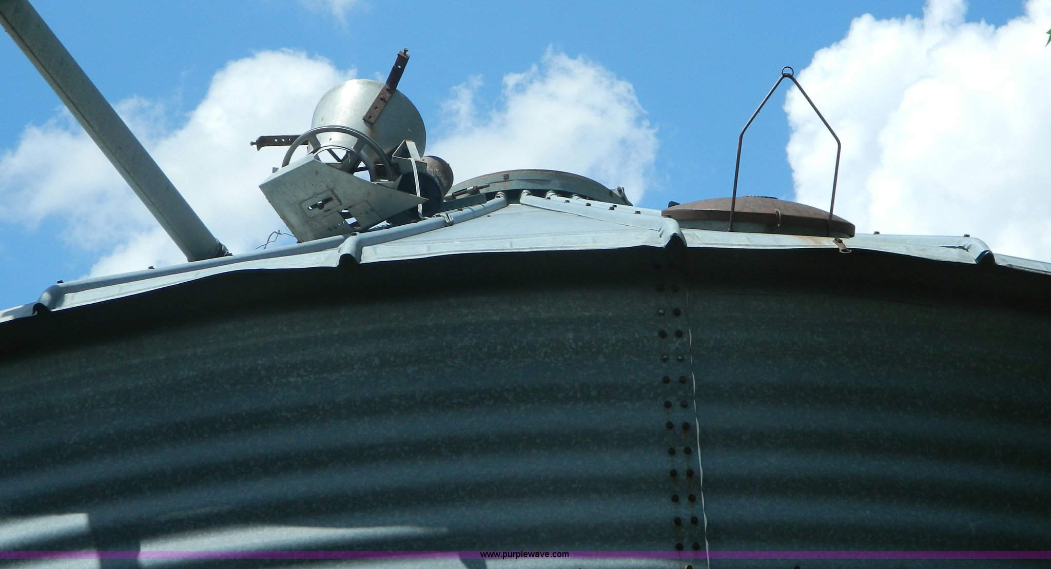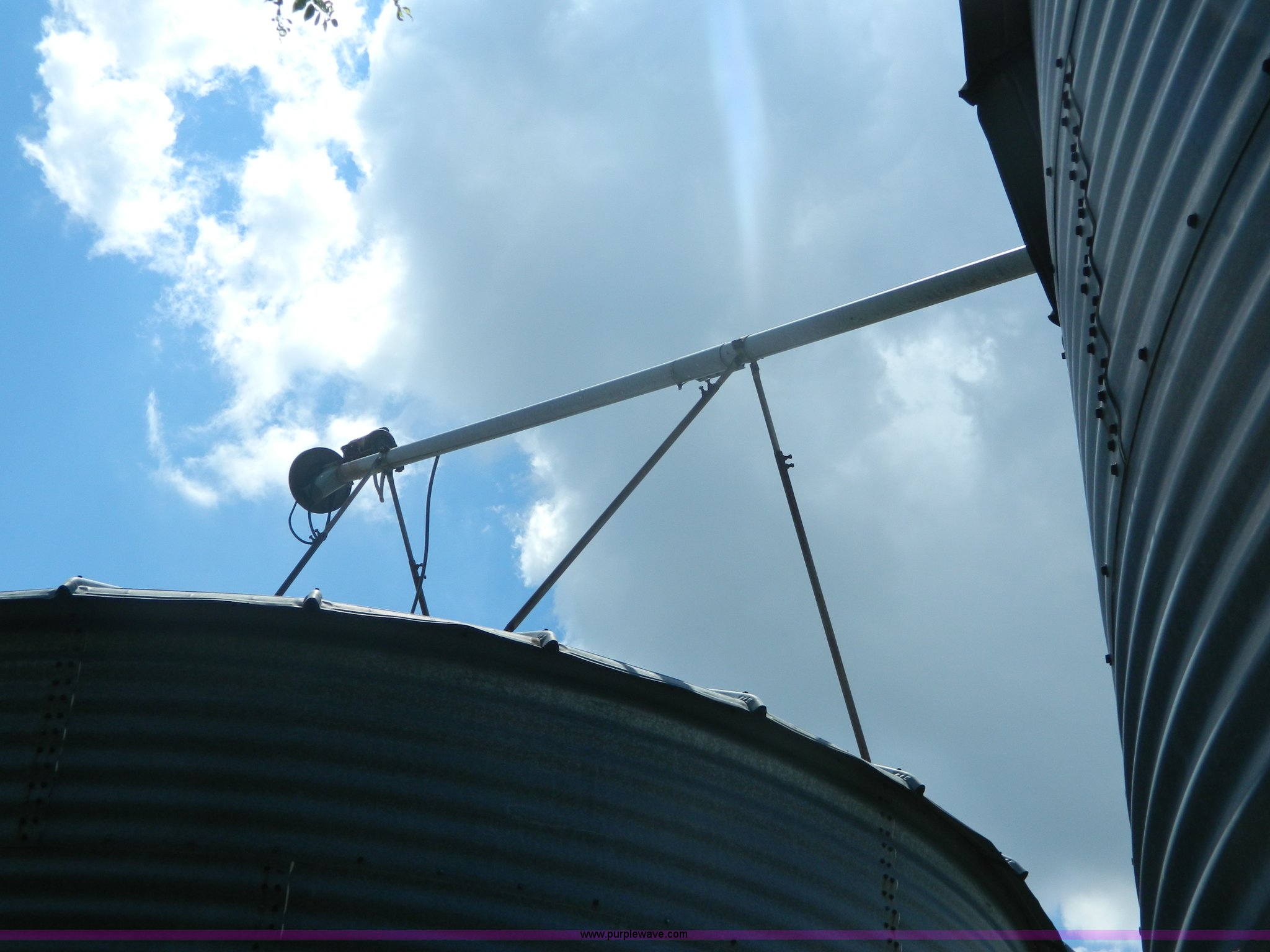 Purple Wave is selling a used Other Grain or Fertilizer Handling in Kansas. This item is a (2) York galvanized grain bins with the following: Six rings, 21 1/2 diameter, 17'H to bottom of dome cone, Approximately 5,500 bushel wheat capacity per bin, Augers, Electrical blower, Dryer and components