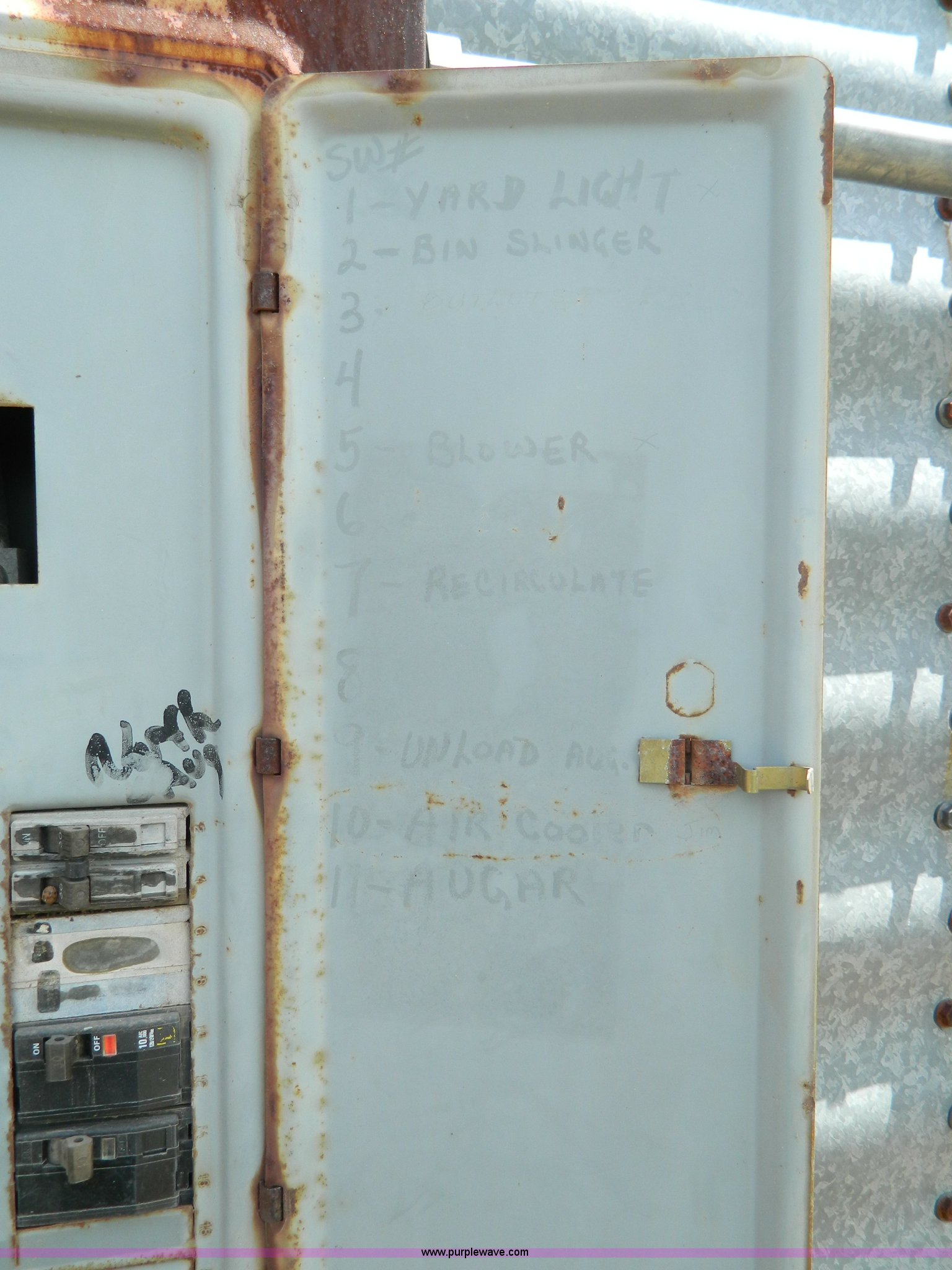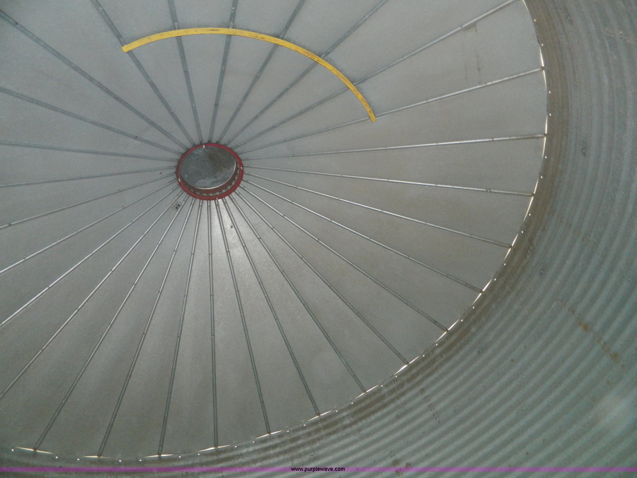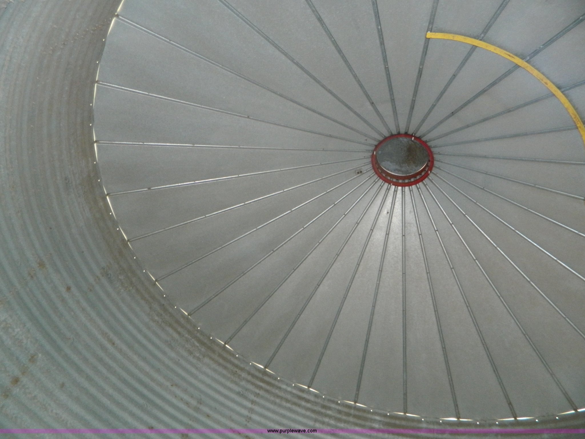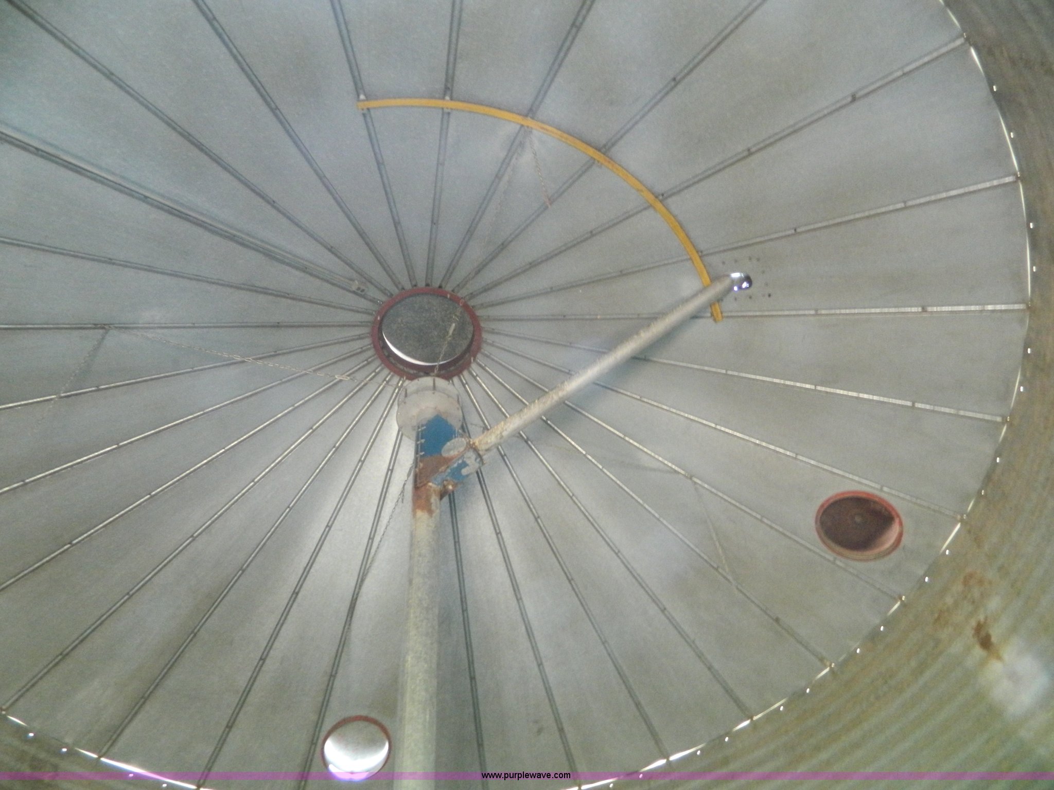 Purple Wave is selling a used Other Grain or Fertilizer Handling in Kansas. This item is a (2) York galvanized grain bins with the following: Six rings, 21 1/2 diameter, 17'H to bottom of dome cone, Approximately 5,500 bushel wheat capacity per bin, Augers, Electrical blower, Dryer and components