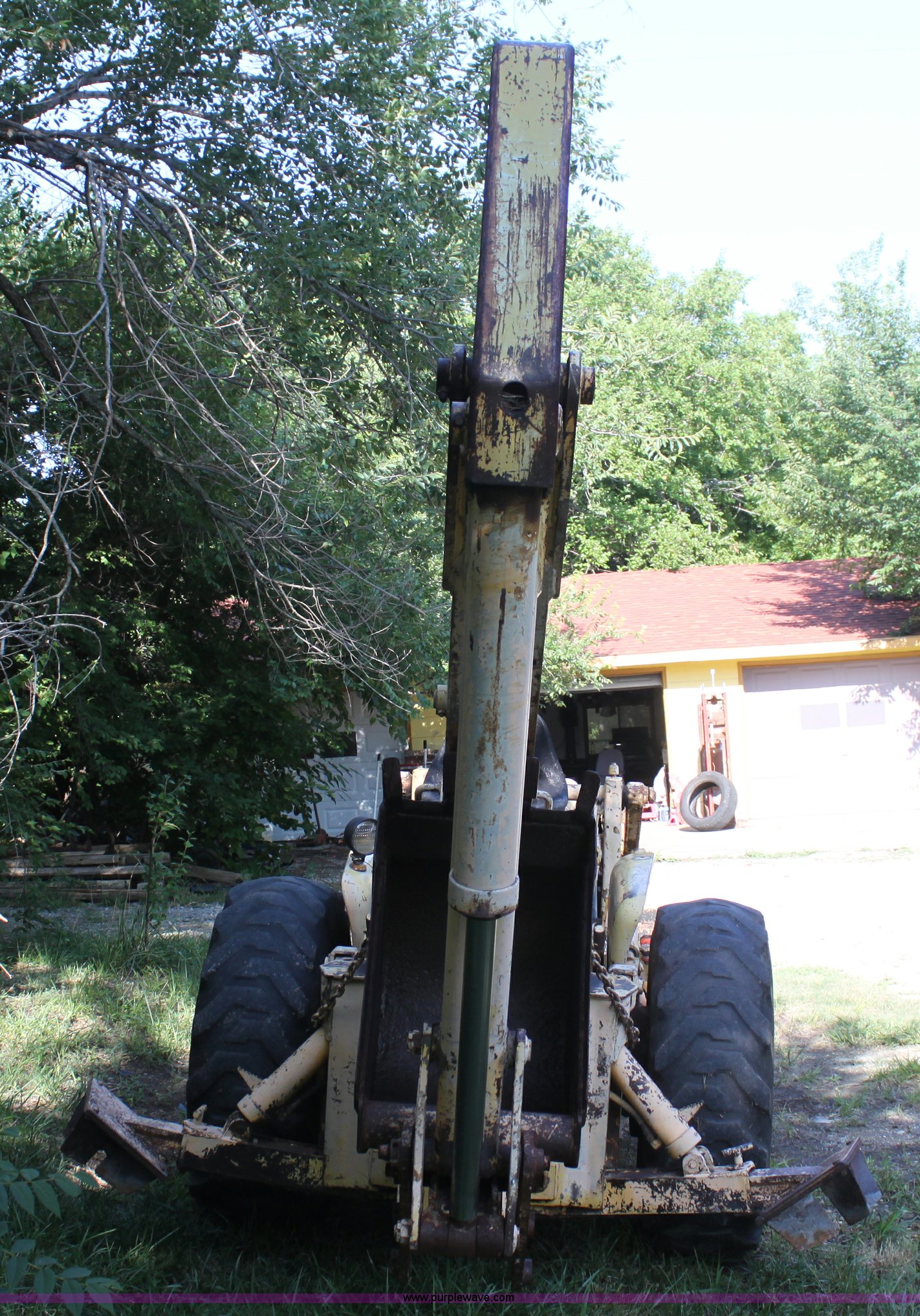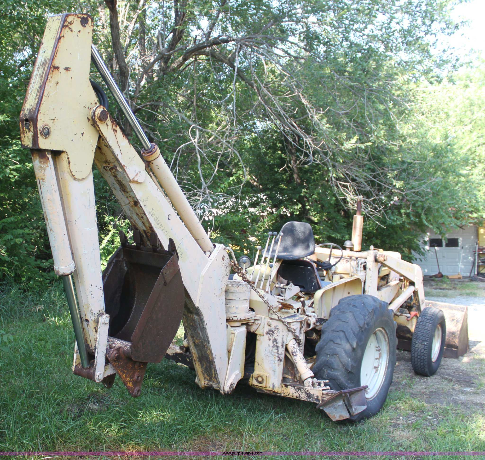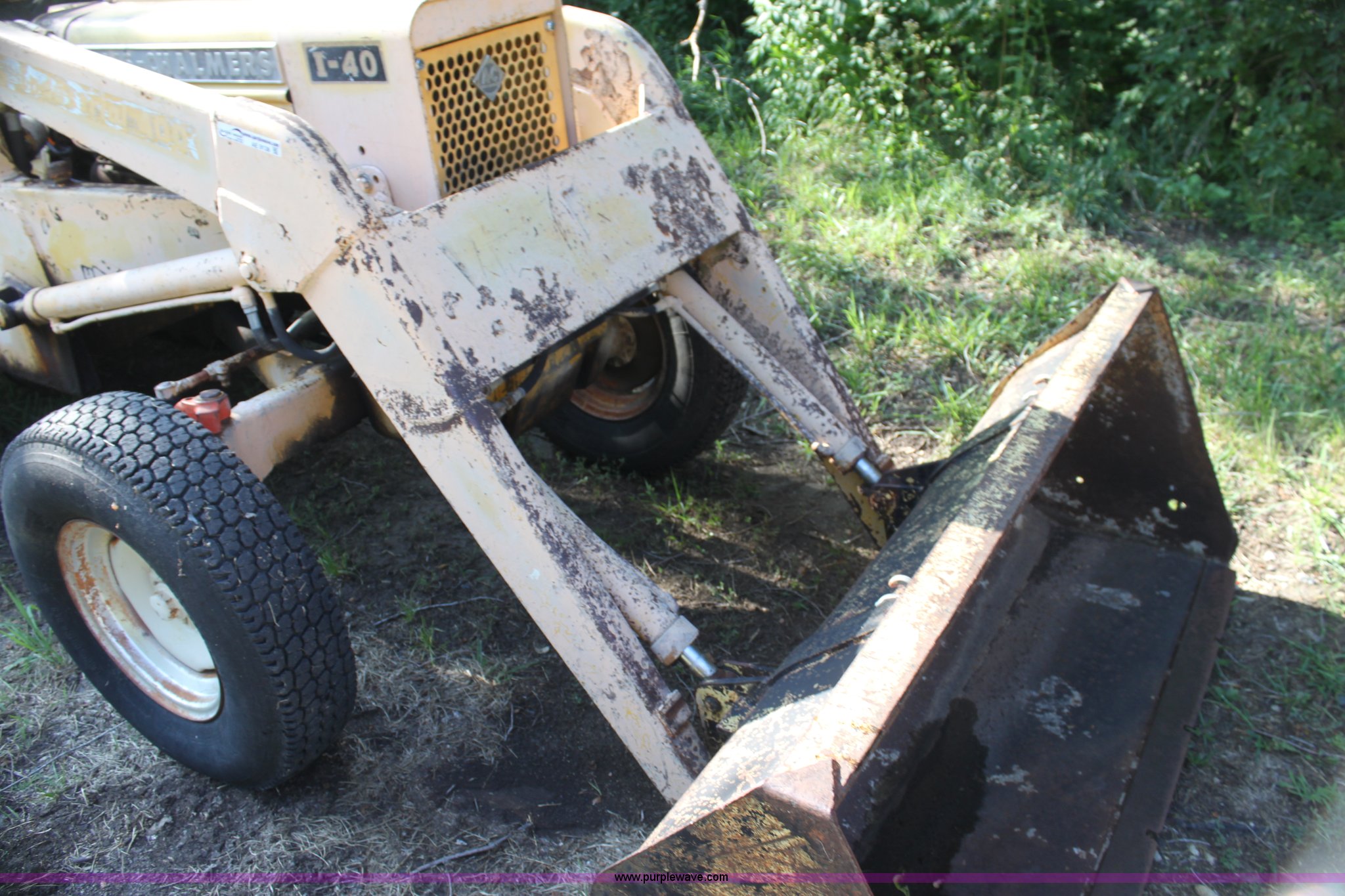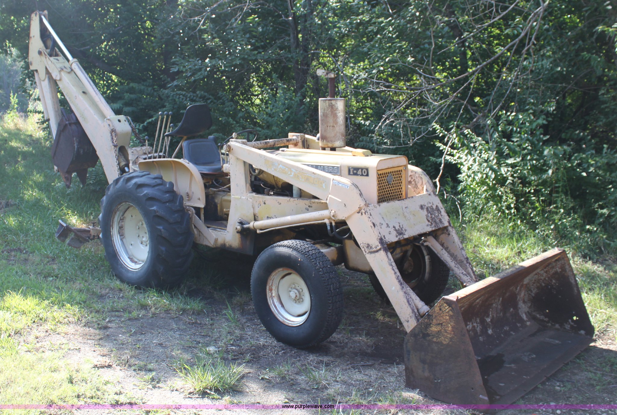 Purple Wave is selling a used Tractor Loader Backhoe in Kansas. This item is a Allis Chalmers I40 backhoe loader with the following: 1,945 hours on meter, Four cylinder gas engine, 40 HP, Manual transmission, Power steering, I-400 loader, 66" bucket, Serial 6AL1499-E, I-400 backhoe, 17" four tooth bucket, Hydraulic outriggers, 235/85R16 front tires, 14.9-24 rear tires, Serial 1401194