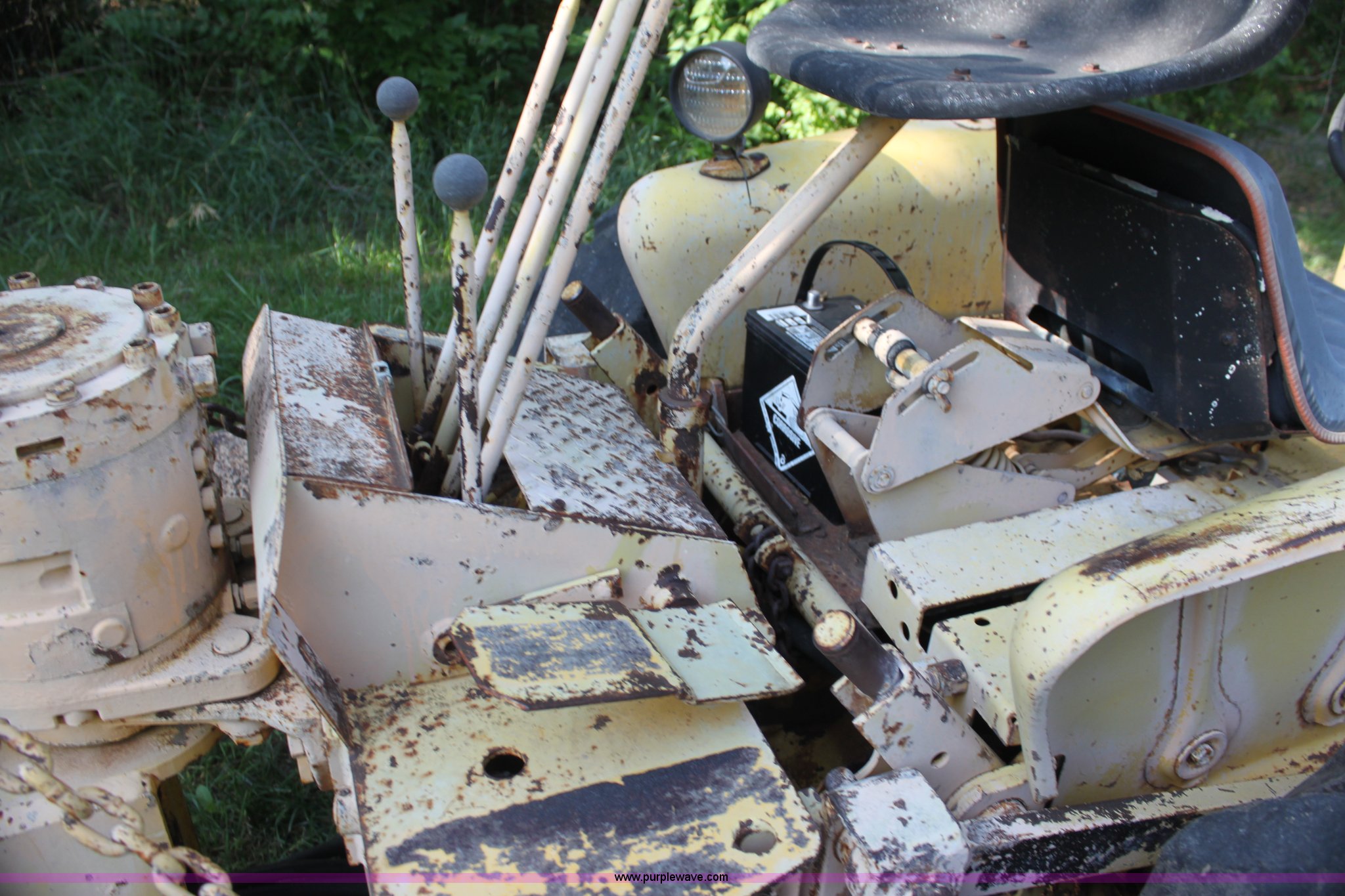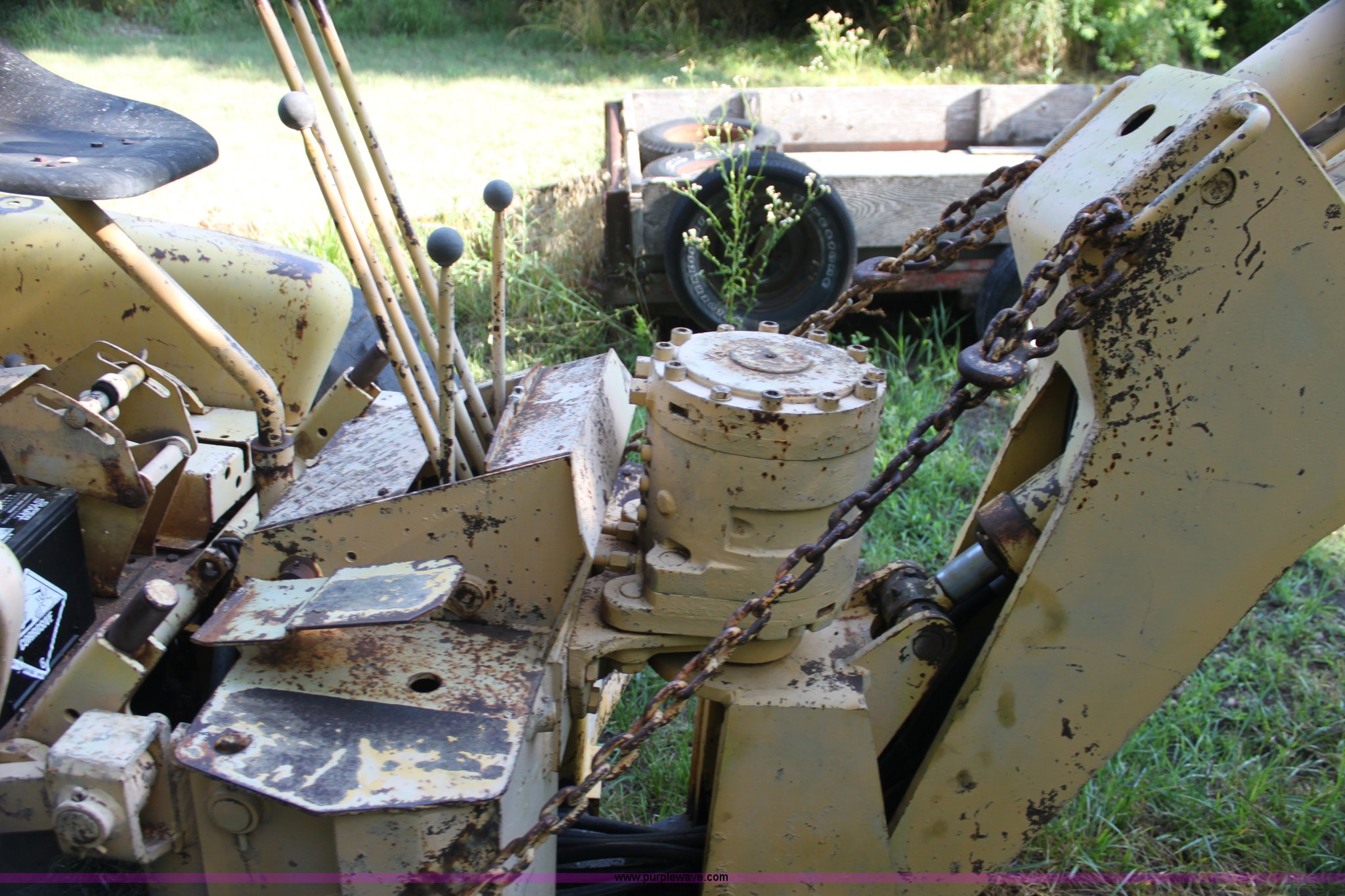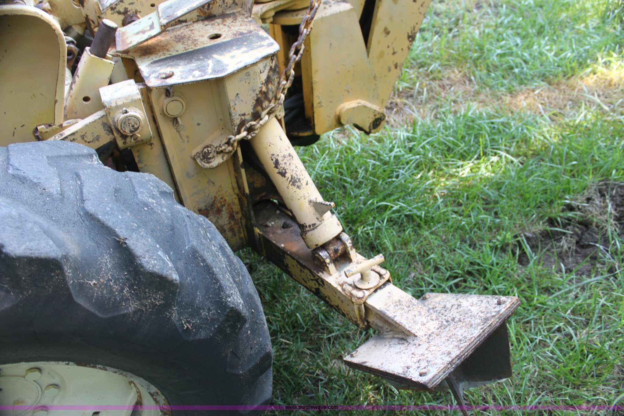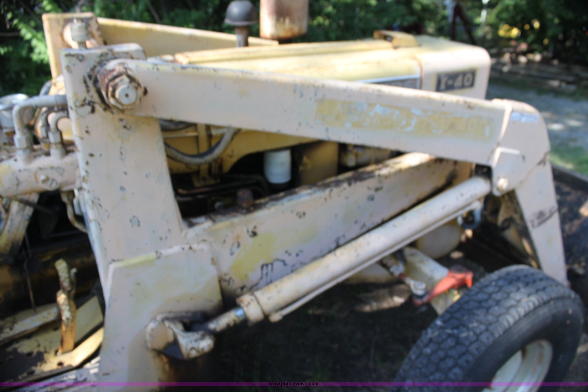Purple Wave is selling a used Tractor Loader Backhoe in Kansas. This item is a Allis Chalmers I40 backhoe loader with the following: 1,945 hours on meter, Four cylinder gas engine, 40 HP, Manual transmission, Power steering, I-400 loader, 66" bucket, Serial 6AL1499-E, I-400 backhoe, 17" four tooth bucket, Hydraulic outriggers, 235/85R16 front tires, 14.9-24 rear tires, Serial 1401194