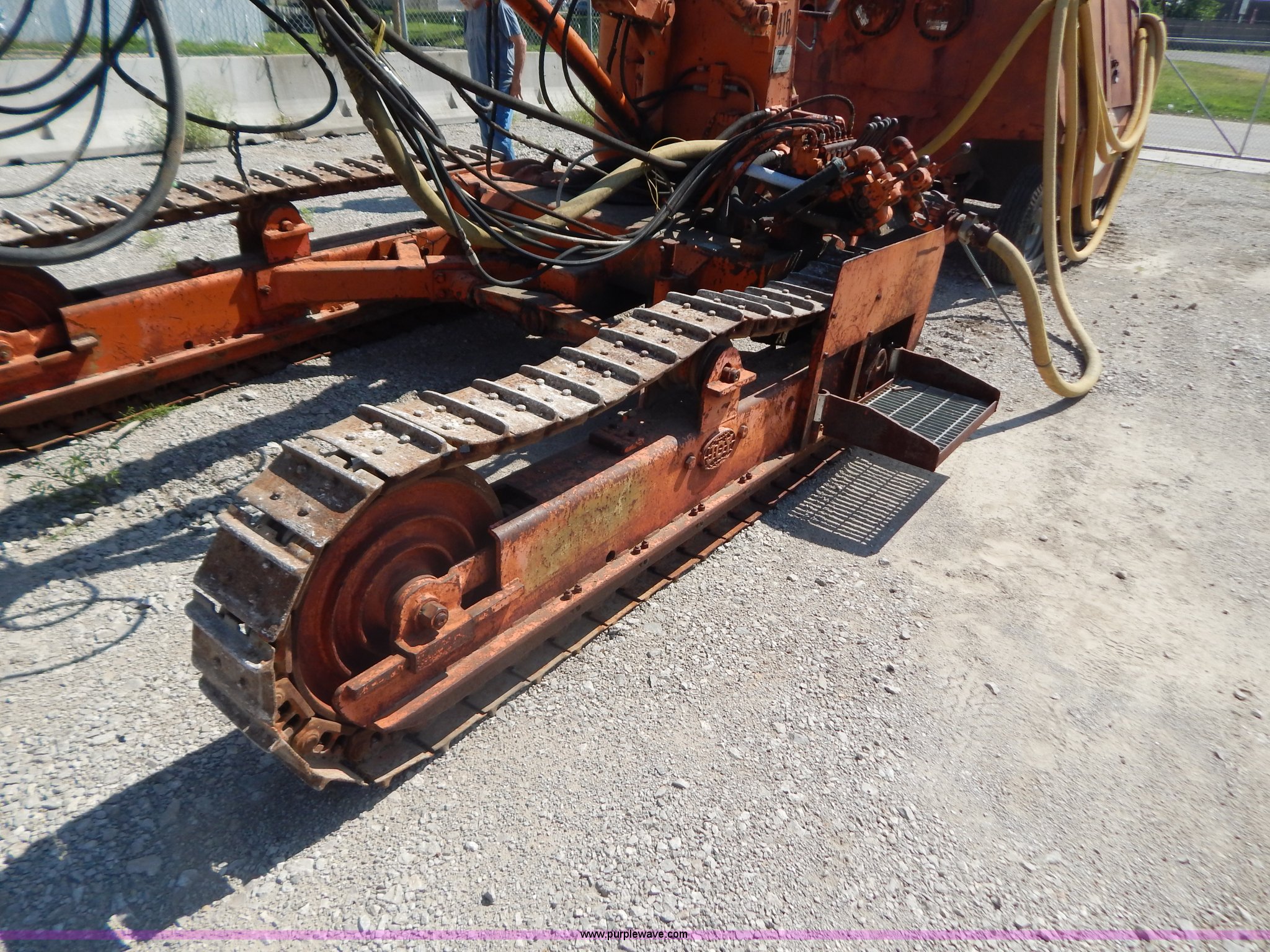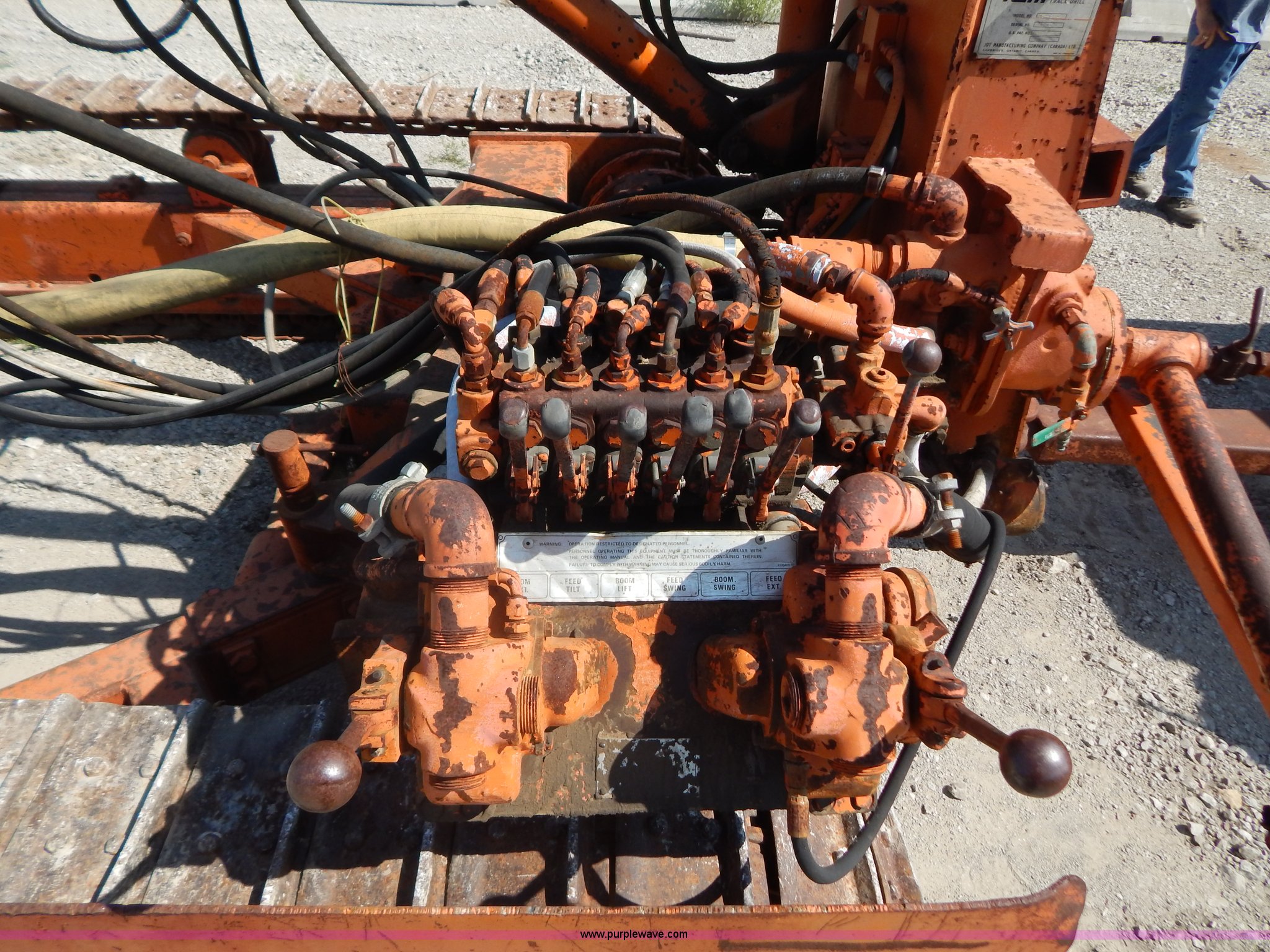 Purple Wave is selling a used Blasthole Drill in Kansas. This item is a Joy-Sullivan MS-4E-5 track drill and Joy air compressor with the following: MS-4E-5 track drill, 10"W single grouser tracks, Rear pin hitch, 20' boom, 16' rod installed, Serial 79016, Air compressor, 5,502 hours on rebuild, Caterpillar 3306B six cylinder turbo diesel engine, 850 cfm, 7.50-16 tires, Serial 134475