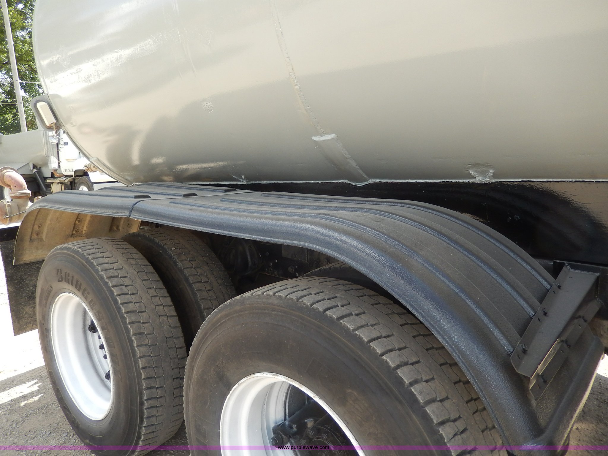 Purple Wave is selling a used Tank Truck or Water Truck in Kansas. This item is a 1984 International water truck with the following: 379,275 miles on odometer, International DT466 diesel engine, Eaton Fuller 13 speed manual transmission, Power divider lock, AC and heat, Manual windows and locks, Vinyl interior, 3,500 gallon tank, Underside storage box, Single rear exhaust stack, 50 gallon fuel tank, 50 gallon hydraulic oil tank, Rear and side sprayers, Overflow tube at front, Fill tube at rear, Low reduction unit, Pintle hitch, Spring suspension, Air brakes, 11R22.5 tires
