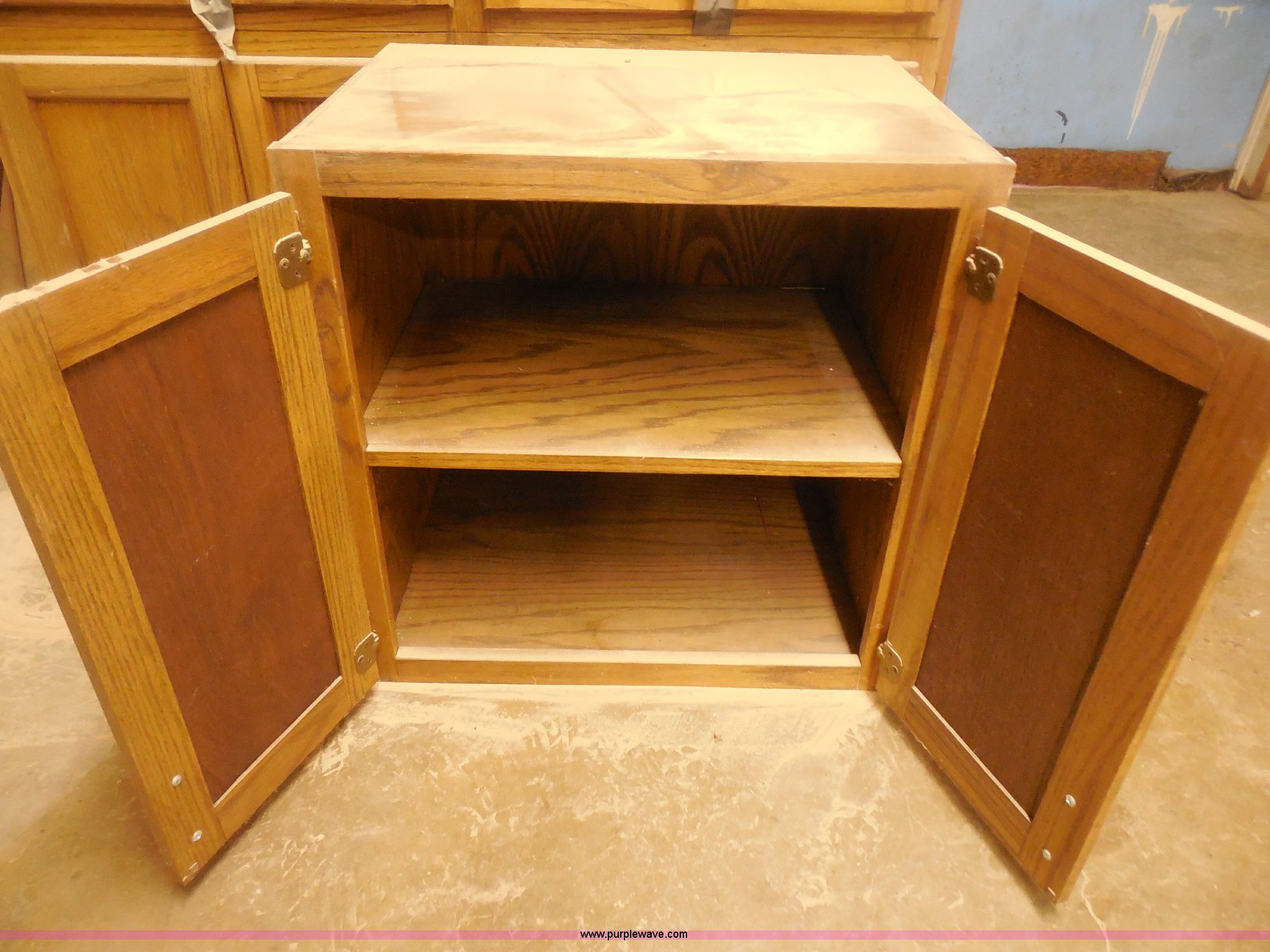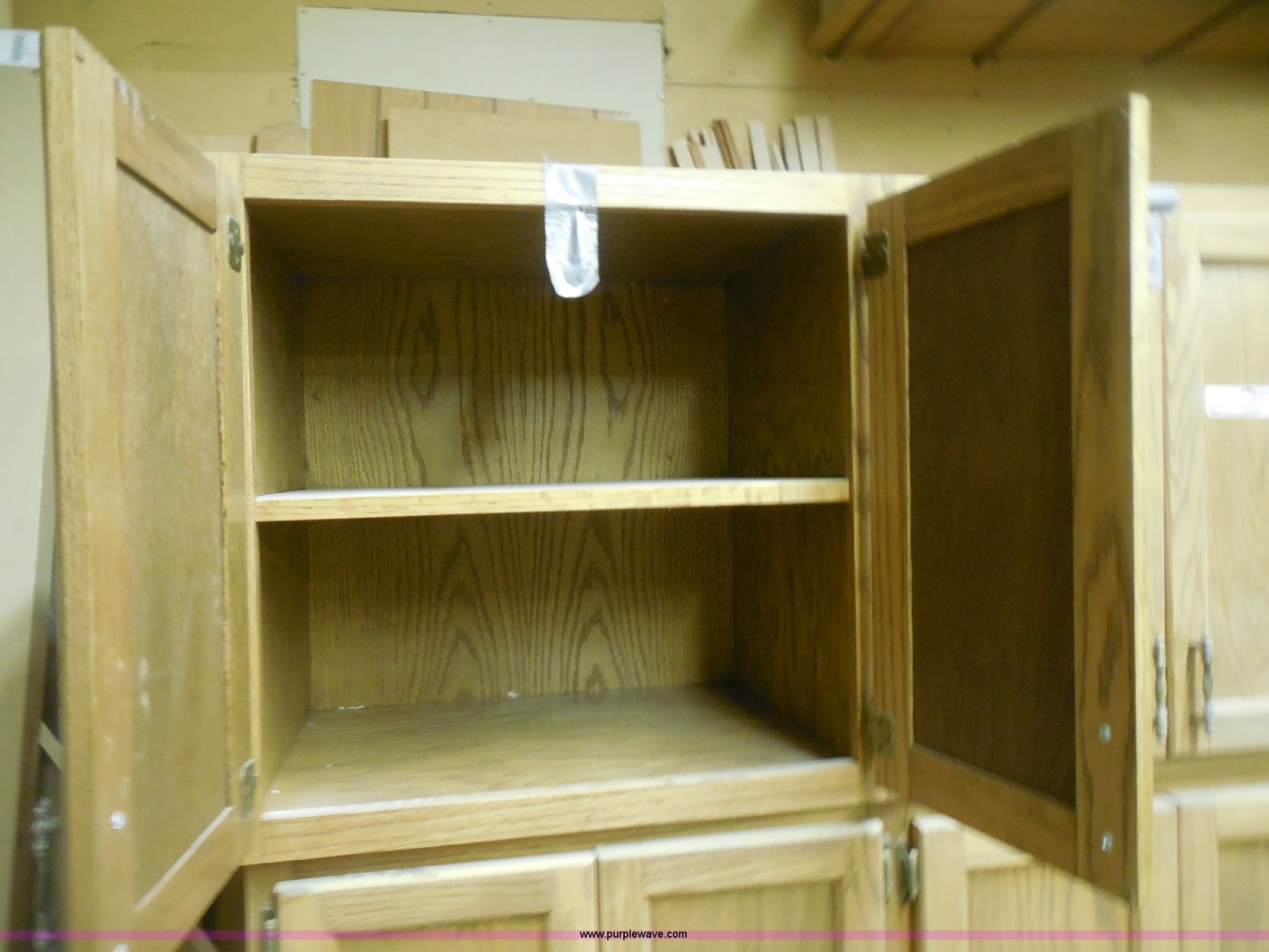 Purple Wave is selling a used Shelving and Storage in South Dakota. This item is a Wood cabinets with the following: (3) two cabinet sections, 4'L x 18"W x 2'H, Single cabinet section, 2'L x 18"W x 2'H