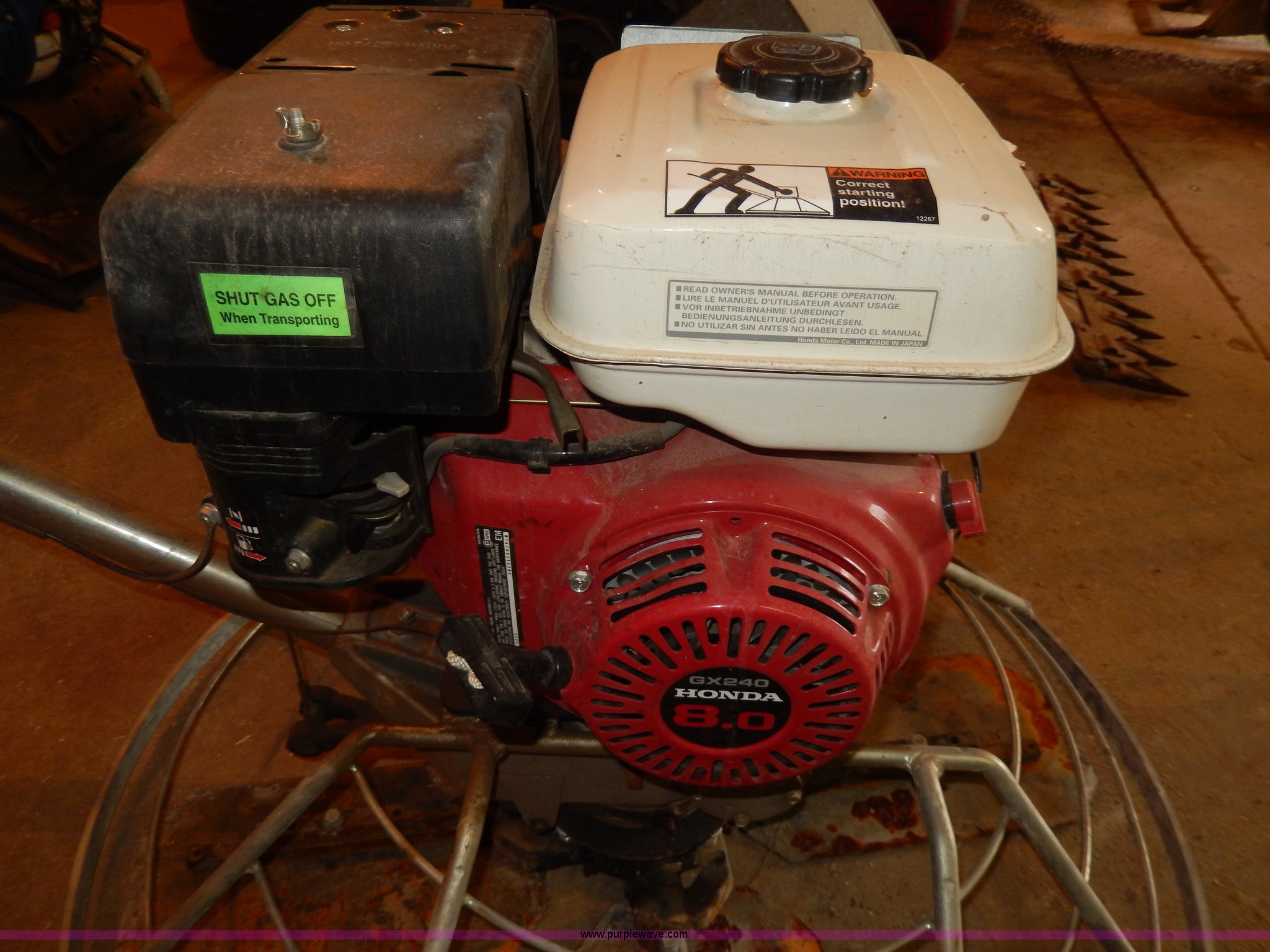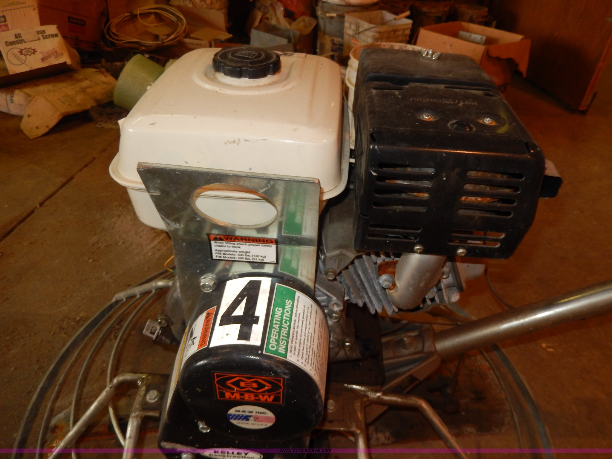 MBW power concrete trowel. Model F3614, Honda GX240 8 HP gas engine, 3'W, Serial 1727301. Shipping quotes available. Kelley Construction. 1812 E Dakota Avenue. Pierre, SD 57501