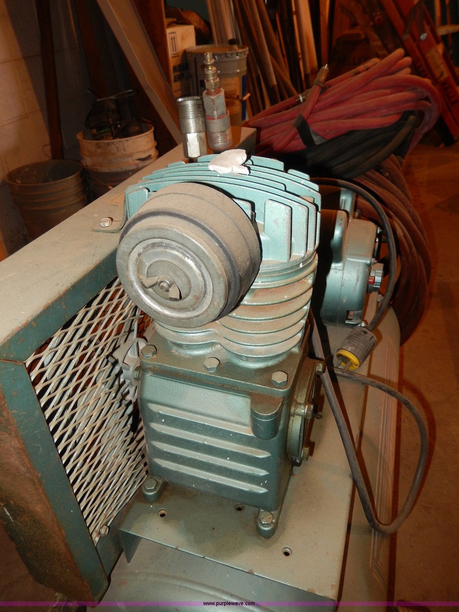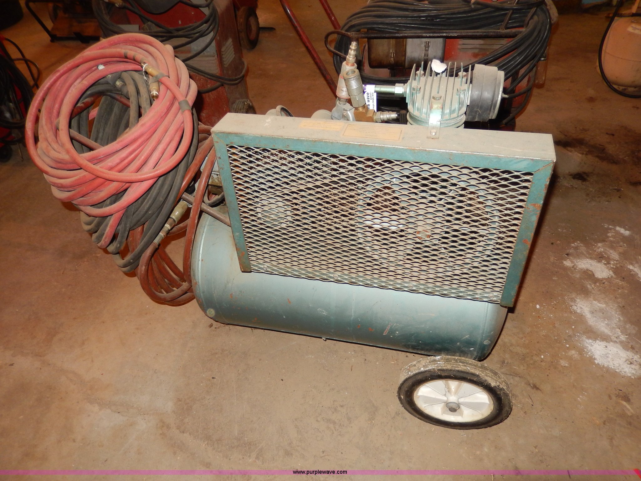 Purple Wave is selling a used Air Compressor in South Dakota. This item is a C-Aire custom built air compressor with the following: Model FK5131NC, Century 2 HP motor, Hose, Serial 8299