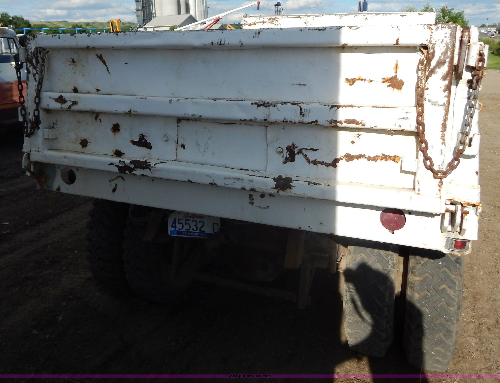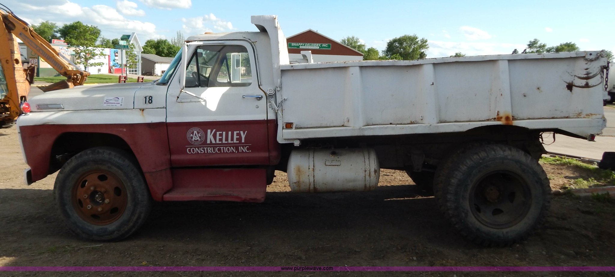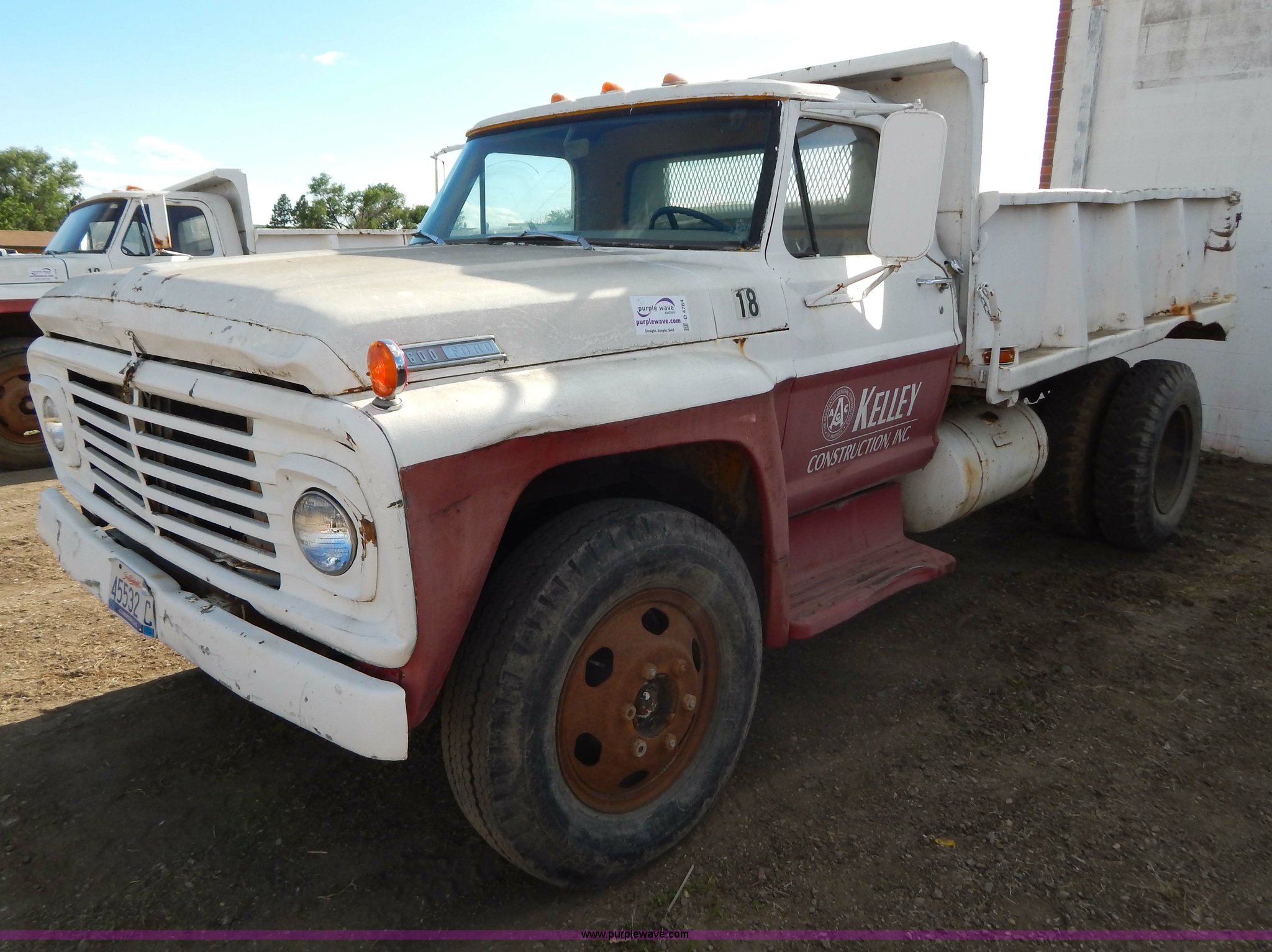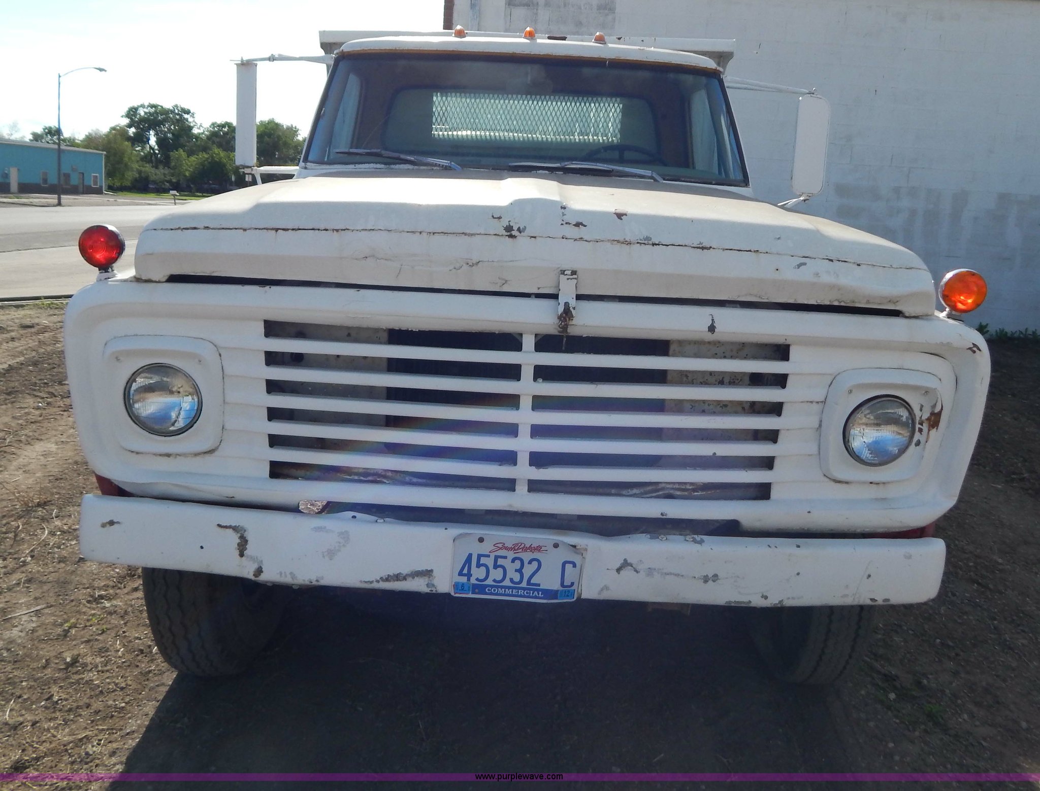 Purple Wave is selling a used Grain Truck in South Dakota. This item is a 1967 Ford 600 dump truck with the following: 54,588 miles on odometer, Eight cylinder gas engine, Five speed manual transmission, Two speed rear end, 10' x 7' bed, 28"H sides, Manual end gate, Pintle hitch, PTO, 156" wheelbase, 9.00-20 tires, GVWR 24,000 lbs, Interior/exterior cosmetic damage, Rust, Paint faded, No brakes