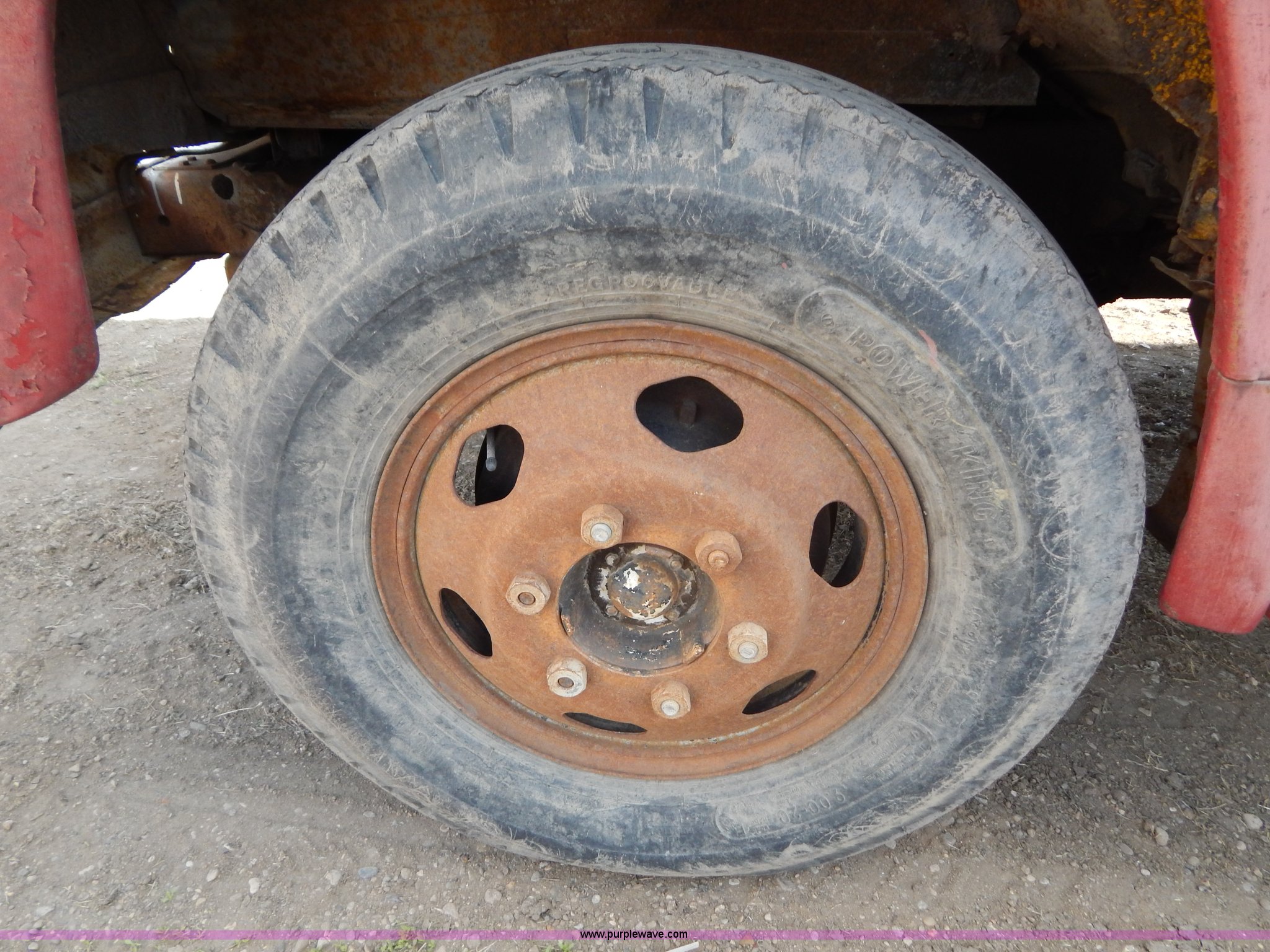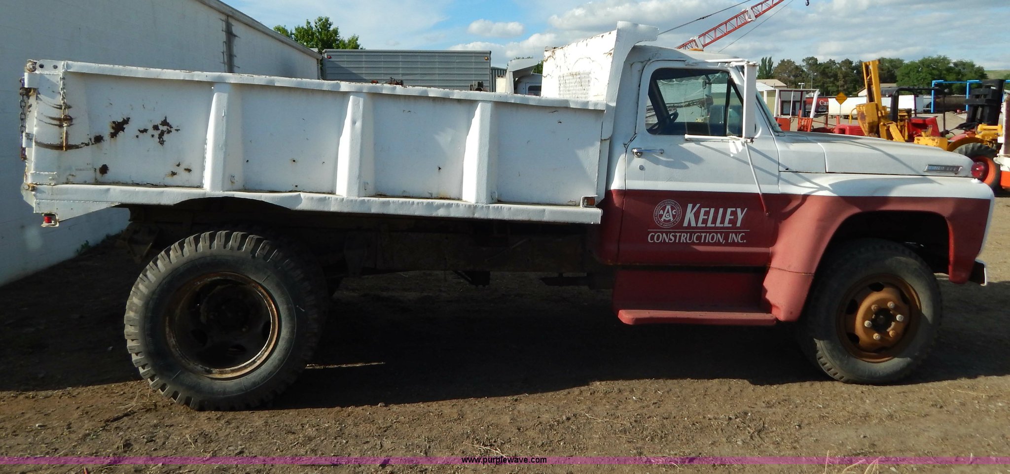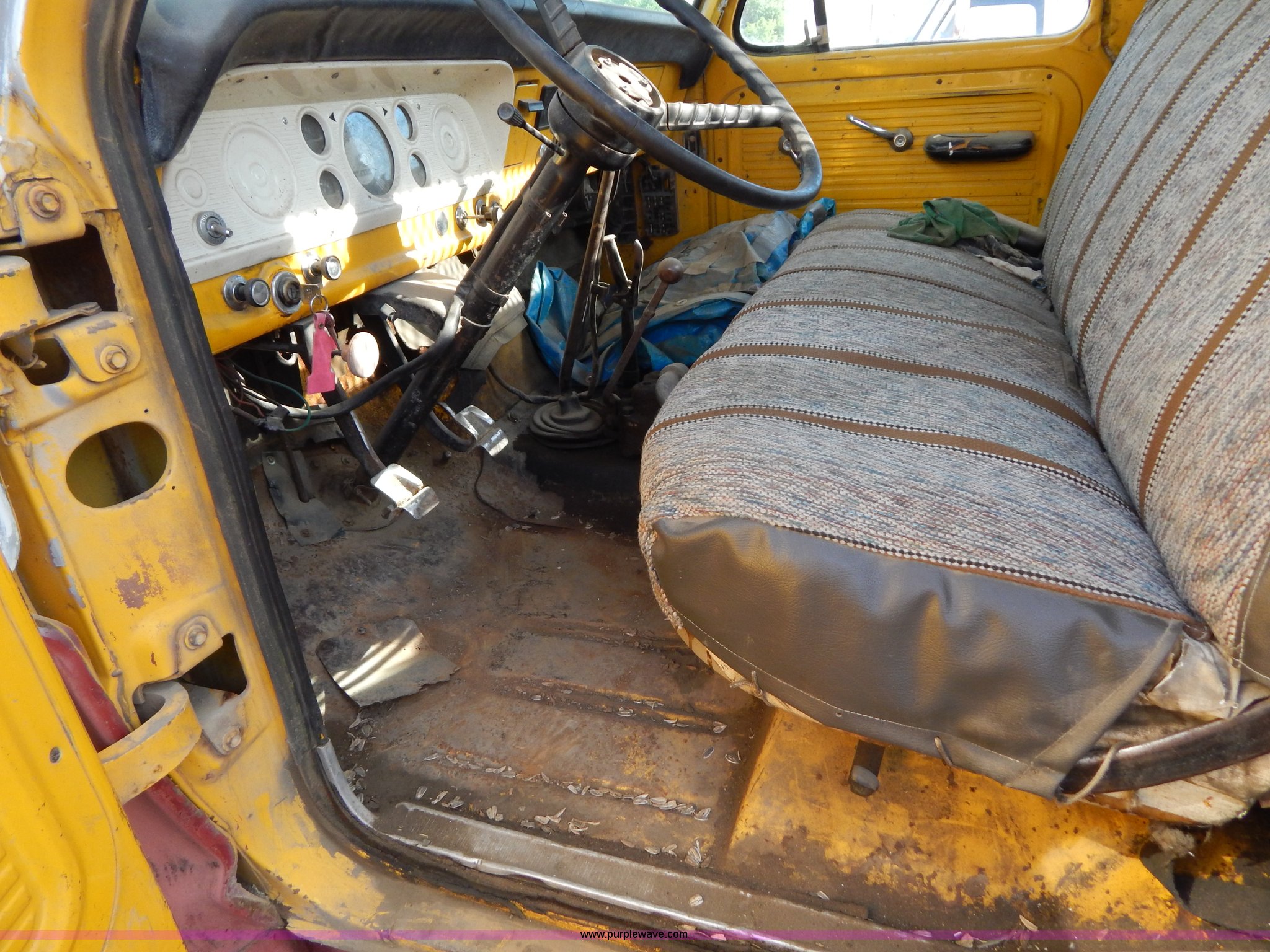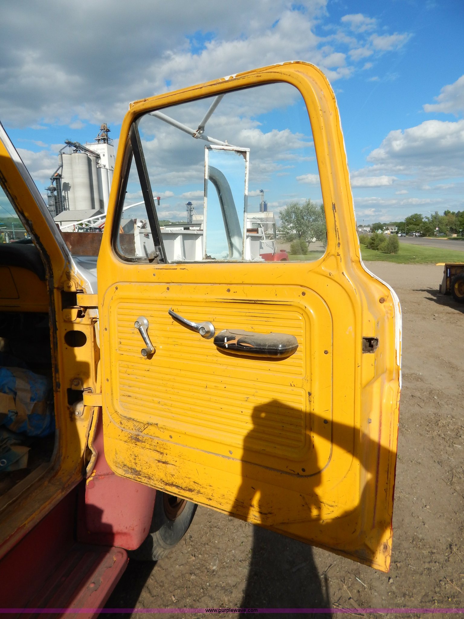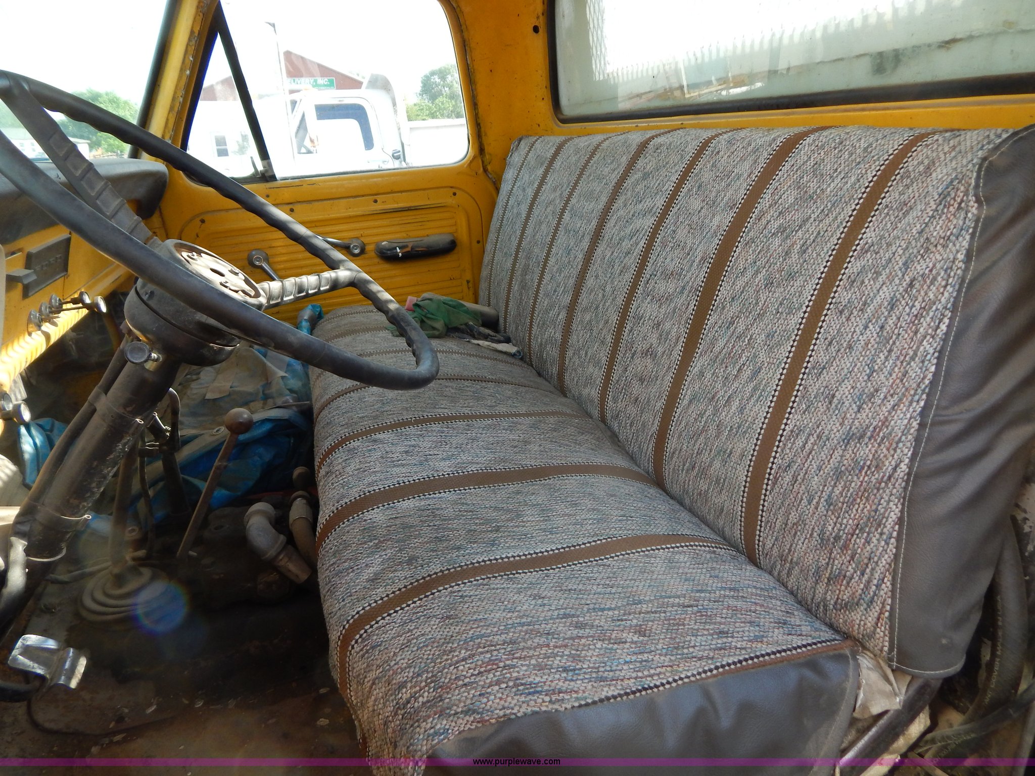 Purple Wave is selling a used Grain Truck in South Dakota. This item is a 1967 Ford 600 dump truck with the following: 54,588 miles on odometer, Eight cylinder gas engine, Five speed manual transmission, Two speed rear end, 10' x 7' bed, 28"H sides, Manual end gate, Pintle hitch, PTO, 156" wheelbase, 9.00-20 tires, GVWR 24,000 lbs, Interior/exterior cosmetic damage, Rust, Paint faded, No brakes