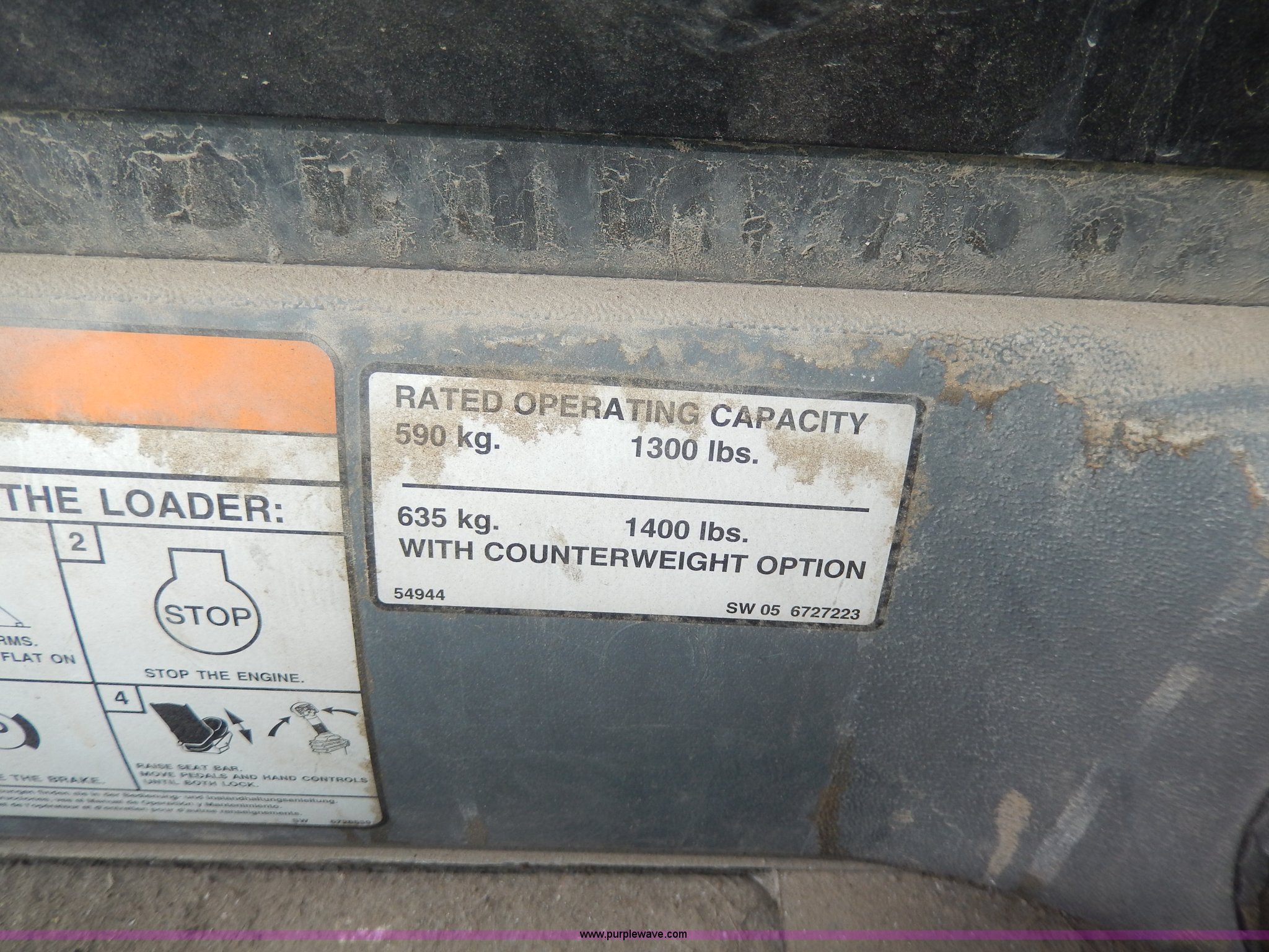 Purple Wave is selling a used Skid Steer Loader in South Dakota. This item is a 2006 Bobcat S130 skid steer with the following: 932 hours on meter, Kubota diesel engine, Model V2203, 46 HP, Serial 05S2761, Enclosed cab, Heat, No air conditioning, Seat bar, Front work lights, Front windshield wipers, Foot and hand controls, Traction lock over ride, Auxiliary hydraulics, 61" x 33" x 20" smooth edge bucket, Bolts for teeth, 13.3 gallon fuel tank, 7.3 mph travel speed, 10-16.5 tires, 1,300 lbs. base operating weight, 2,744 lbs tipping load, Serial 529211575