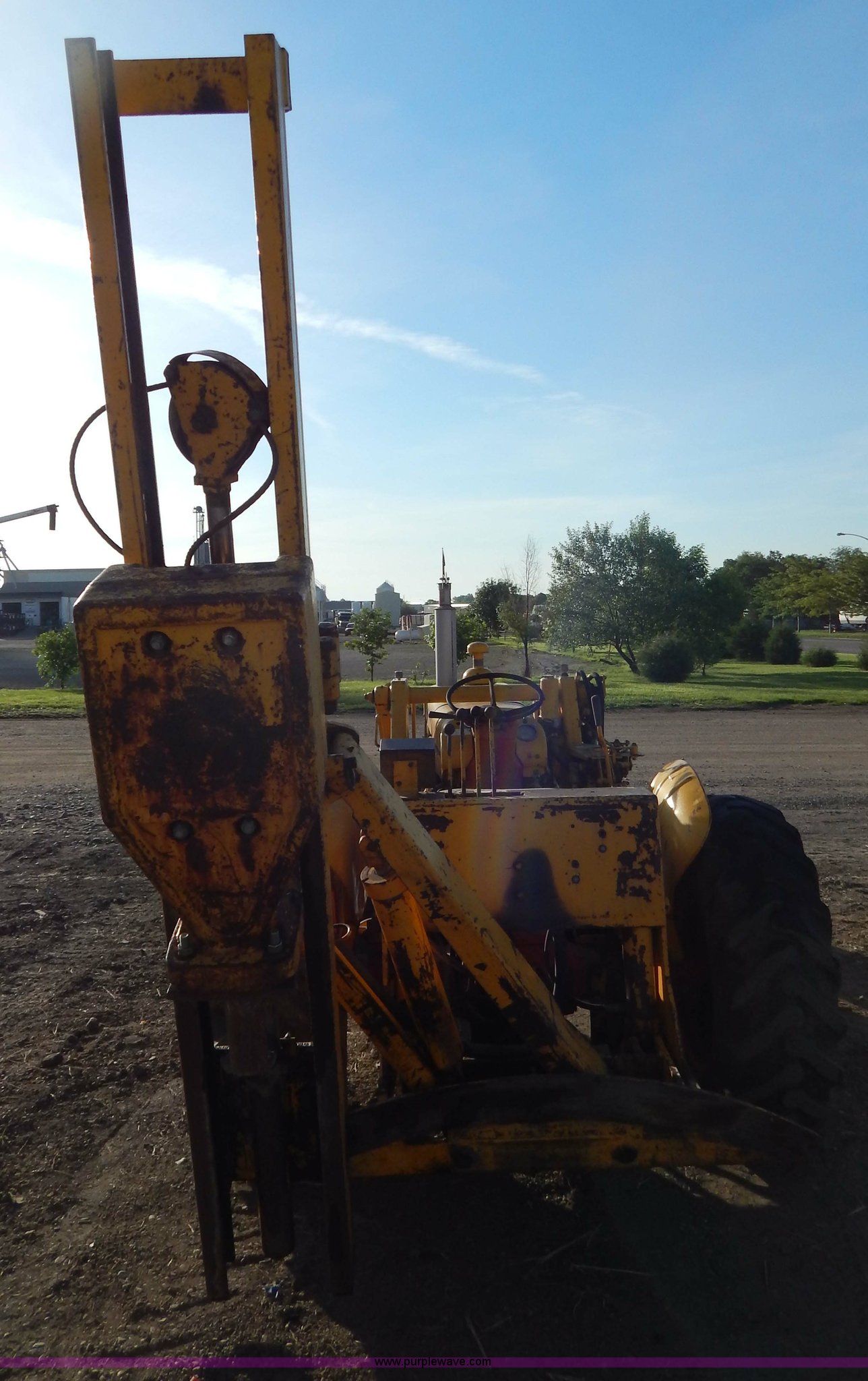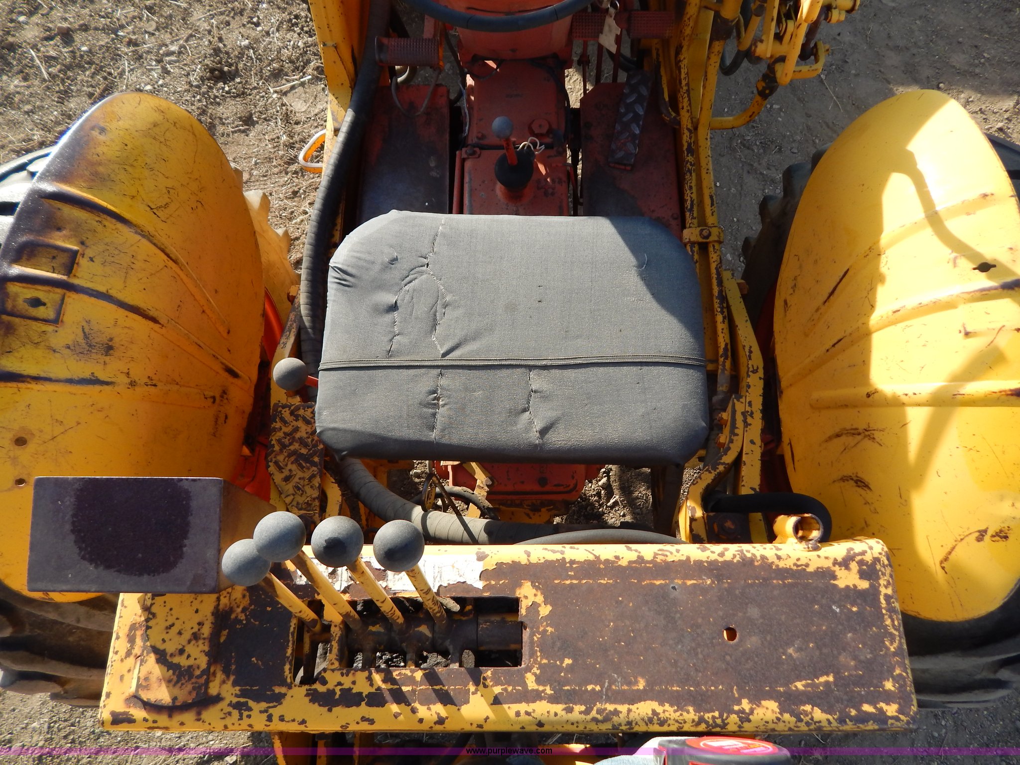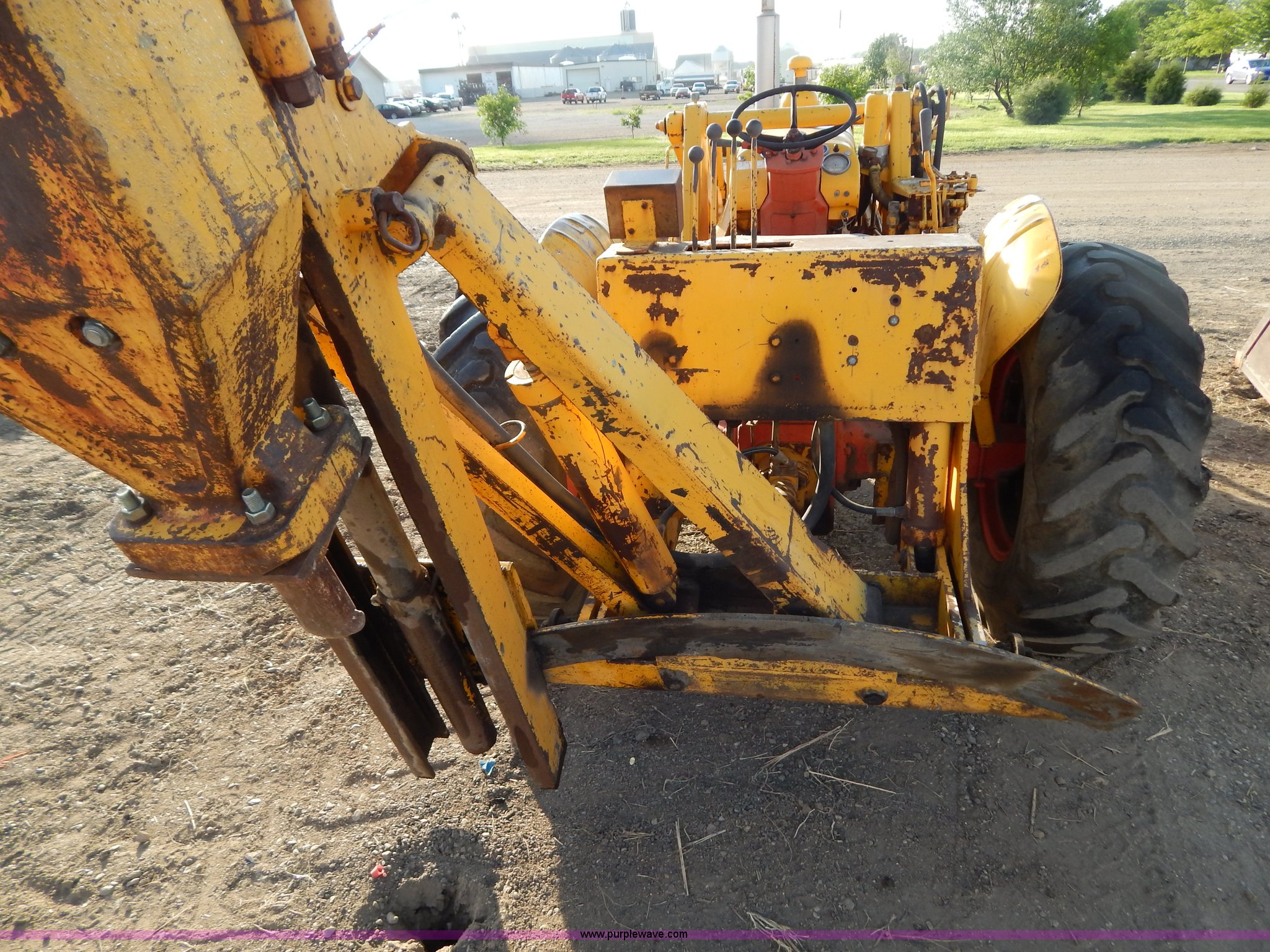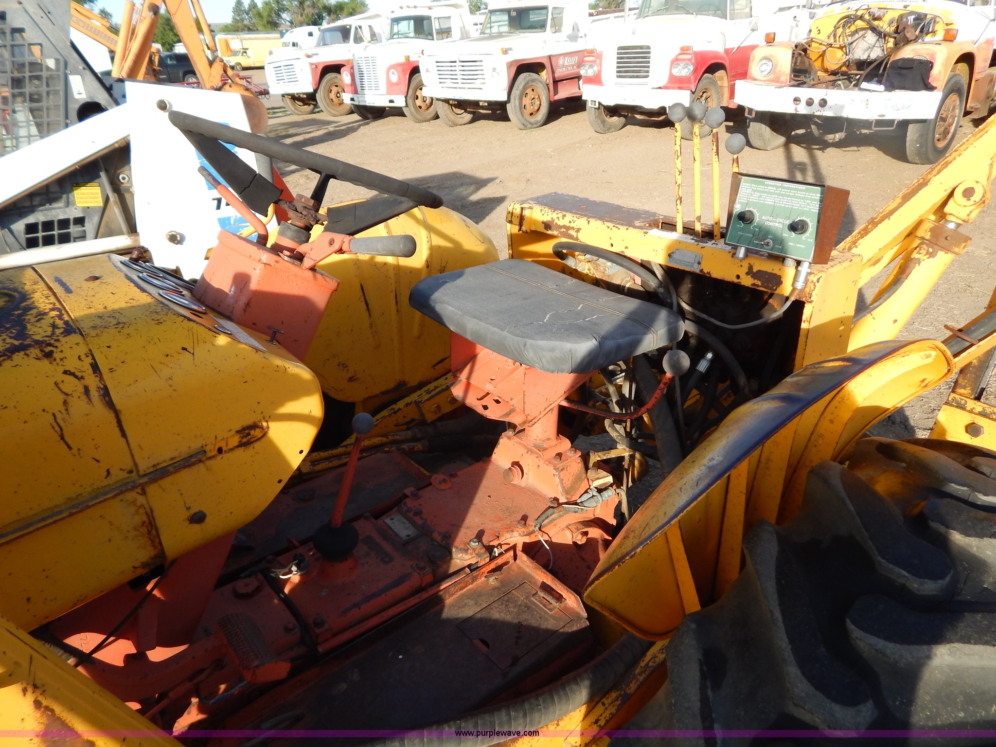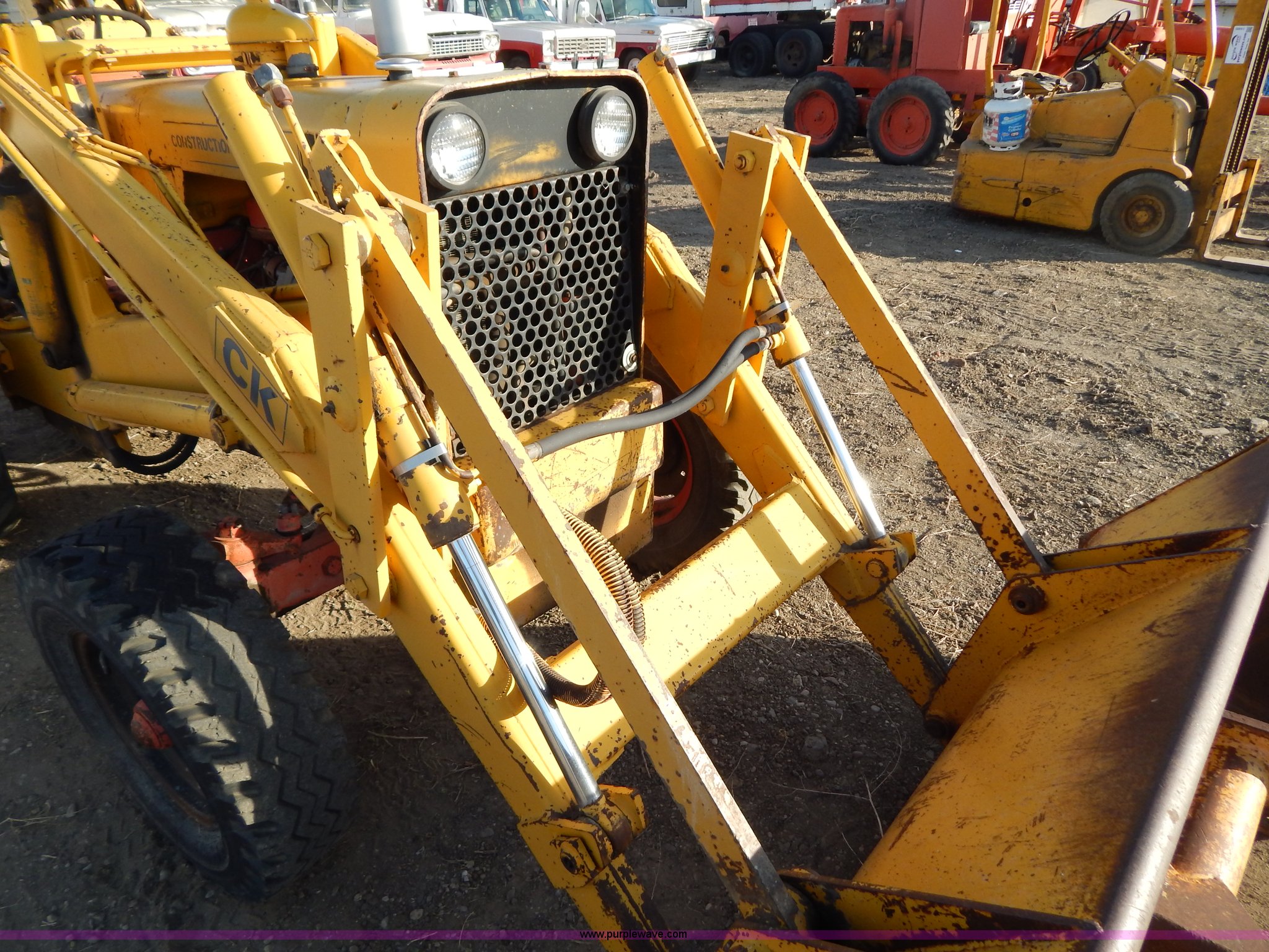 Purple Wave is selling a used Tractor in South Dakota. This item is a 1970 Case 580 Construction King tractor with the following: Four cylinder gas engine, Model G159B, 5F-1R gears, Hammer attachment, Serial 4155580, Auxiliary hydraulics, Lever controls, Height adjustment, Manual or automatic, (2) hammers, Construction King 33 loader, 78.5" x 32" x 30" smooth edge bucket, Serial 4199925, 7.50-16 front tires, 14.9-24 rear tires, 5,175 lbs. base operating weight, Battery dead, Hour meter inoperable, Serial 8659301