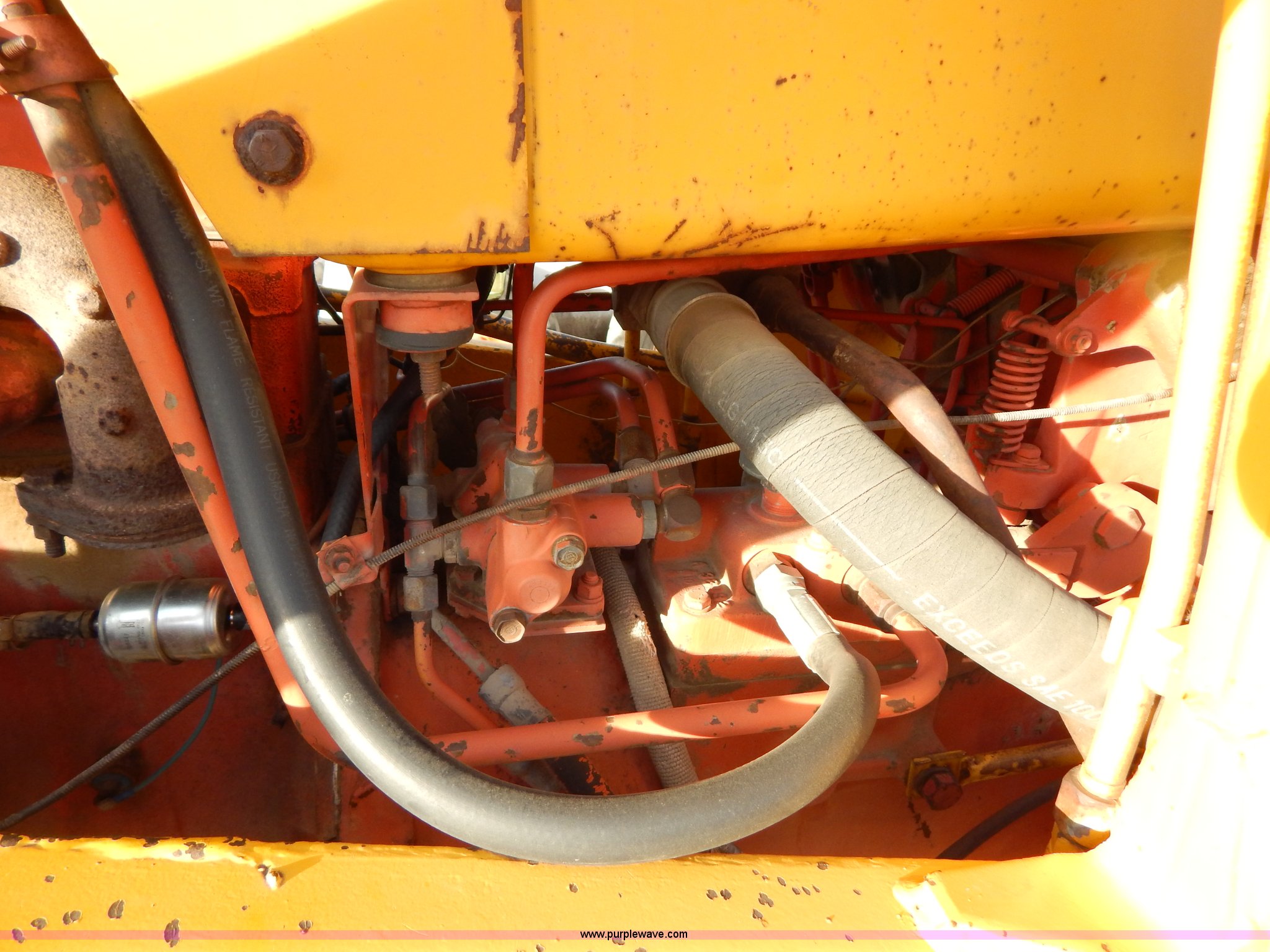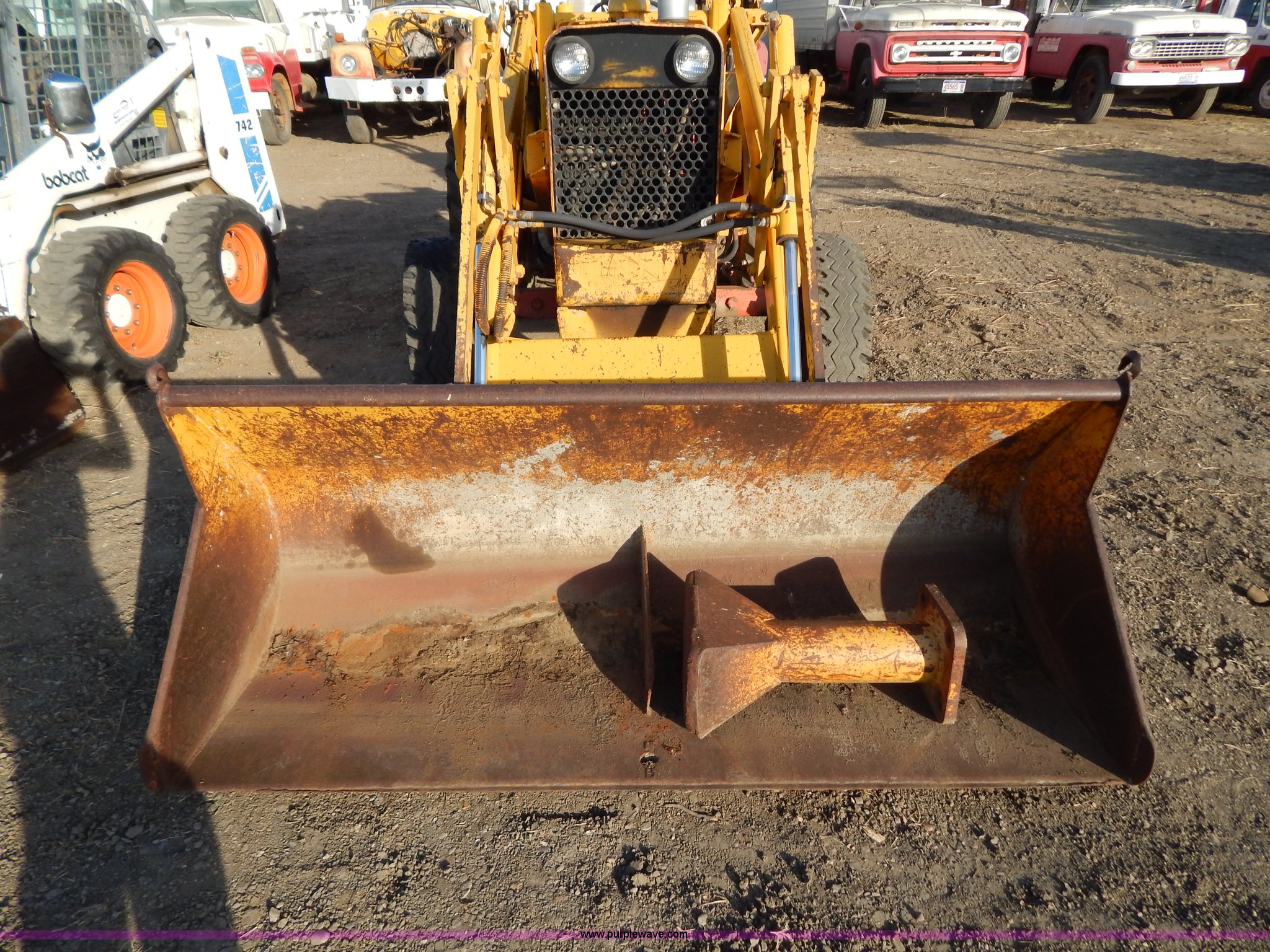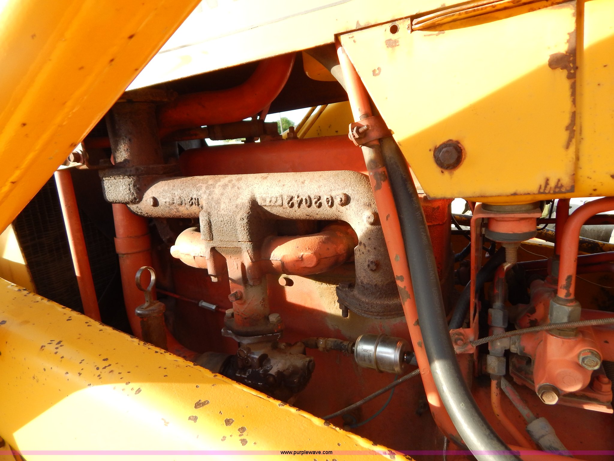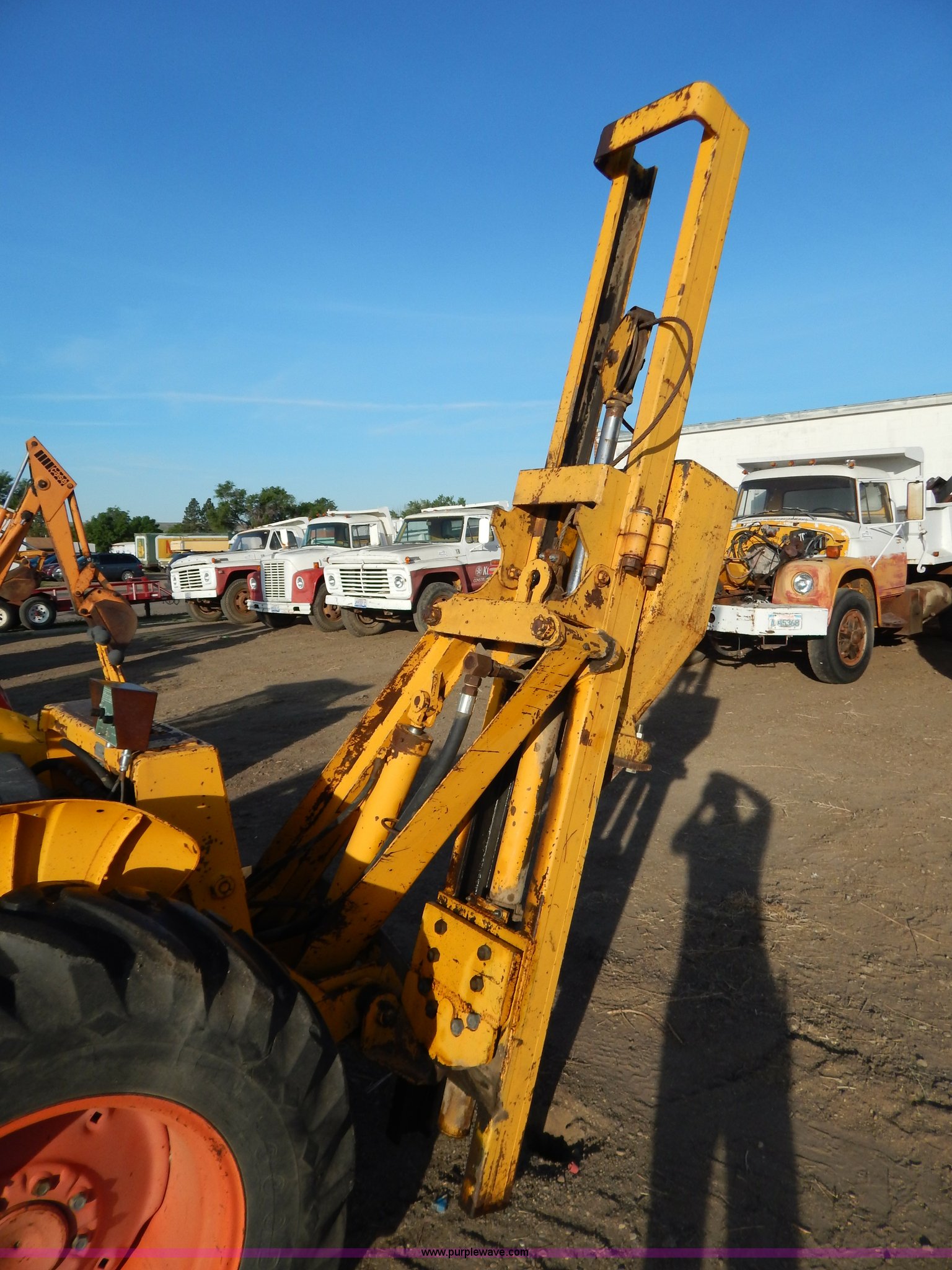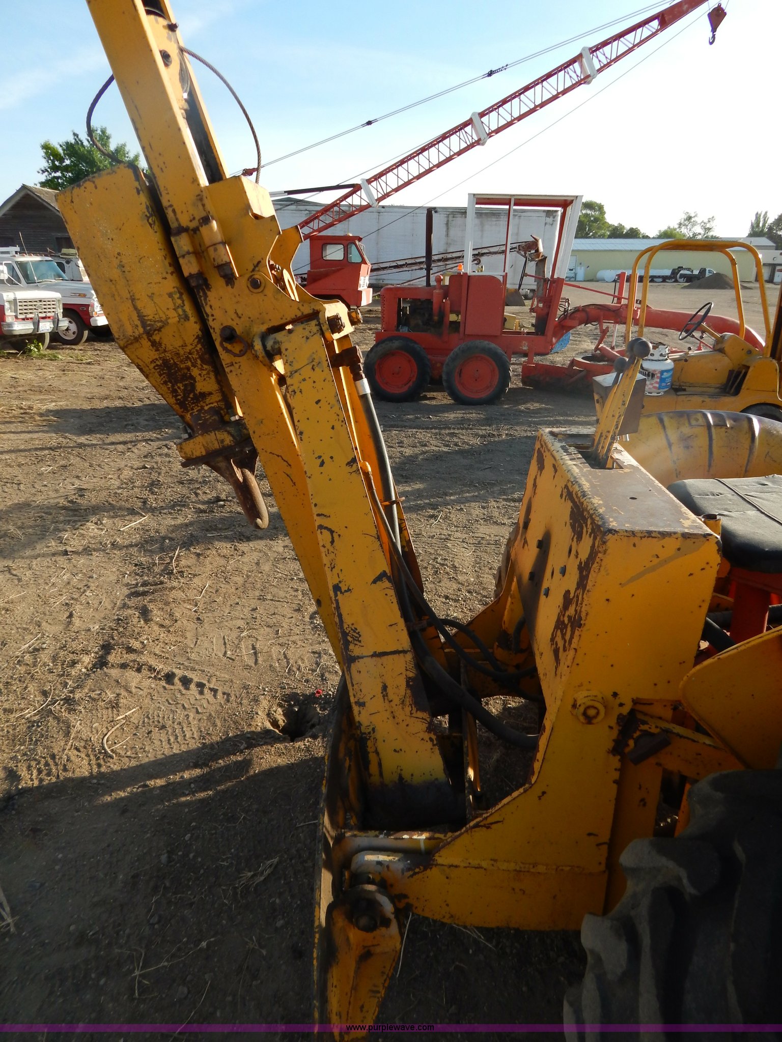 Purple Wave is selling a used Tractor in South Dakota. This item is a 1970 Case 580 Construction King tractor with the following: Four cylinder gas engine, Model G159B, 5F-1R gears, Hammer attachment, Serial 4155580, Auxiliary hydraulics, Lever controls, Height adjustment, Manual or automatic, (2) hammers, Construction King 33 loader, 78.5" x 32" x 30" smooth edge bucket, Serial 4199925, 7.50-16 front tires, 14.9-24 rear tires, 5,175 lbs. base operating weight, Battery dead, Hour meter inoperable, Serial 8659301