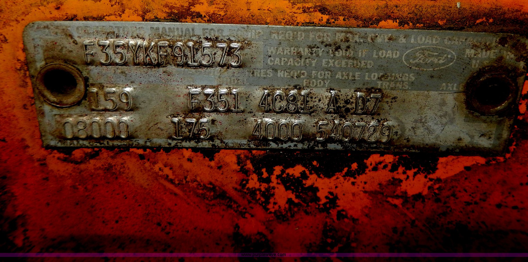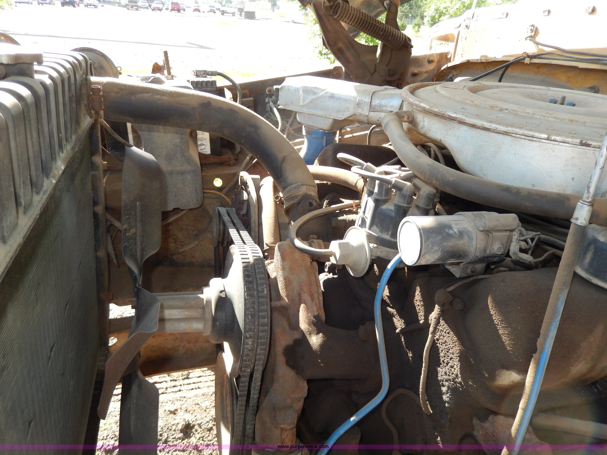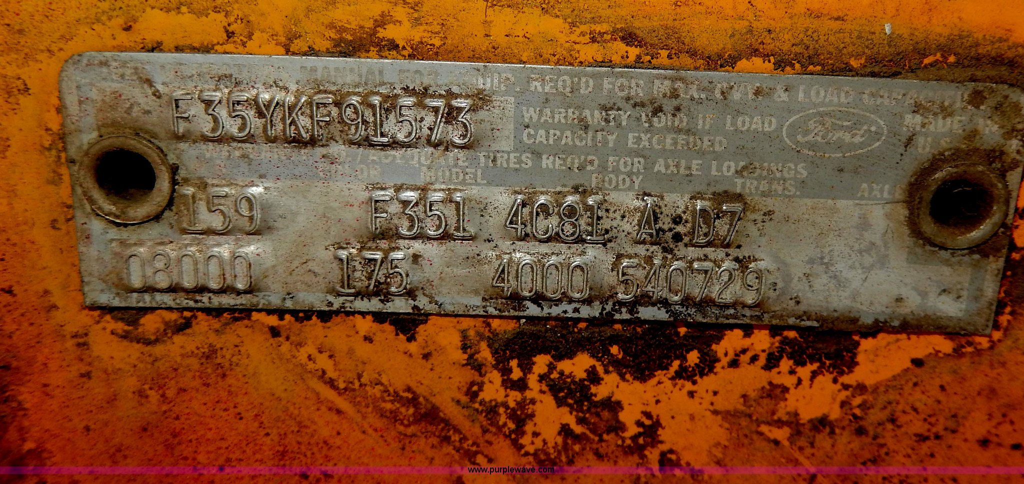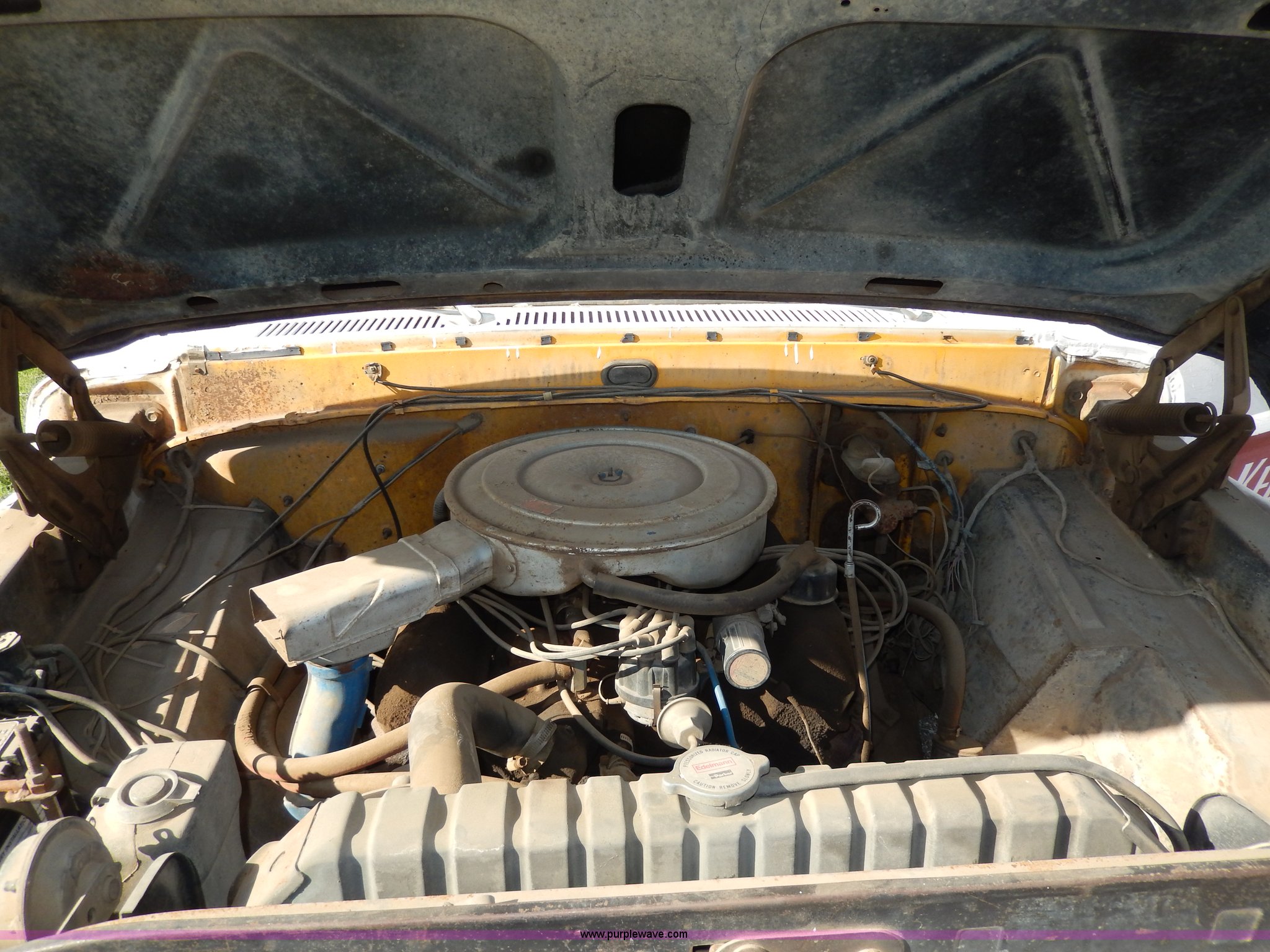 Purple Wave is selling a used Passenger Vehicle in South Dakota. This item is a 1969 Ford F350 pickup truck with the following: 82,459 miles on odometer, Eight cylinder gas engine, Four speed manual transmission, Heat, AM/FM, Manual windows and locks, 12' x 7' long bed, Ball hitch, 8R17.5 tires, Interior/exterior cosmetic damage, Paint chipped, Cracked windshield
