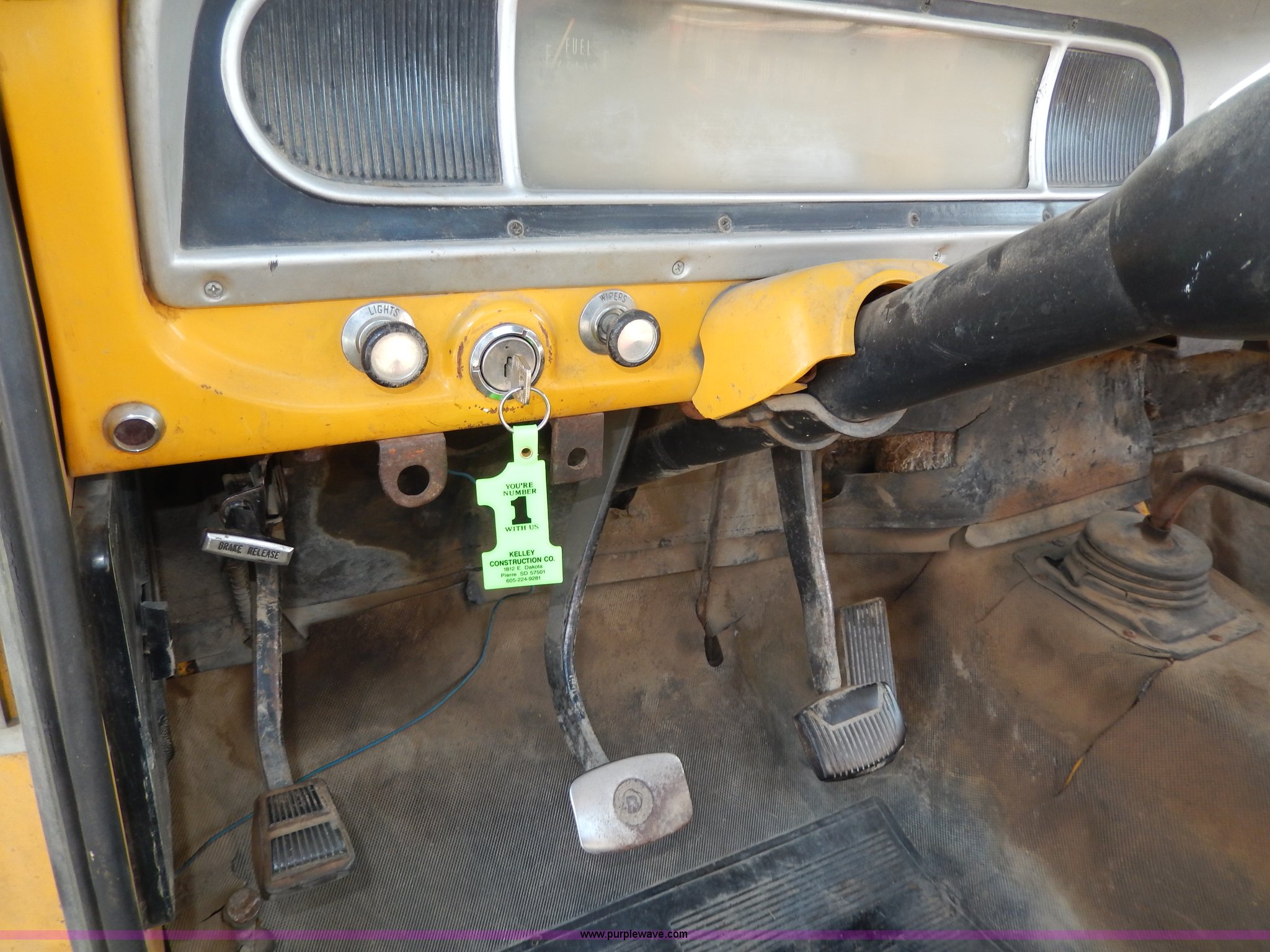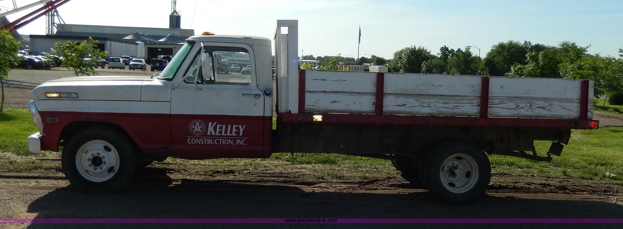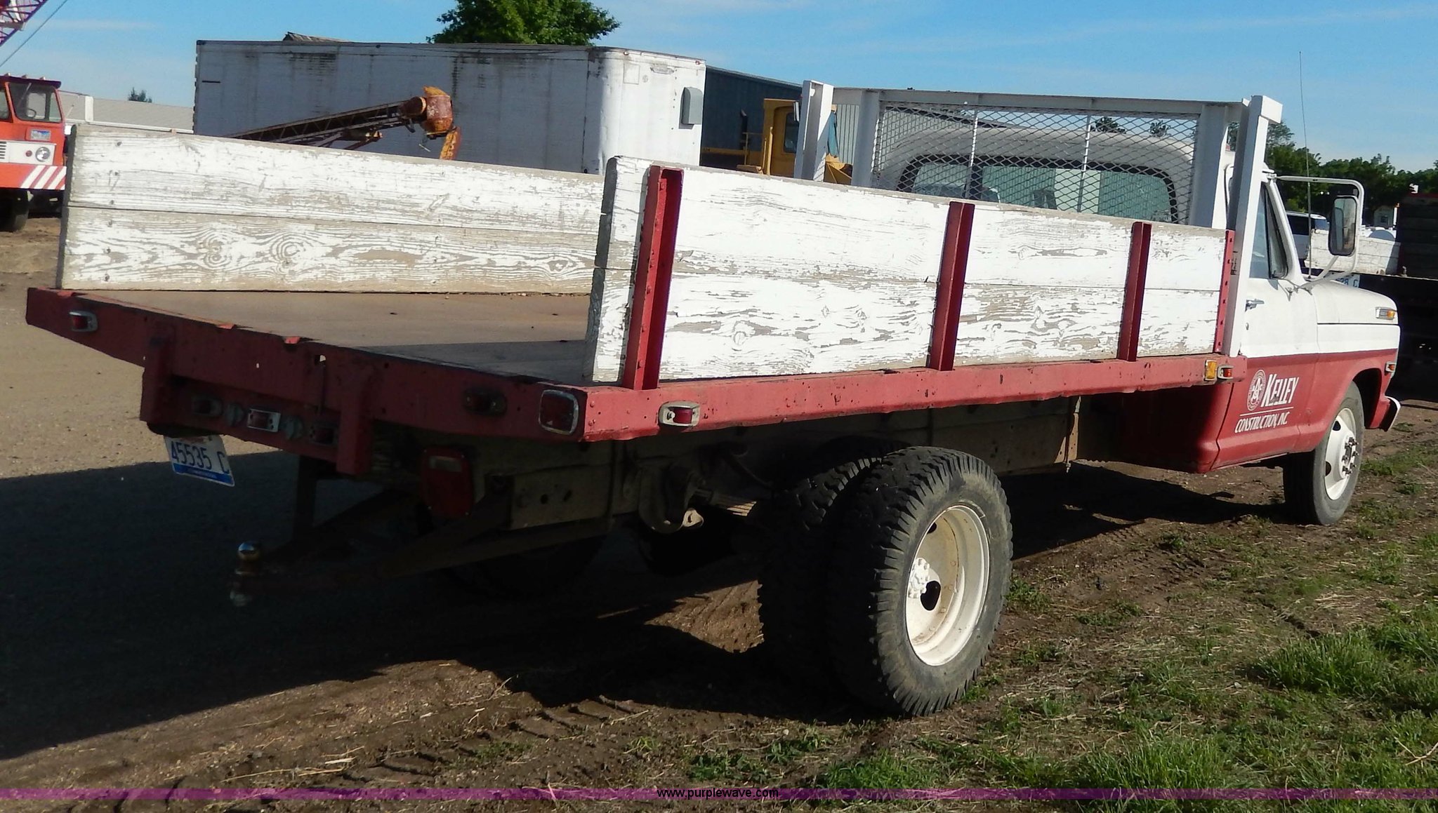1969 Ford F350 pickup truck. 82,459 miles on odometer, Eight cylinder gas engine, Four speed manual transmission, Heat, AM/FM, Manual windows and locks, 12' x 7' long bed, Ball hitch, 8R17.5 tires, Interior/exterior cosmetic damage, Paint chipped, Cracked windshield. F35YKF91573. Shipping quotes available. Kelley Construction. 1812 E Dakota Avenue. Pierre, SD 57501