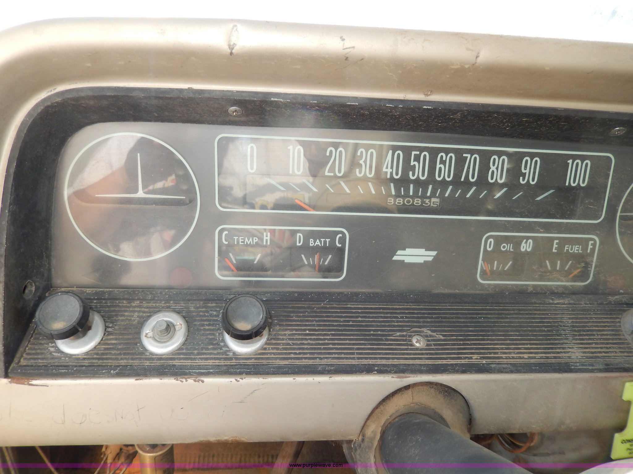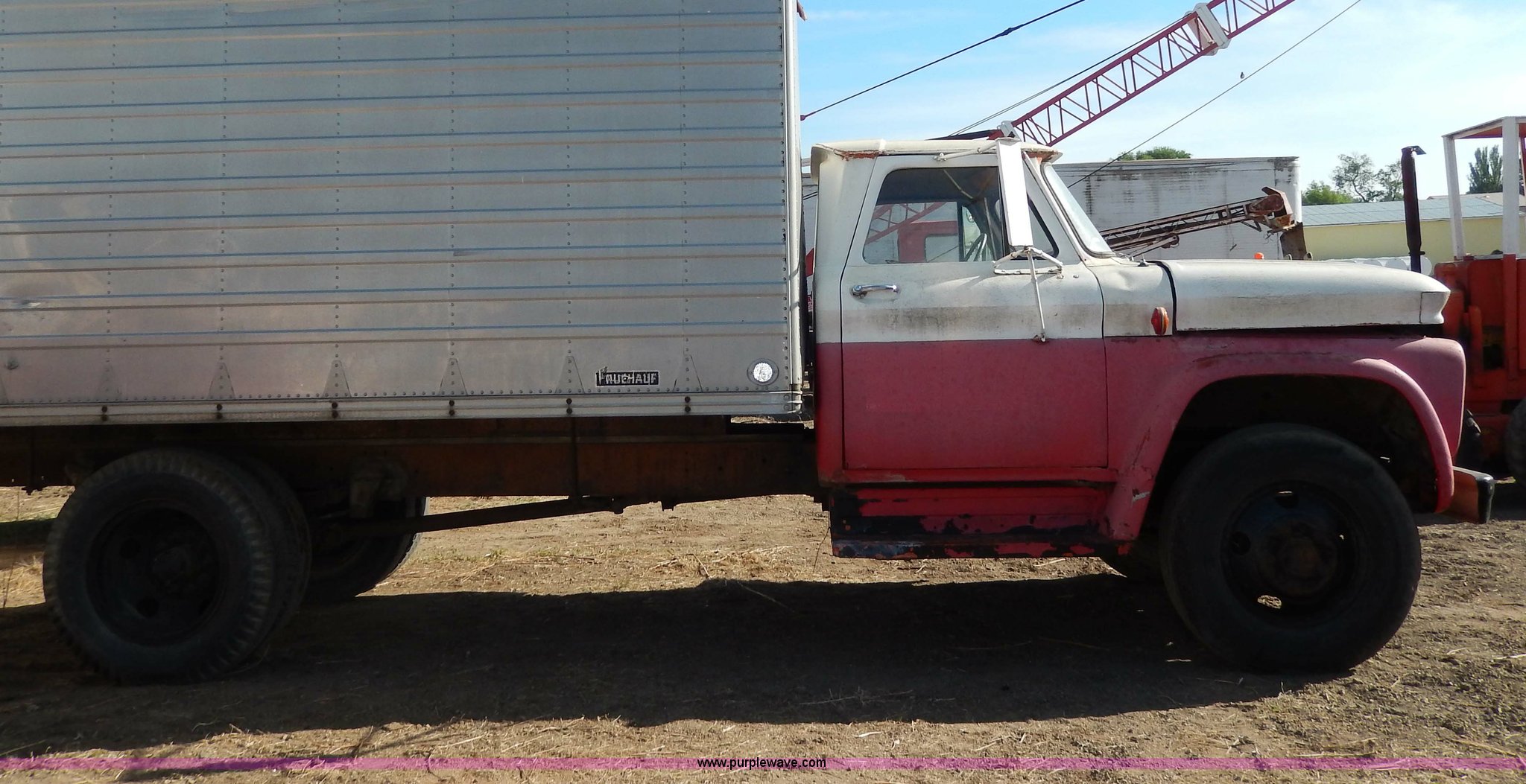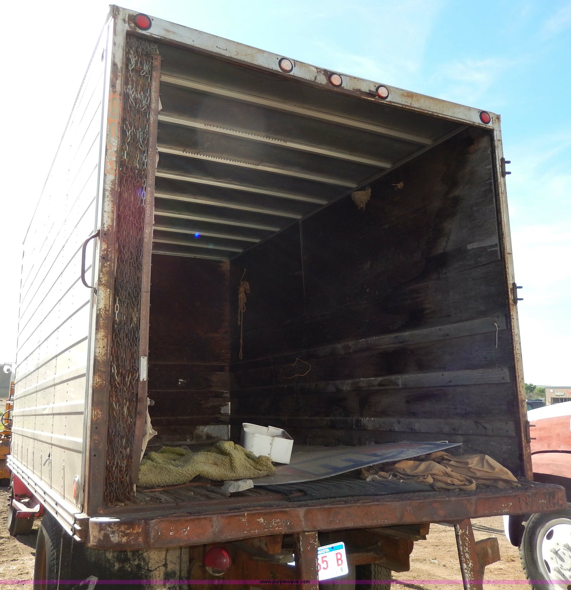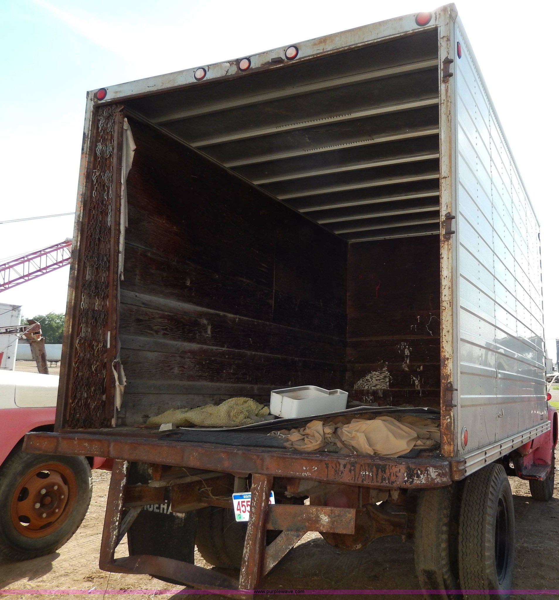 Purple Wave is selling a used Box Truck in South Dakota. This item is a 1964 Chevrolet box truck with the following: 88,083 miles on odometer, Six cylinder gas engine, Four speed manual transmission, Fruehauf 14' x 7' x 8' box, Sliding chain door, 9.00-20 tires, GVWR 19,500 lbs, Interior/exterior cosmetic damage, Rust, Paint faded, Dead battery, No brakes, Box has wood floor damage