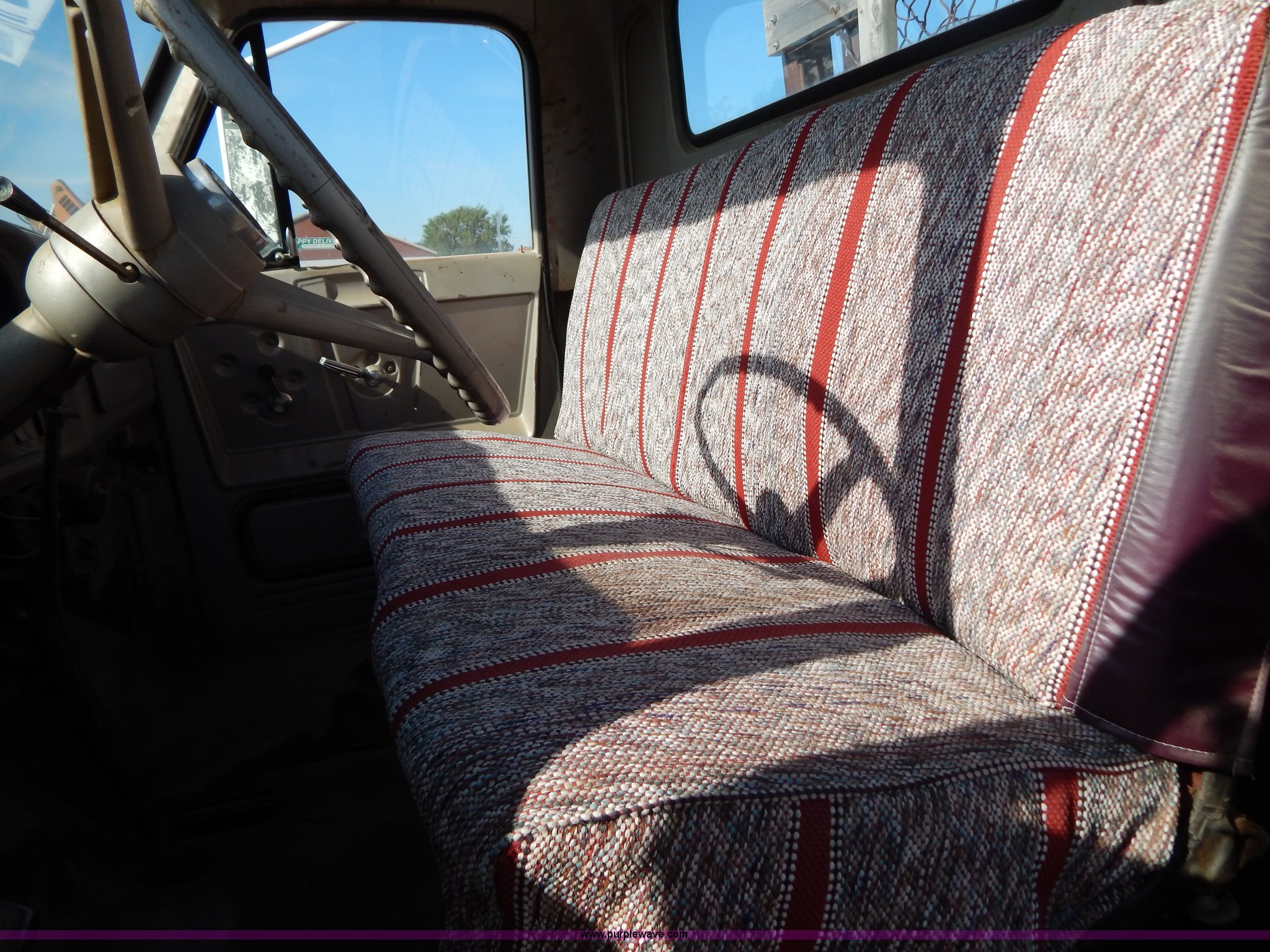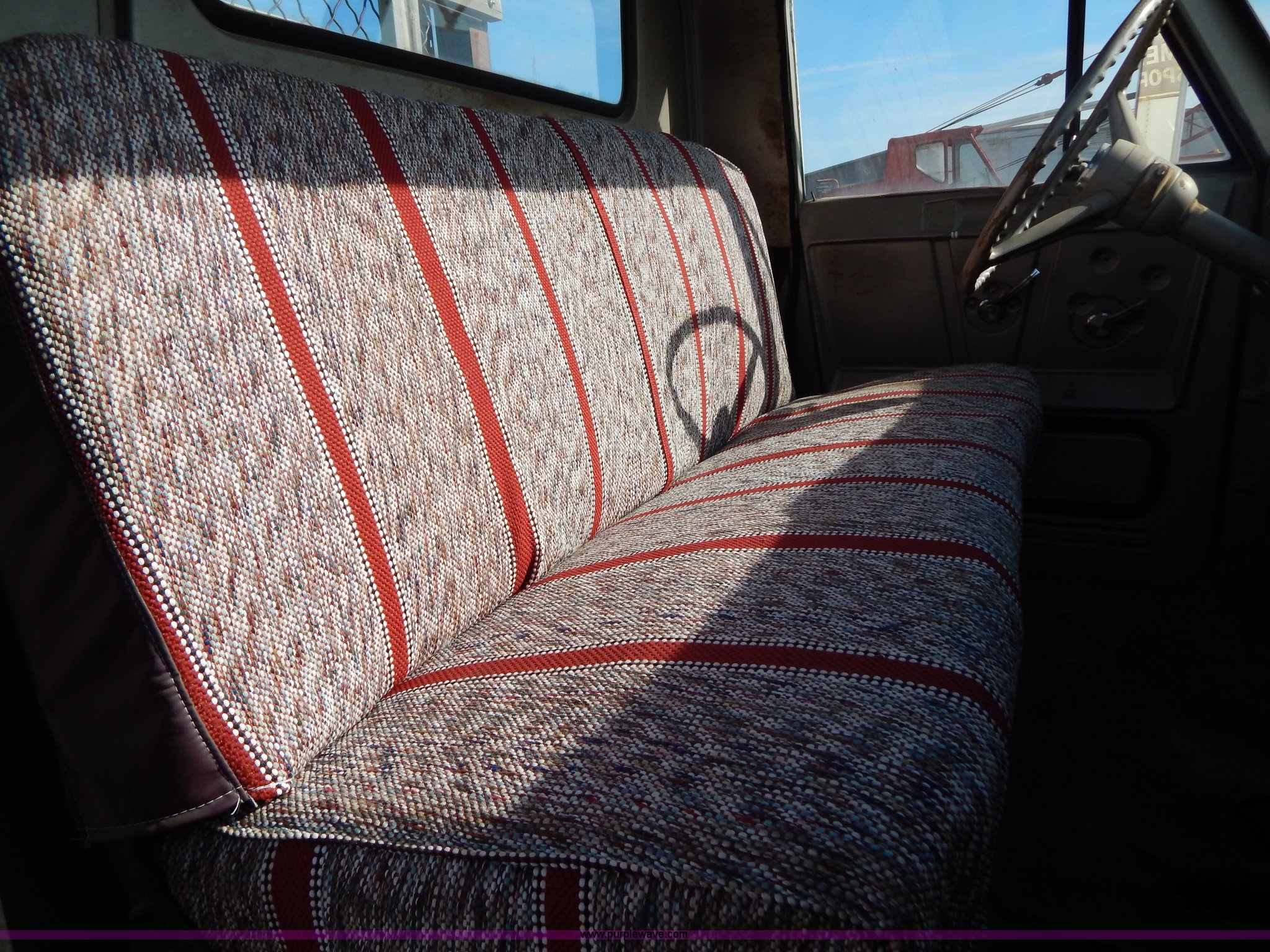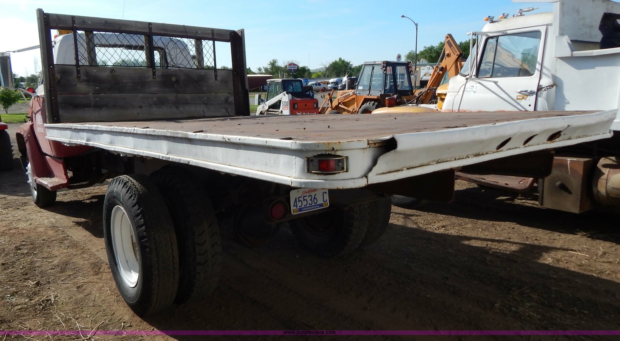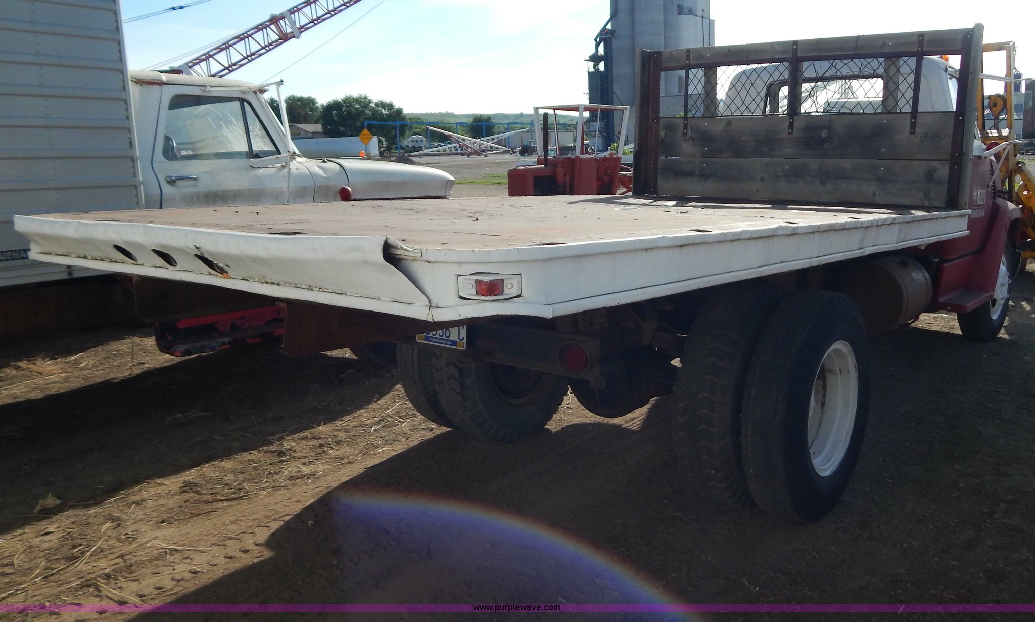 Purple Wave is selling a used Construction Dump Truck in South Dakota. This item is a 1967 GMC flatbed dump truck with the following: 50,706 miles on odometer, Six cylinder gas engine, Four speed manual transmission, Two speed rear end, Heat, 14' x 8' flatbed, 30 gallon fuel tank, PTO, 9.00-20 tires, GVWR 19,500 lbs, Interior/exterior cosmetic damage, Rust, Paint faded, Dead battery, Cracked windshield
