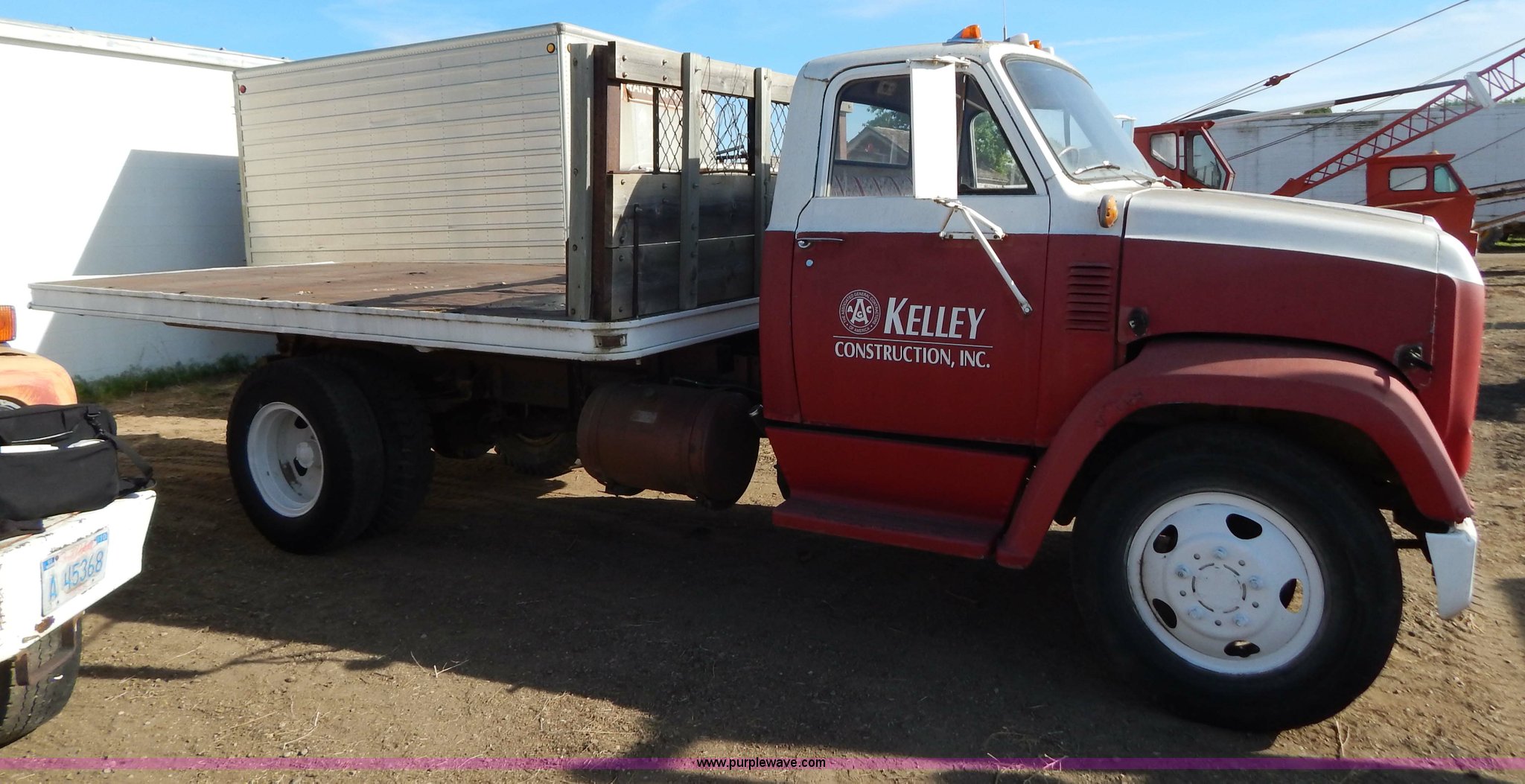 1967 GMC flatbed dump truck. 50,706 miles on odometer, Six cylinder gas engine, Four speed manual transmission, Two speed rear end, Heat, 14' x 8' flatbed, 30 gallon fuel tank, PTO, 9.00-20 tires, GVWR 19,500 lbs, Interior/exterior cosmetic damage, Rust, Paint faded, Dead battery, Cracked windshield. EM5670VC1975E. Shipping quotes available. Kelley Construction. 1812 E Dakota Avenue. Pierre, SD 57501