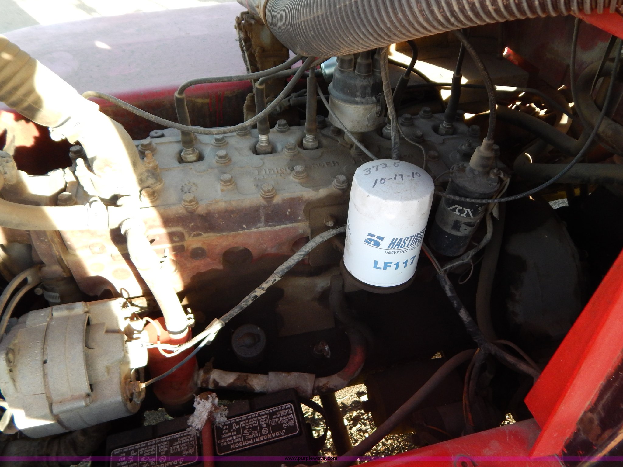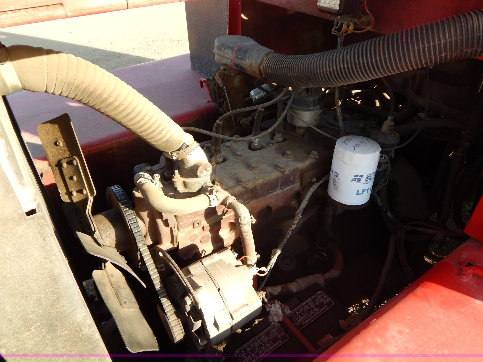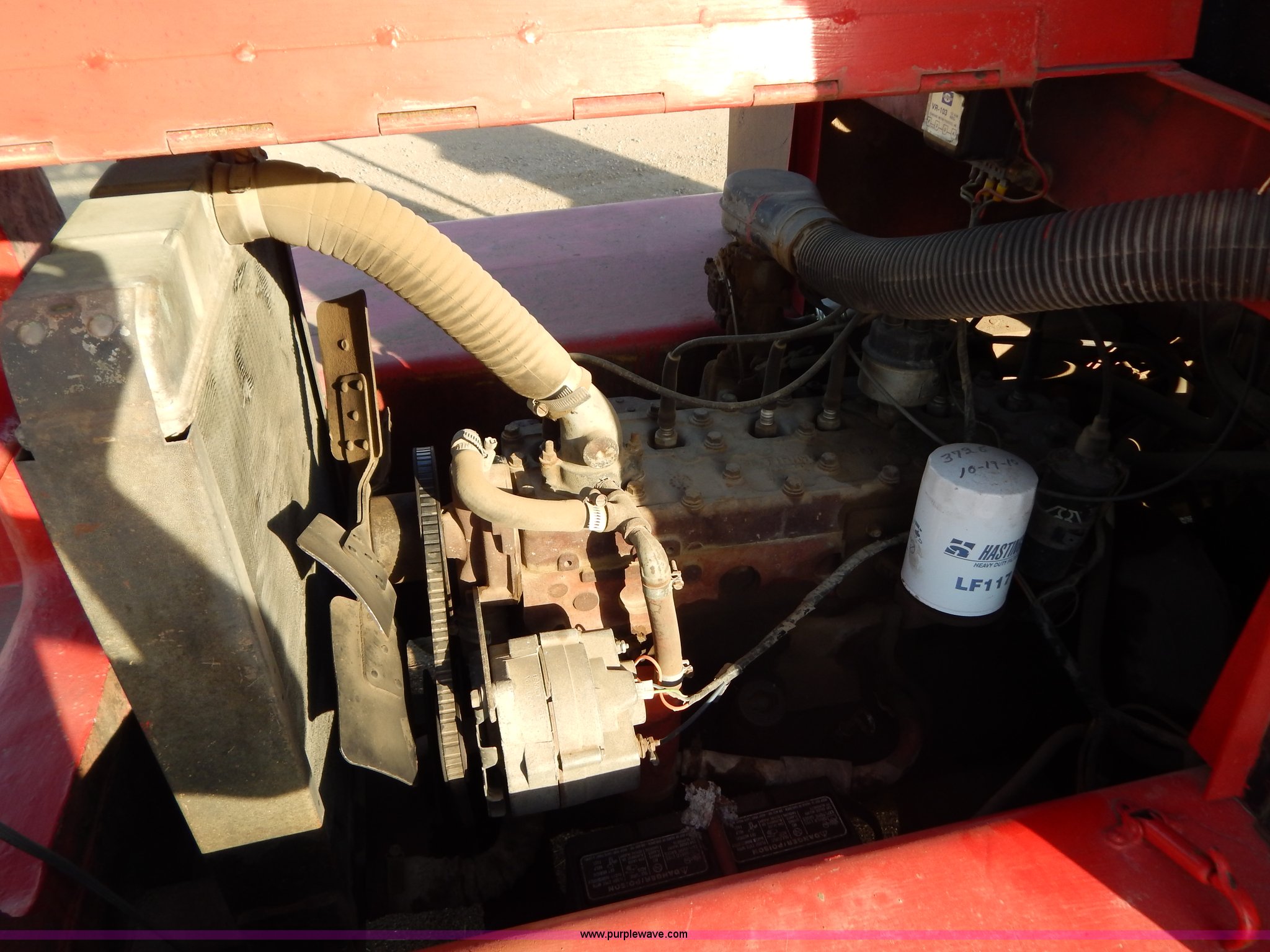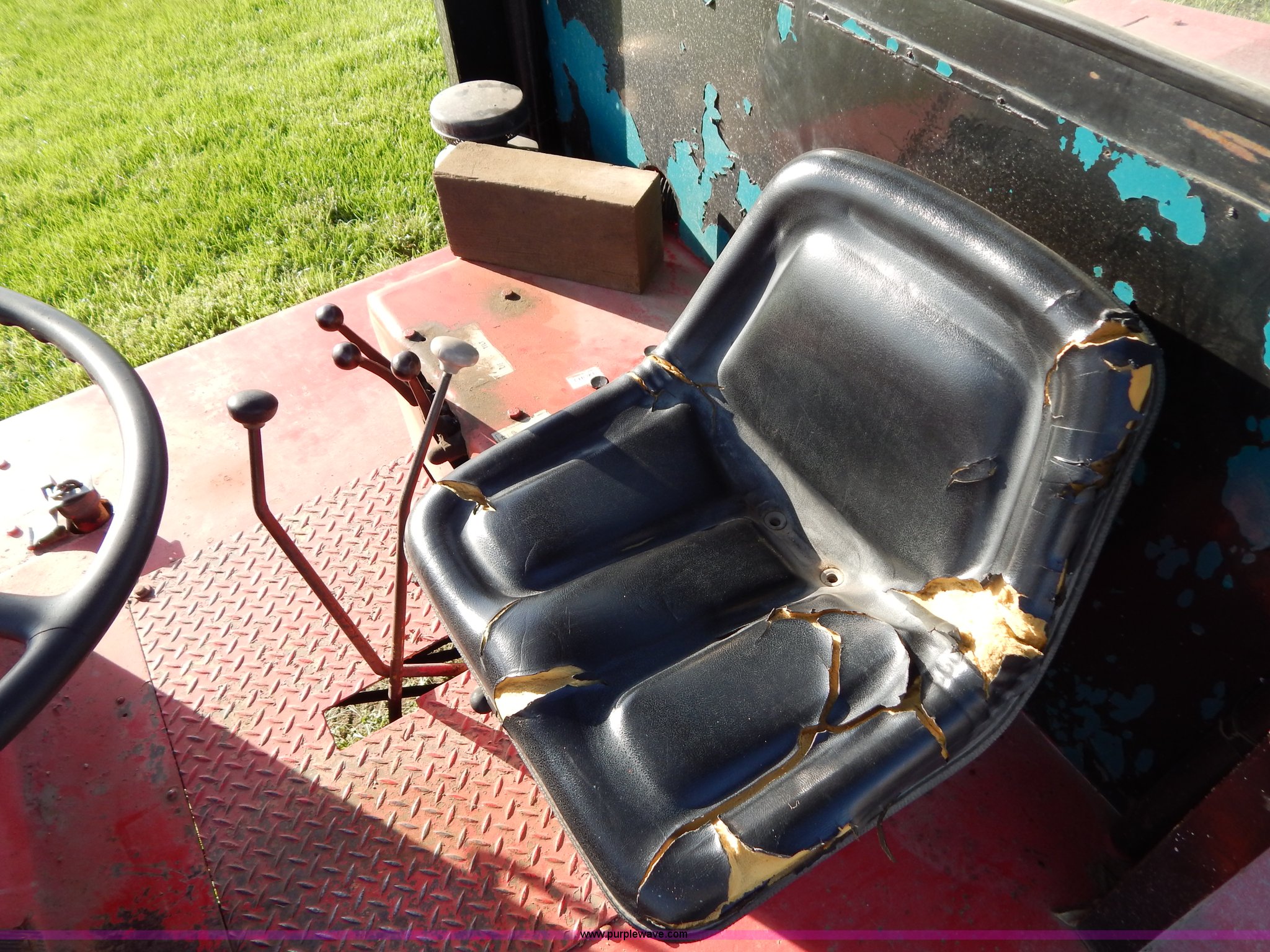 Purple Wave is selling a used Strt. Mast Rough Terr. Forklift in South Dakota. This item is a Rinson 4HLS forklift with the following: 3,756 hours on meter, Continental six cylinder gas engine, Type 5245, Serial F245-8139-267338, 4F-4R gears, Block heater, Mico Lever lock, 46" x 6" x 2" forks, Manual width adjustment, 72" x 9" x 2.5" fork extensions, 8,000 lbs maximum lift capacity, 24' maximum lift height, 14R20 front tires, 10.00-15 rear tires, Rear windshield cracked, Serial 2070