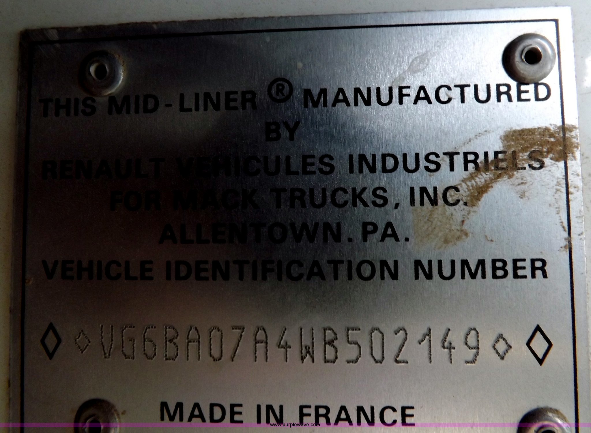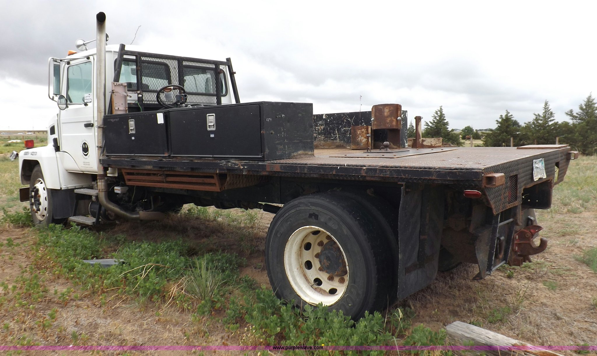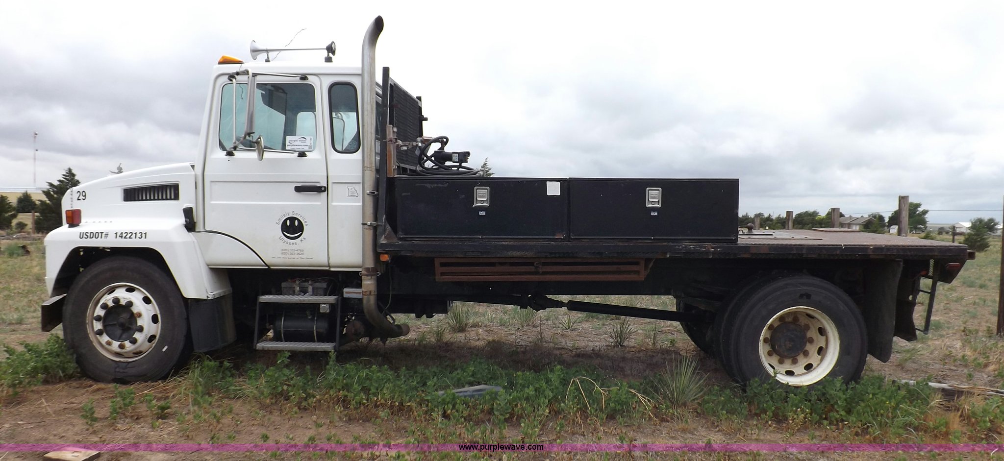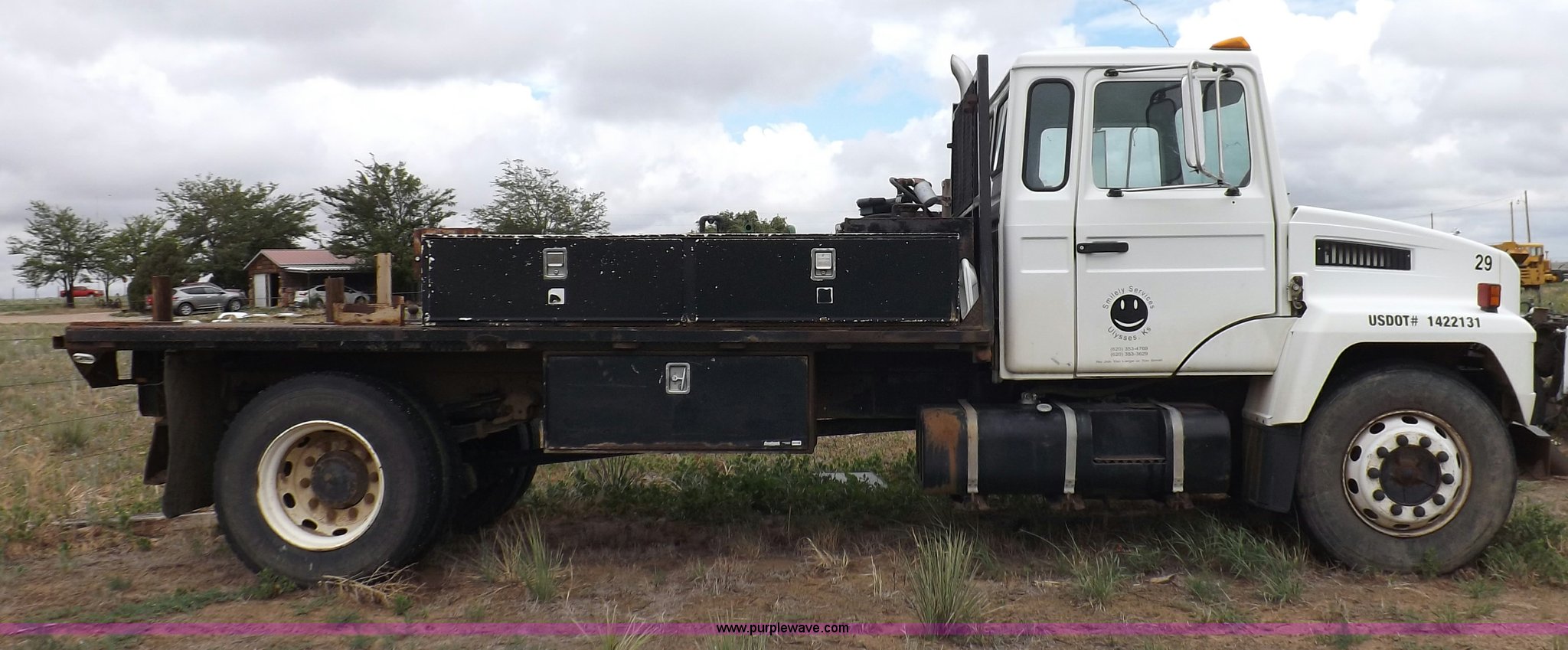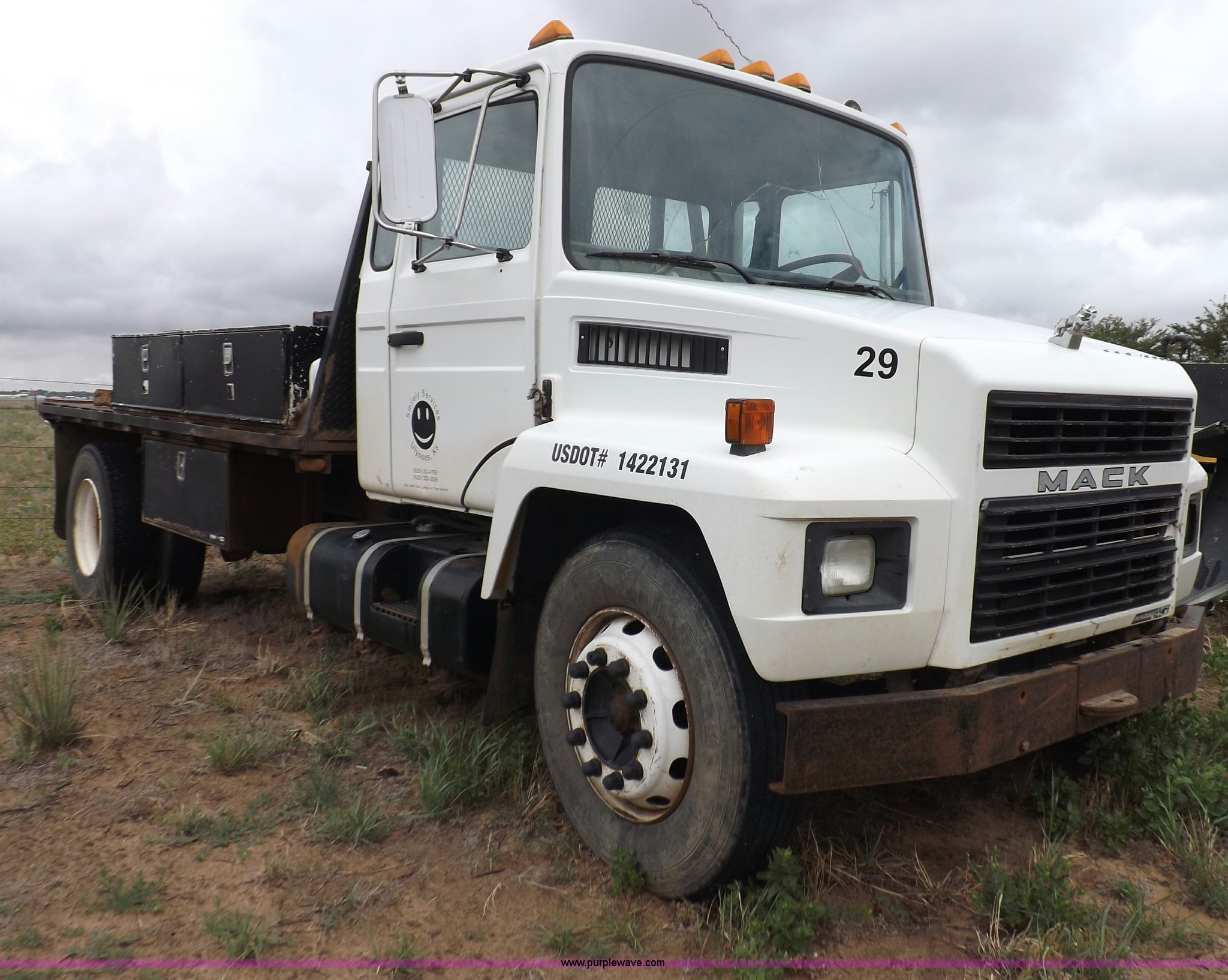 Purple Wave is selling a used Flat Bed Truck in Kansas. This item is a 1998 Mack CS200P semi truck with the following: 245,529 miles on odometer, 6.2L six cylinder turbo diesel engine, Six speed manual transmission, Heat, AM/FM/cassette, Air suspension seat, 14'L x 8'W flatbed, Gooseneck ball, Fuel tank, Graco 12V fuel tank, Approximately 15'L hose, Dispenser, Headache rack, (4) BK toolboxes, 48"W x 24"D x 18"H, Knapheide toolbox, 48" x 18"W x 18"H, 75 gallon fuel tank, Single rear exhaust stack, Spring suspension, Air brakes, Brake controller, 196" wheelbase, 11R22.5 tires