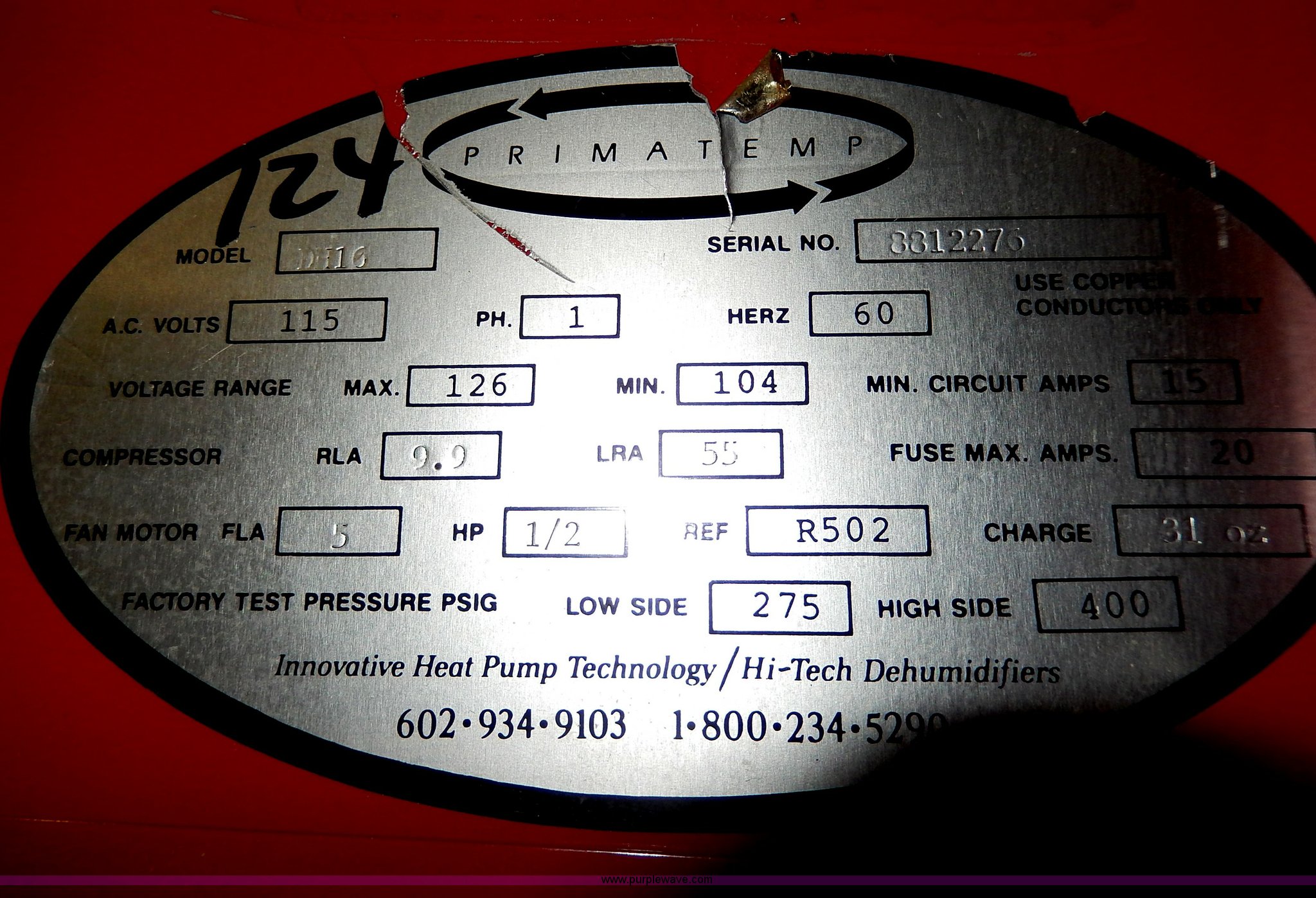 (9) dehumidifiers has sold in Kansas City, Missouri for $1375. Item AS9308 sold on August 20th, 2013.