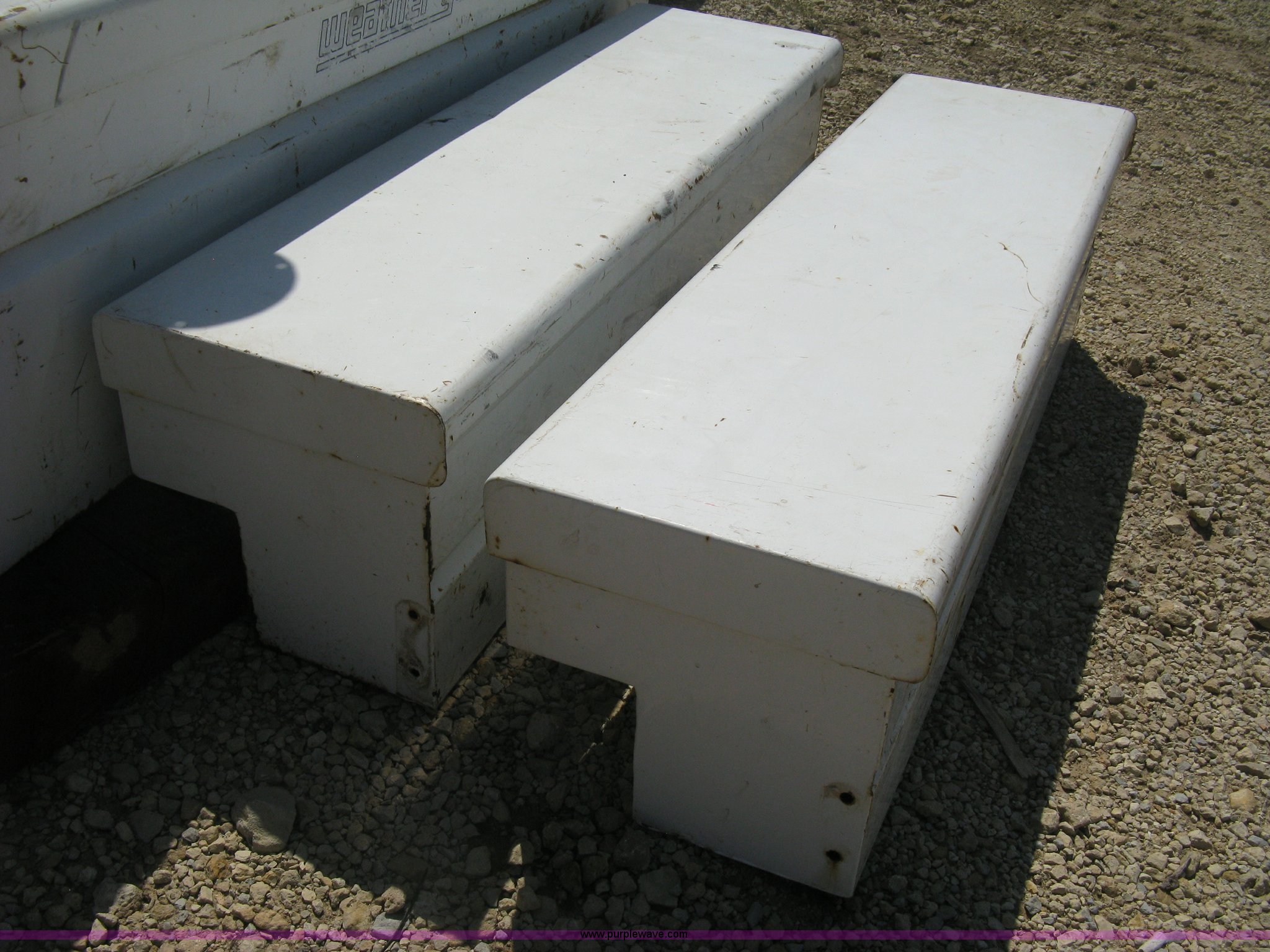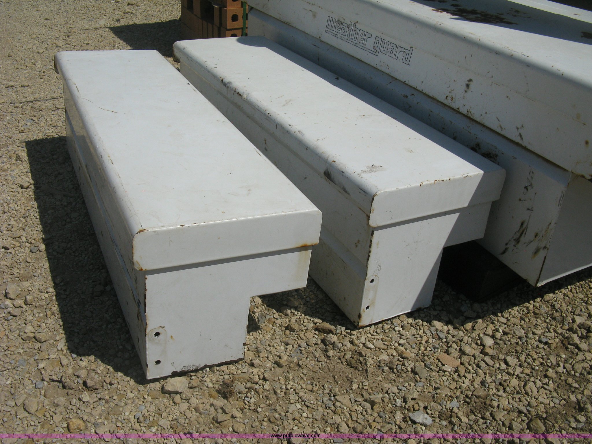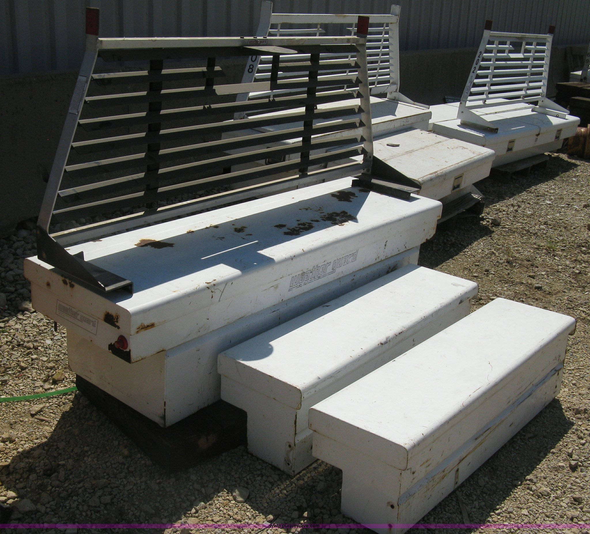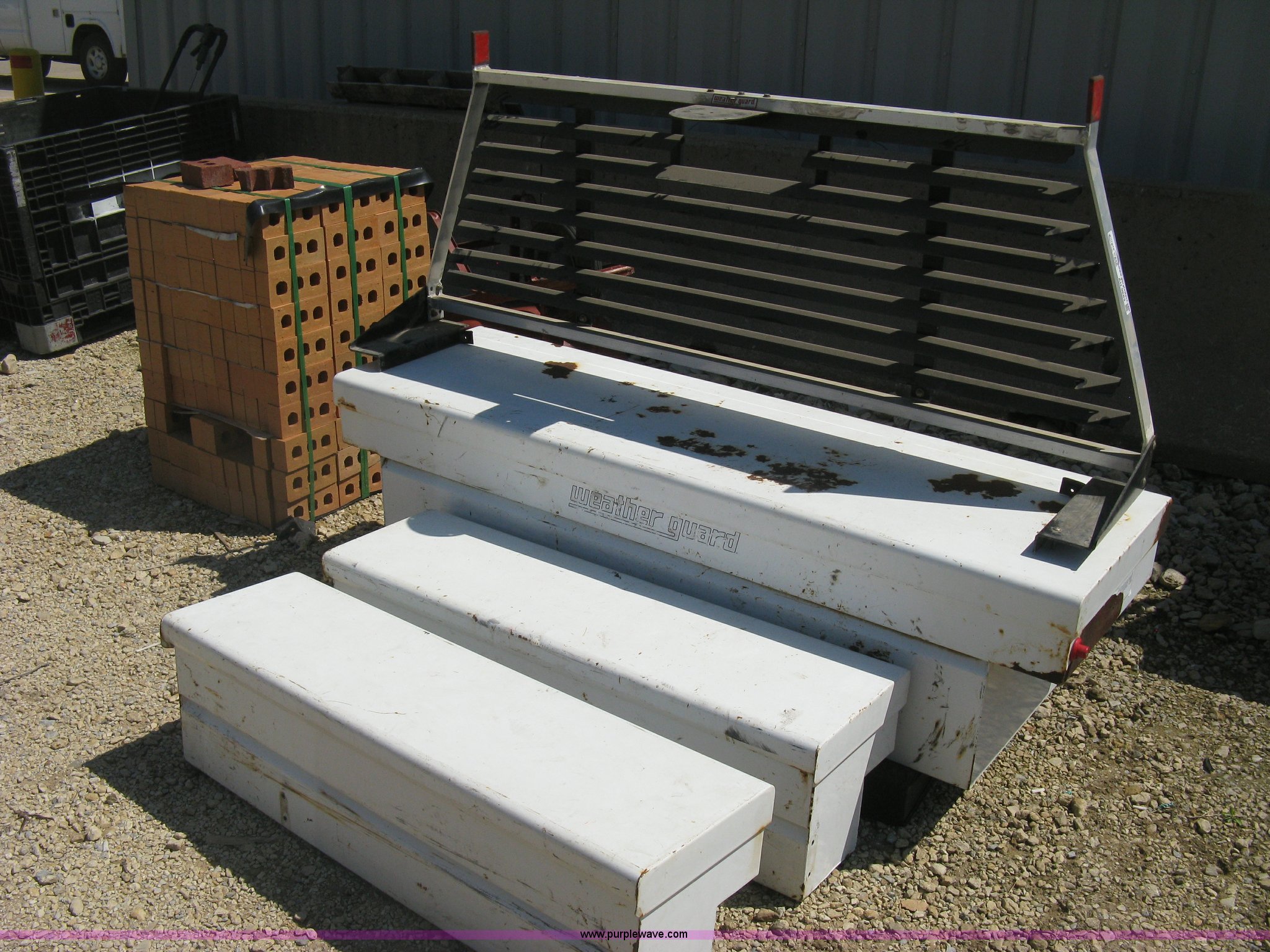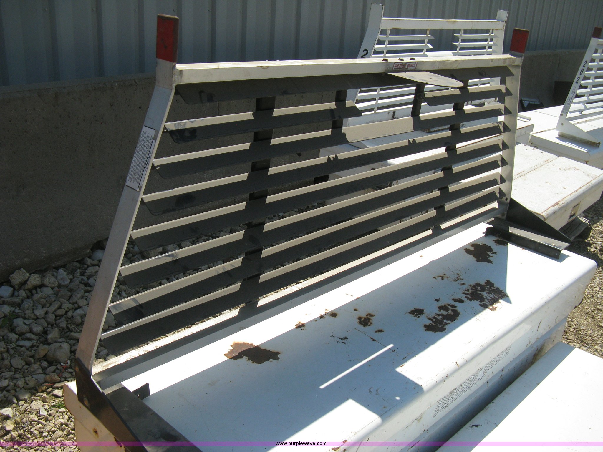 Purple Wave is selling a used Automotive Parts or Acces. in Kansas. This item is a Headache rack and toolboxes with the following: WeatherGuard aluminum headache rack, WeatherGuard single lid toolbox, (2) WeatherGuard side mount toolboxes, 47"L