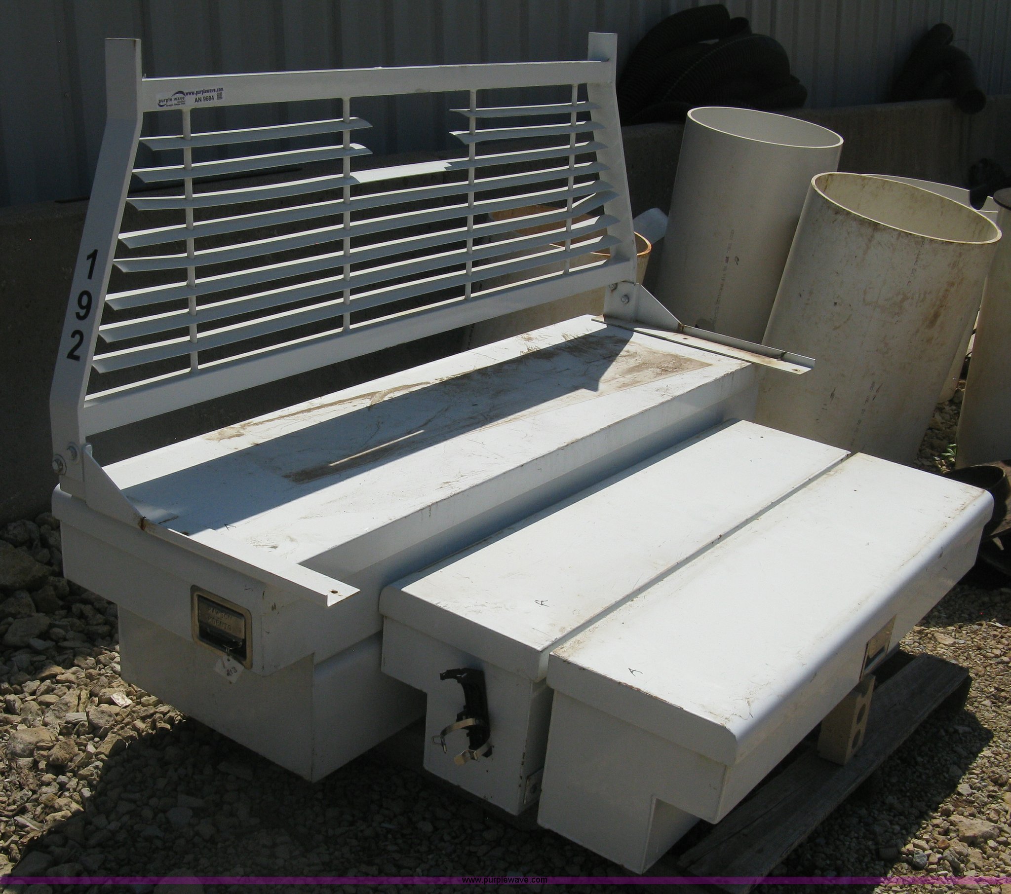 Headache rack and toolboxes has sold in Wichita, Kansas for $66. Item AN9684 sold on August 21st, 2013.