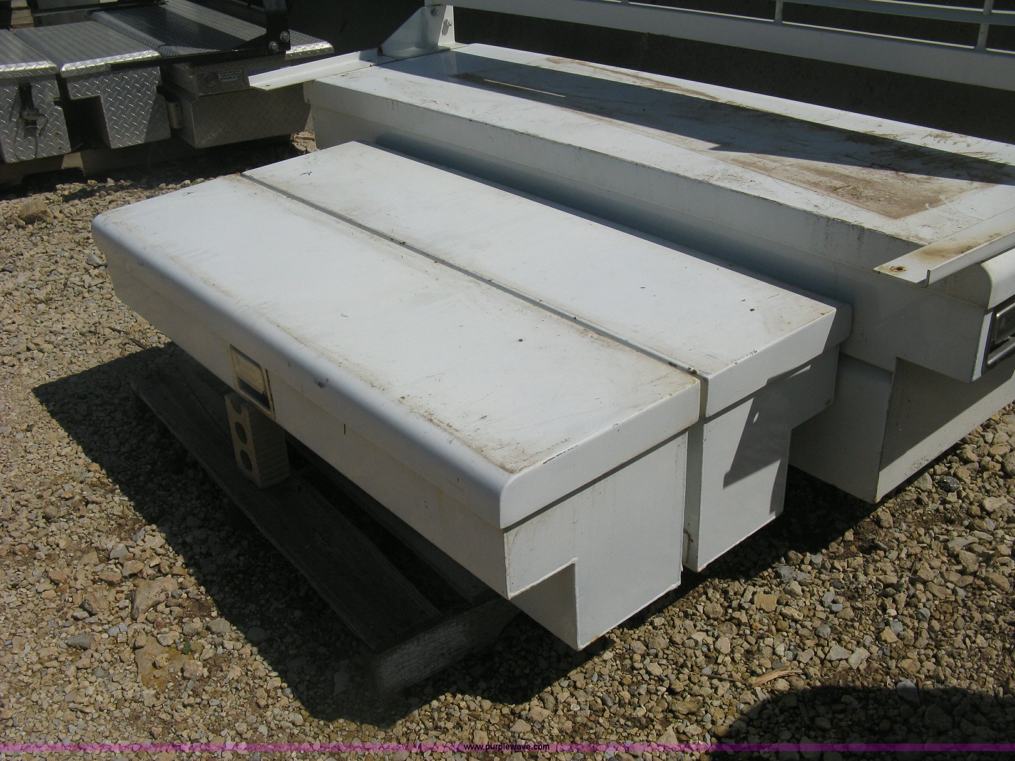 Purple Wave is selling a used Automotive Parts or Acces. in Kansas. This item is a Headache rack and toolboxes with the following: R&K headache rack, R&K single lid truck box, R&K side mount boxes, 51"L, Keys