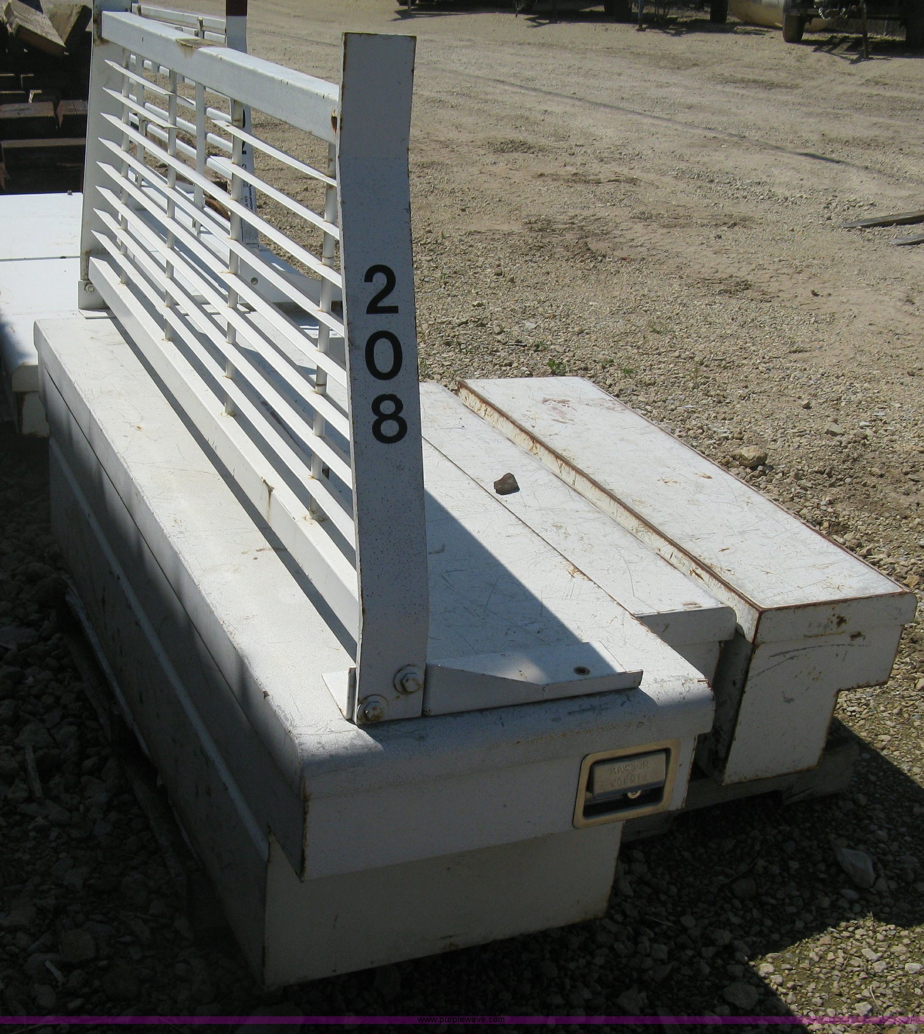 Purple Wave is selling a used Automotive Parts or Acces. in Kansas. This item is a Headache rack and toolboxes with the following: R&K headache rack, R&K single lid truck box, (2) R&K side mount boxes, 44"L
