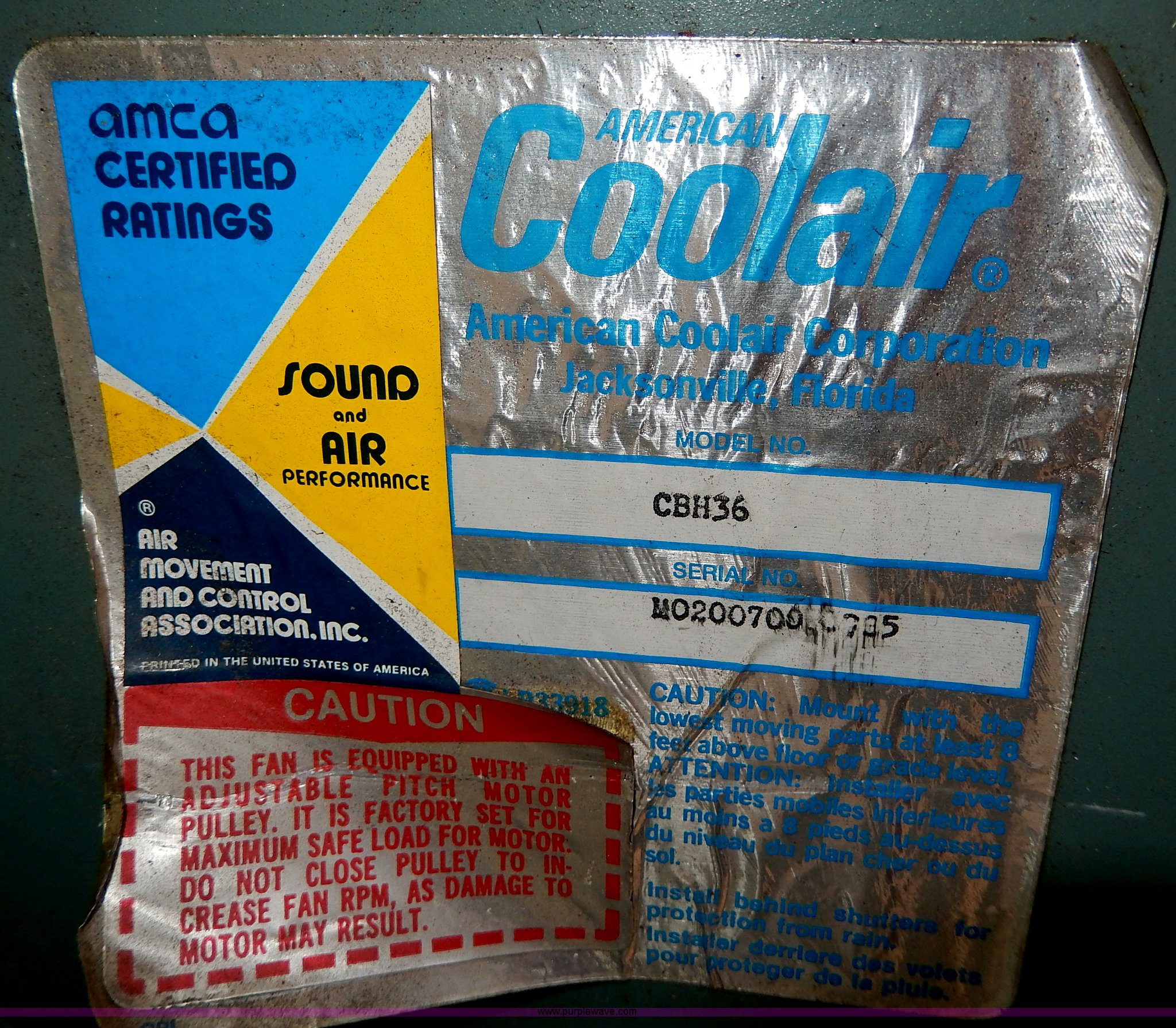 Purple Wave is selling a used Tools in Missouri. This item is a (3) CoolAir 42" industrial fans with the following: Model CBH36, 2 HP motors, 220V, Three phase