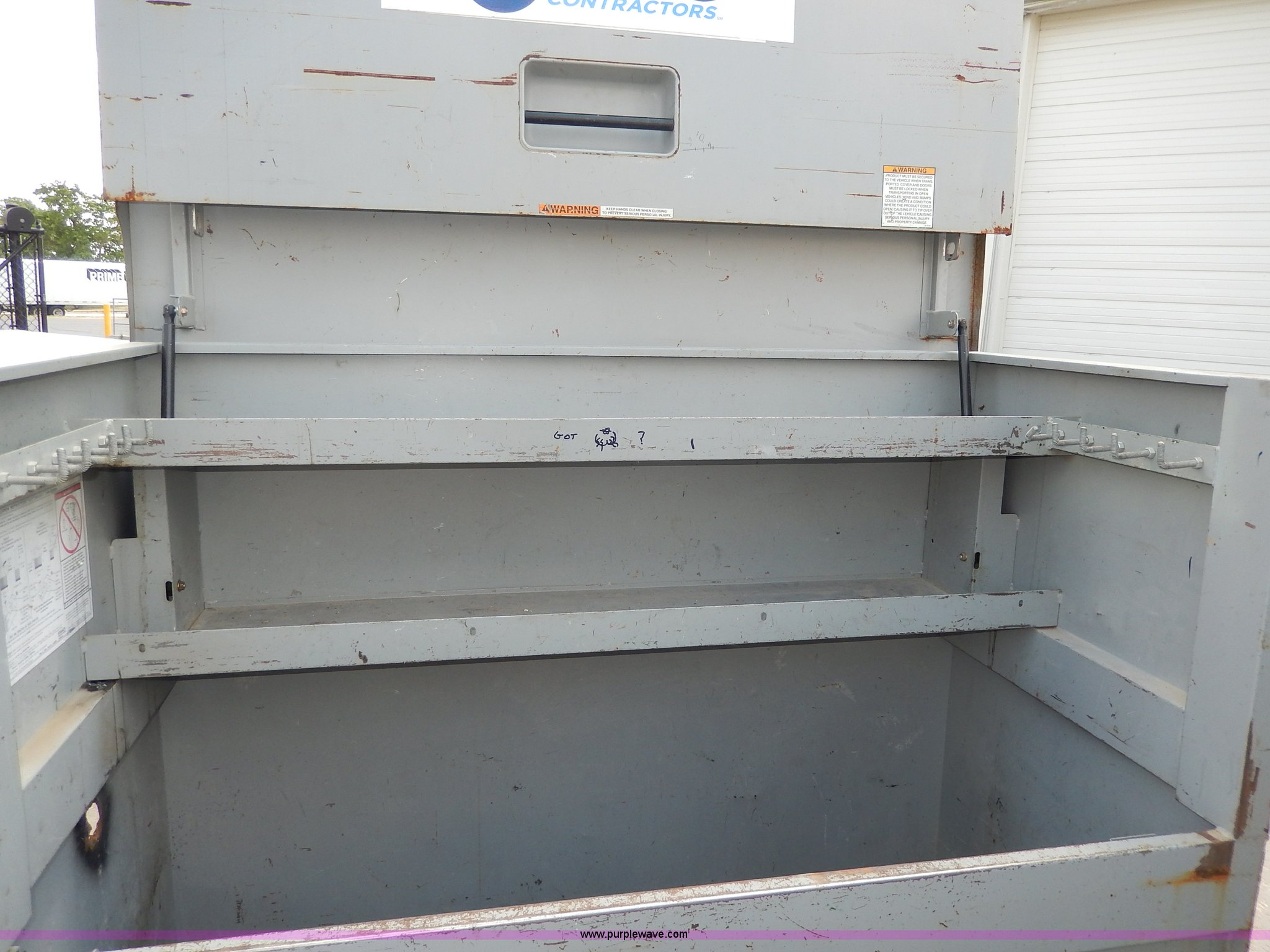 Purple Wave is selling a used Tools in Missouri. This item is a (3) job site boxes with the following: 5' x 30" x 57"