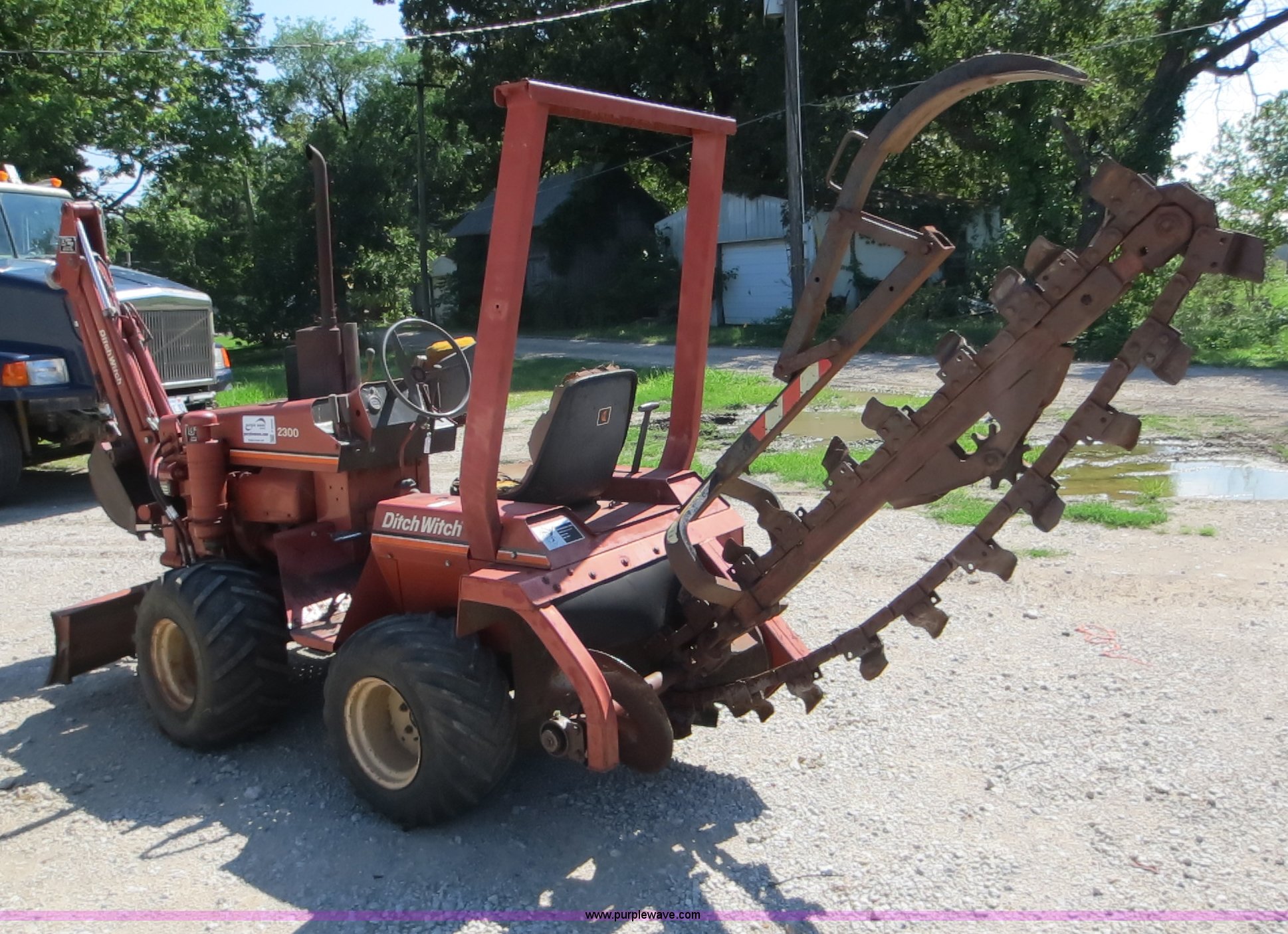 Purple Wave is selling a used Trencher or Rock Saw in Kansas. This item is a Ditch Witch 2300 trencher with the following: 904 hours on meter, Wisconsin four cylinder gas engine, Three speed transmission, 4' dig depth, 5"W chain, 57" push blade, 12" toothed backhoe bucket, Serial 302747