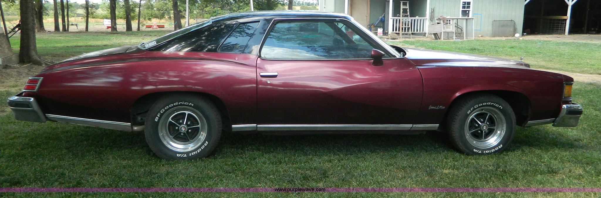 Purple Wave is selling a used Passenger Vehicle in Kansas. This item is a 1976 Pontiac Grand LeMans with the following: 44,017 miles on odometer, Not Actual Mileage, 400 C.I.D. V8 gas engine, Automatic transmission, AC and heat, Manual windows and locks, Cloth interior, Electric operated sunroof, P245/60R15 tires, Interior/exterior cosmetic damage, Dash cracked, Exhaust system and tires replaced December 2012, Starter and front end components replaced March 2013
