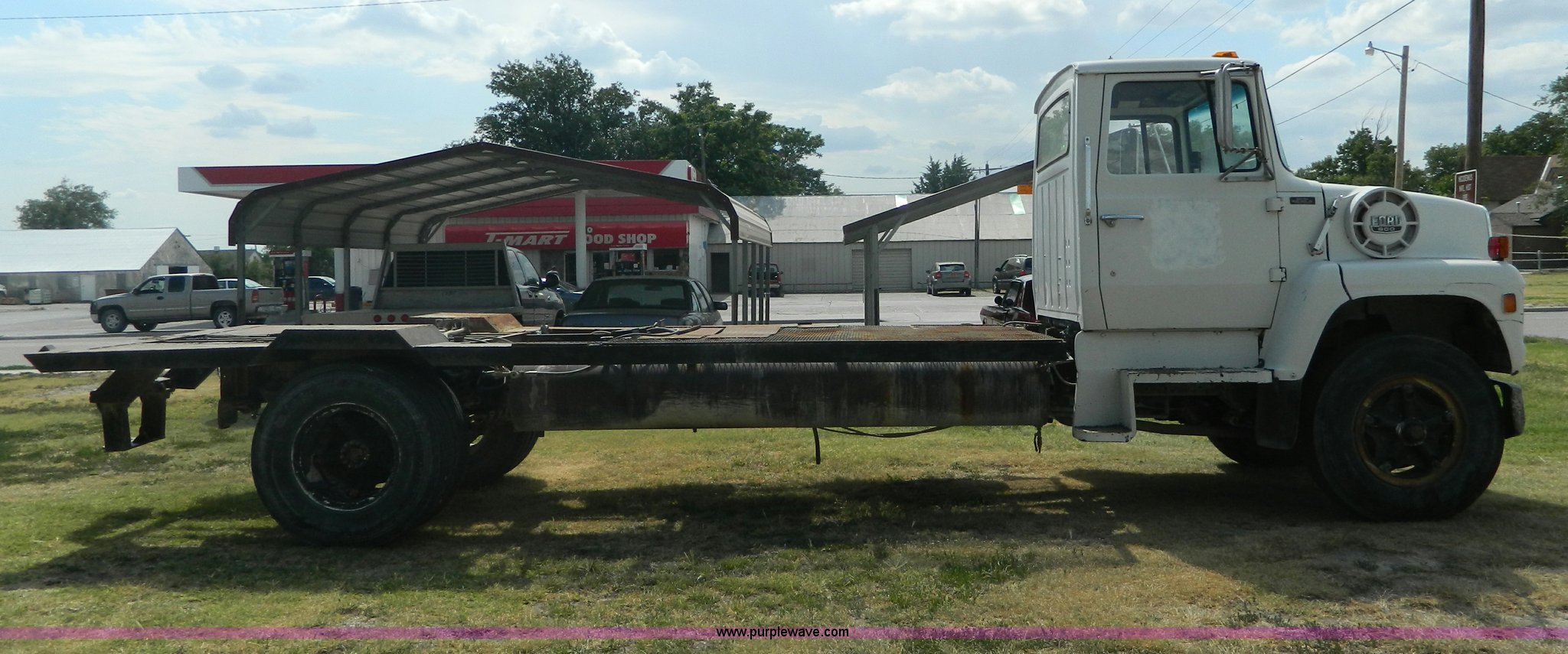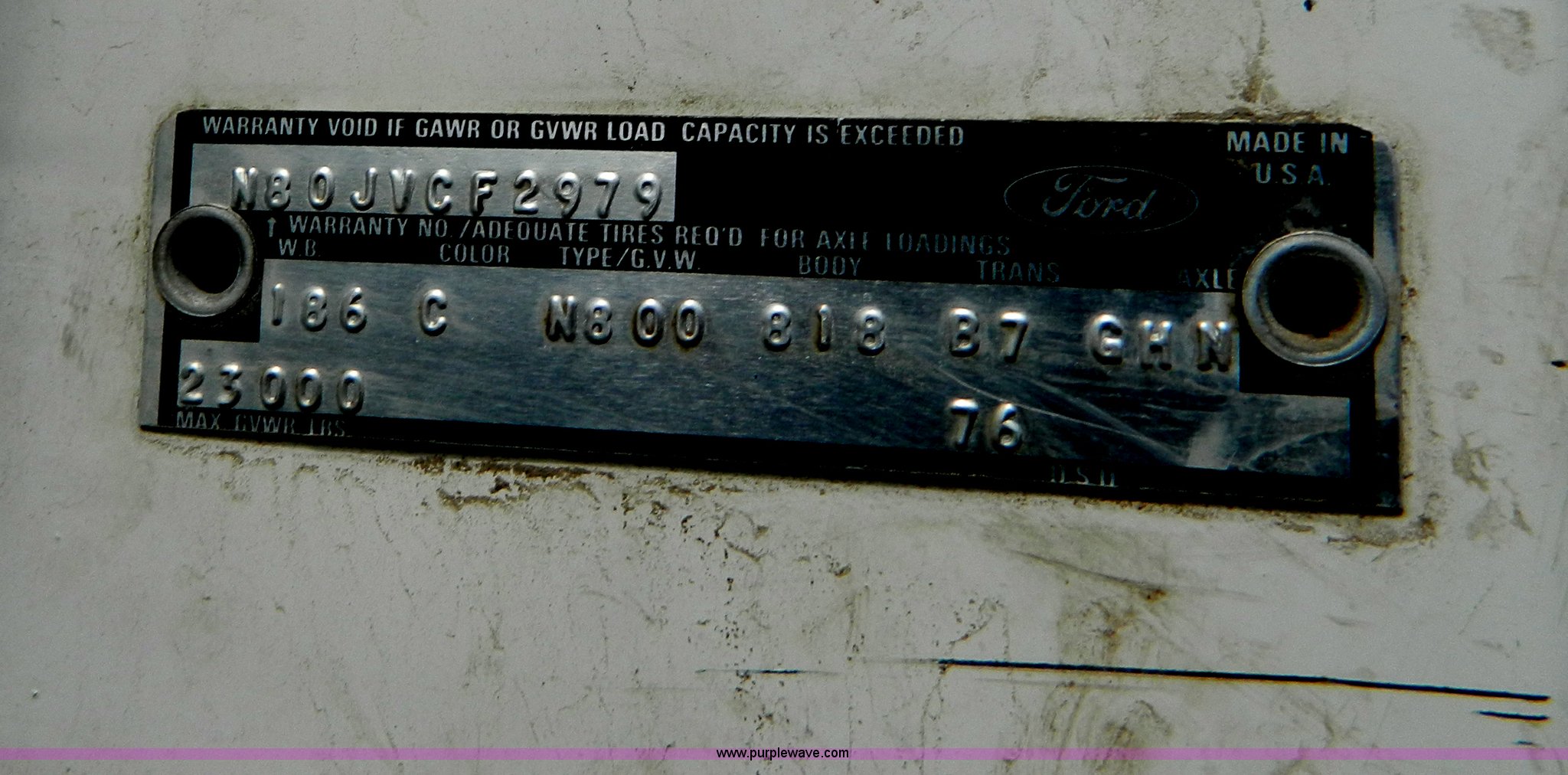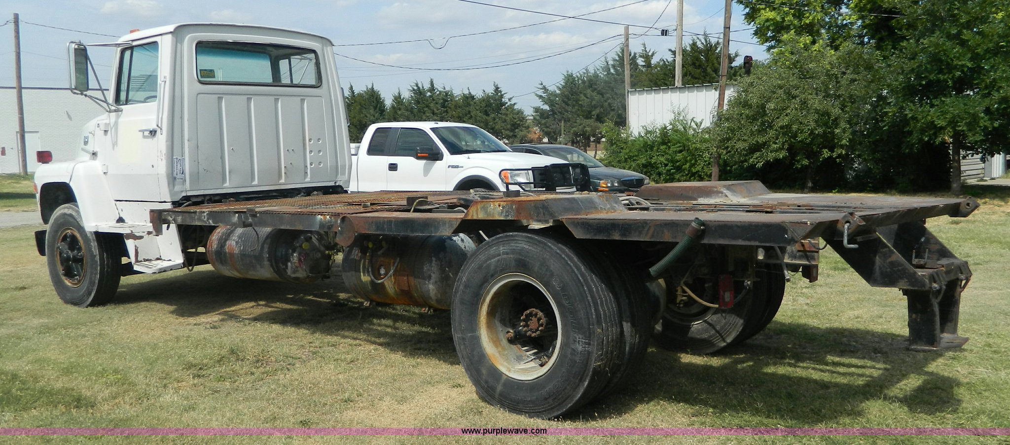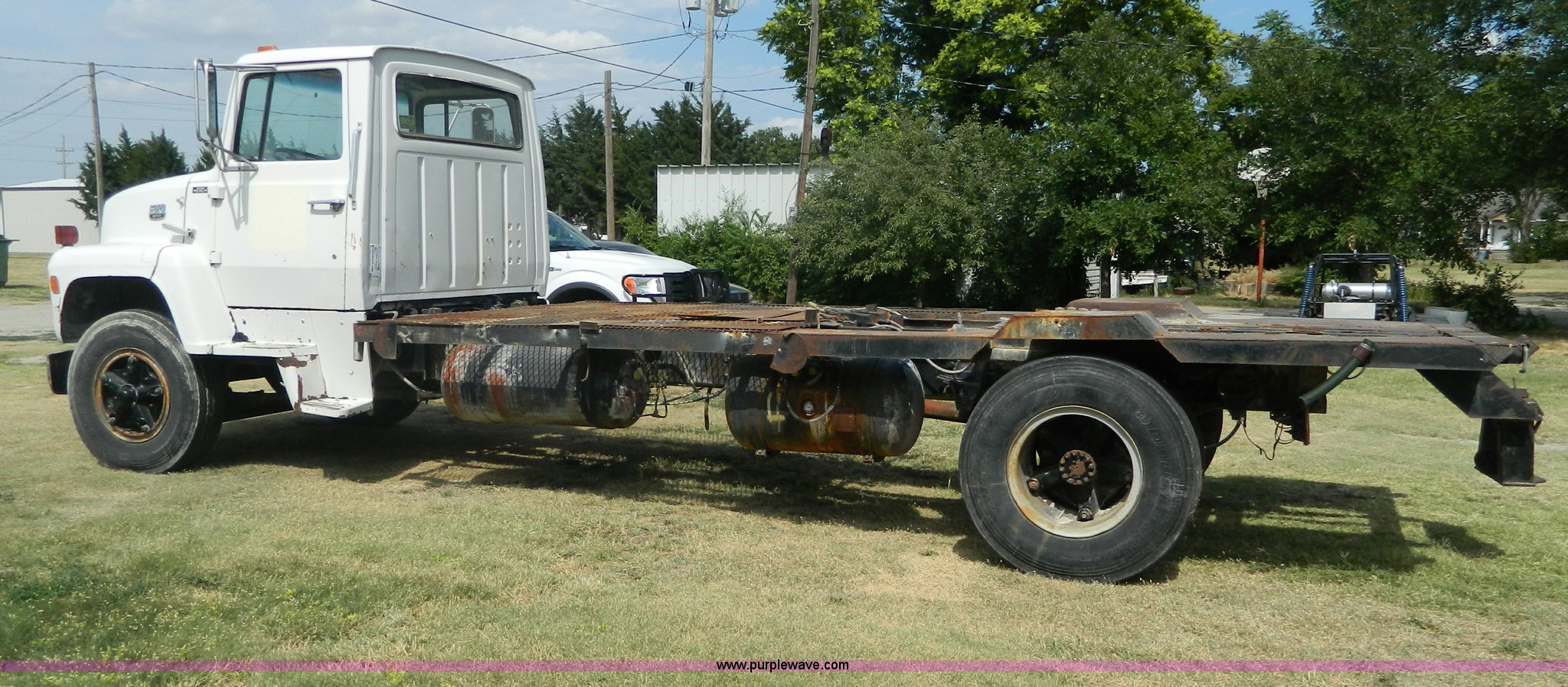 Purple Wave is selling a used Truck Chassis in Kansas. This item is a 1978 Ford F800 truck with the following: 47,974 miles on odometer, Eight cylinder propane engine, Five speed manual transmission, Heat, 222" wheelbase, Recently replaced 10.00R20 tires, GVWR 23,000 lbs, Interior/exterior cosmetic damage, Body damage, Power steering reservoir cap missing