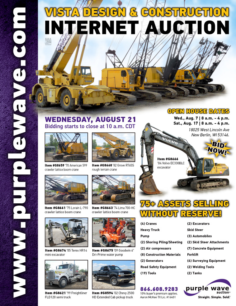 SOLD! August 21 Vista Design and Construction Dispersal Auction