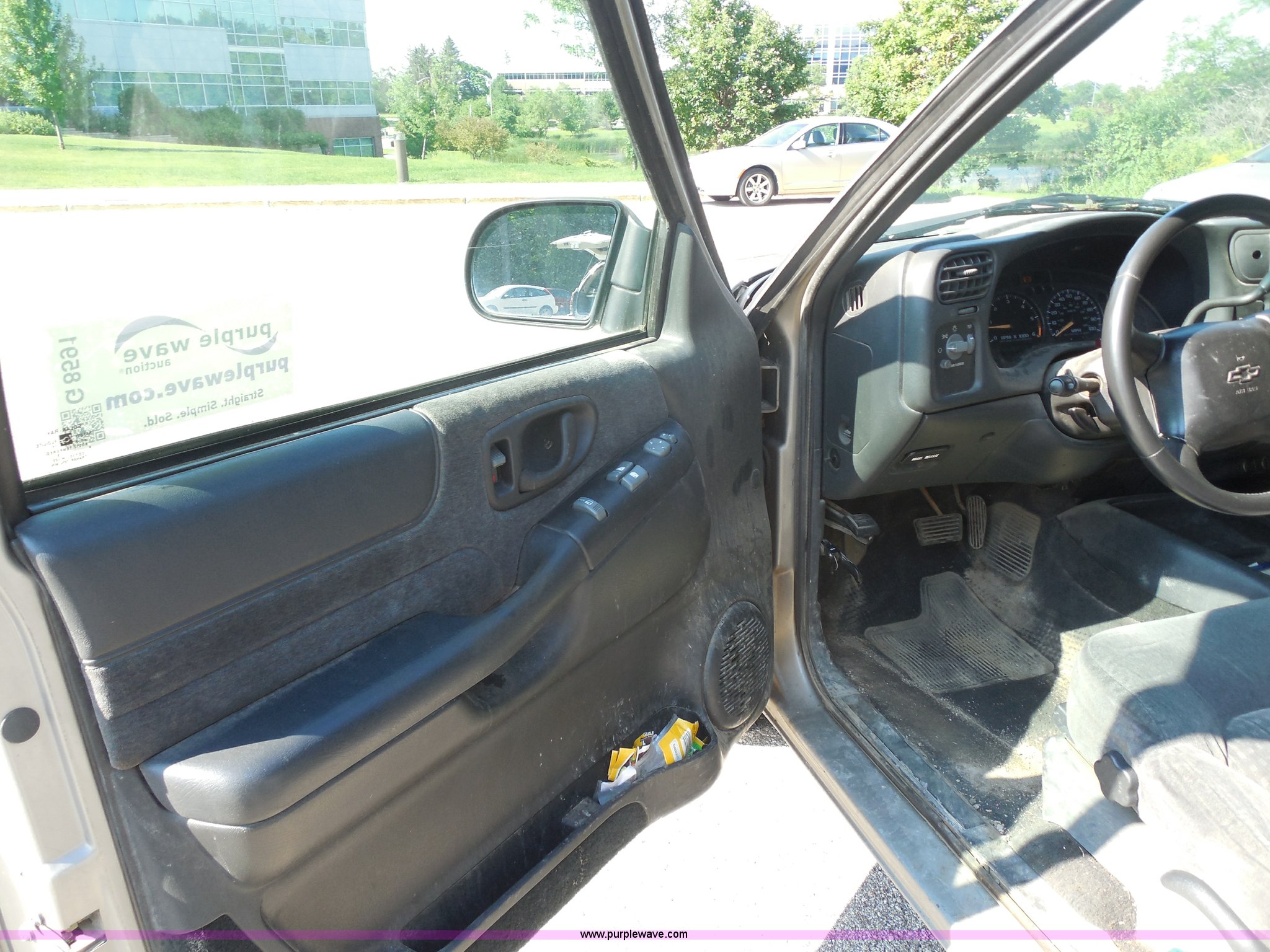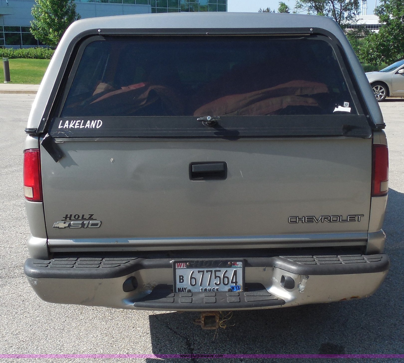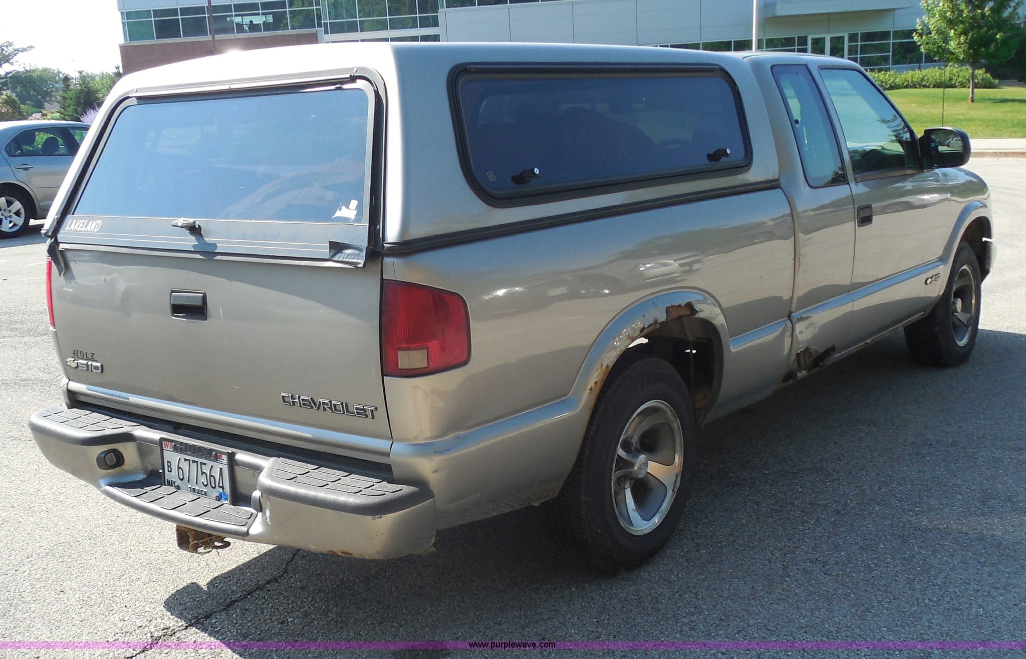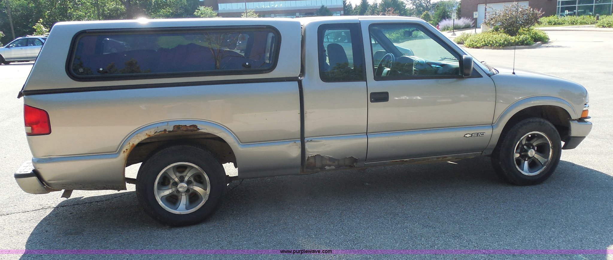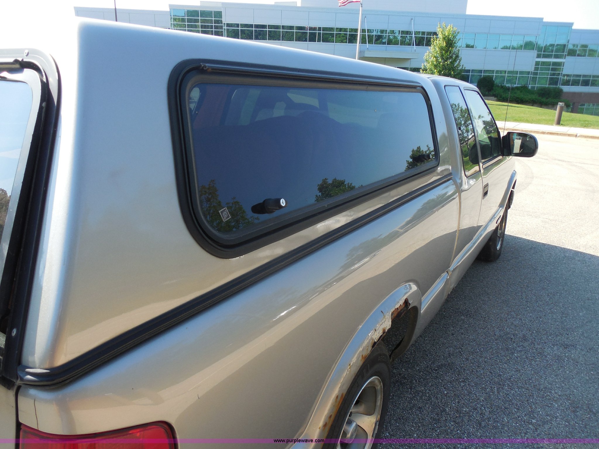 Purple Wave is selling a used Passenger Vehicle in Wisconsin. This item is a 2002 Chevrolet S10 Extended Cab pickup truck with the following: 146,815 miles on odometer, 4.3L V6 OHV 12V gas engine, Automatic transmission, AC and heat, Tilt, Cruise, AM/FM/cassette, Power windows, locks, and mirrors, Cloth interior, Lakeland topper, Fold out windows, Receiver hitch, P205/75R15 tires, ABS light is on, Interior hood release broken, Driver's door dented, Rust, Dents and scratches
