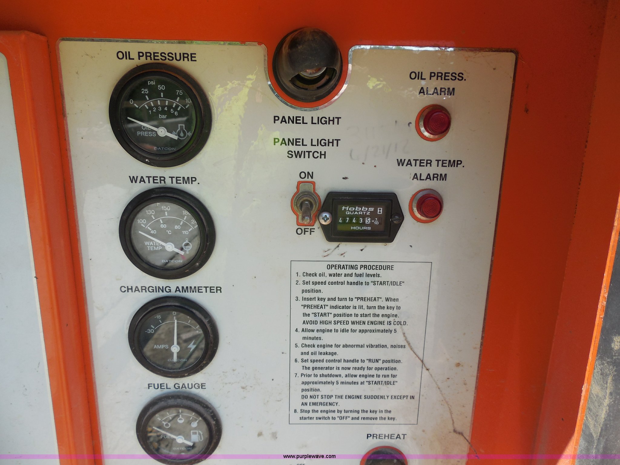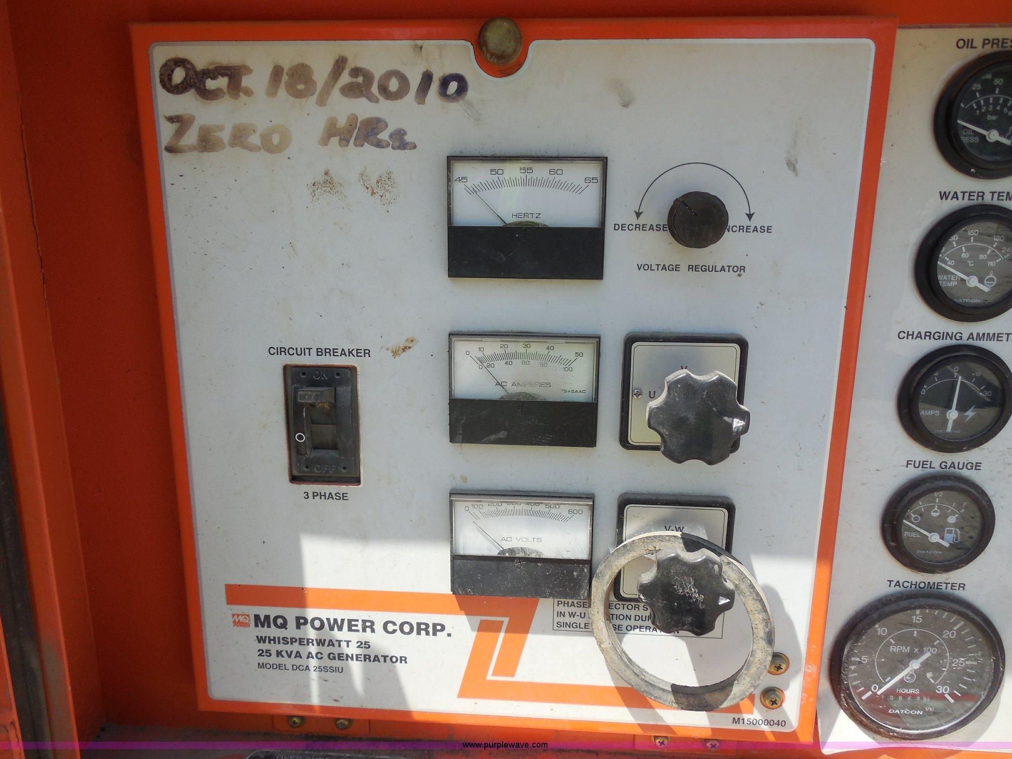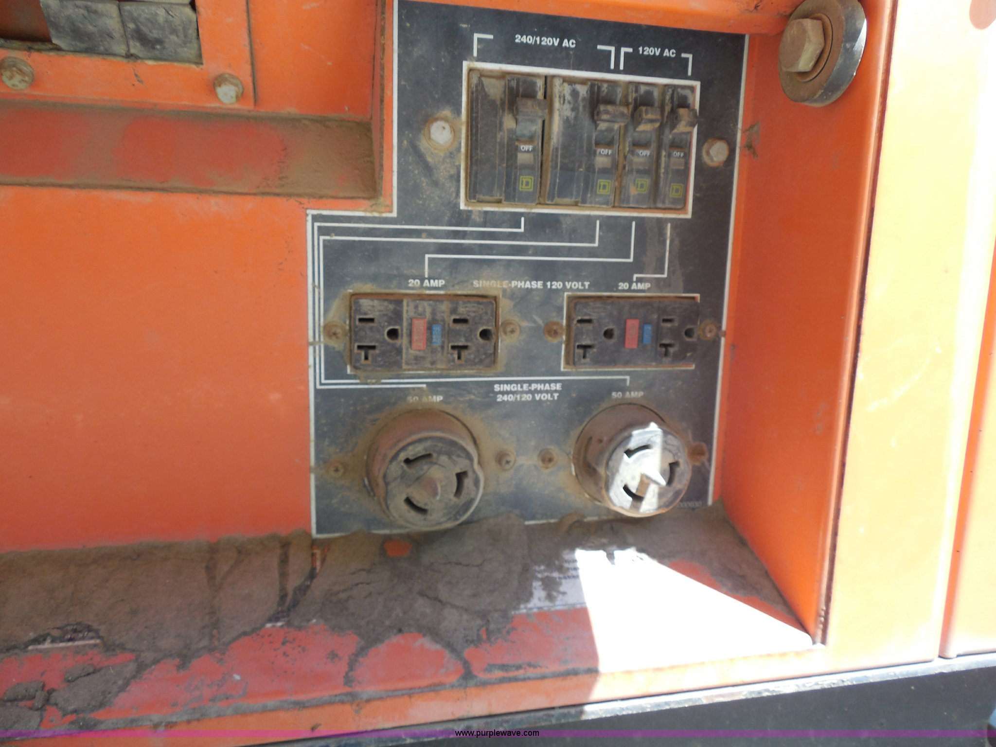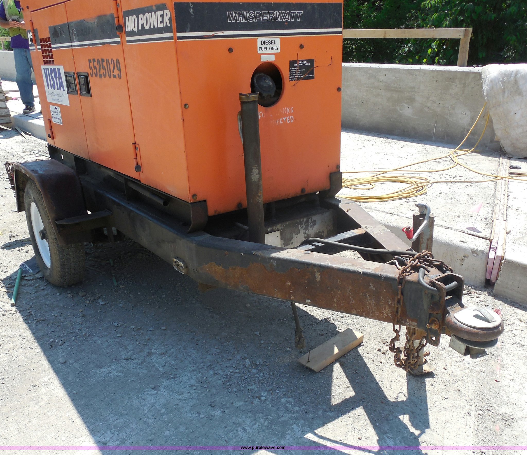 Purple Wave is selling a used Generator Set in Wisconsin. This item is a Whisperwatt 25 generator with the following: 4,743 hours on meter, Isuzu four cylinder diesel engine, 120/480V, Oil pressure alarm, Water temperature alarm, Three phase, Pintle hitch, Trailer wiring, Jack stand, ST 175/80D13 tires
